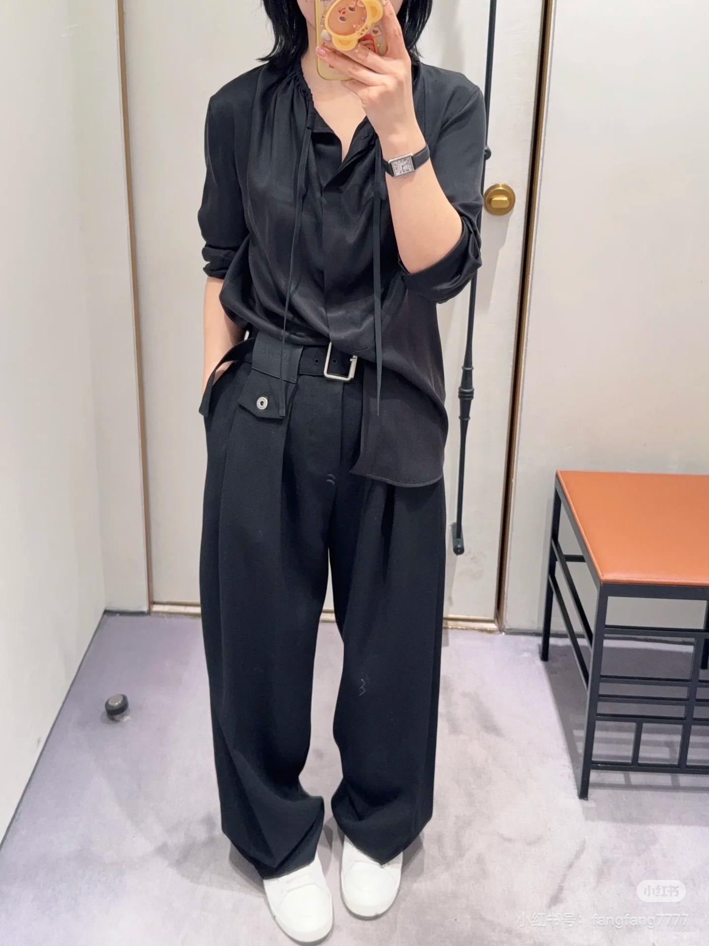 포인트: 뒷면 허리 라인의 자연스러운 셔링 디테일이 허리를 살짝 잡아주어 슬림