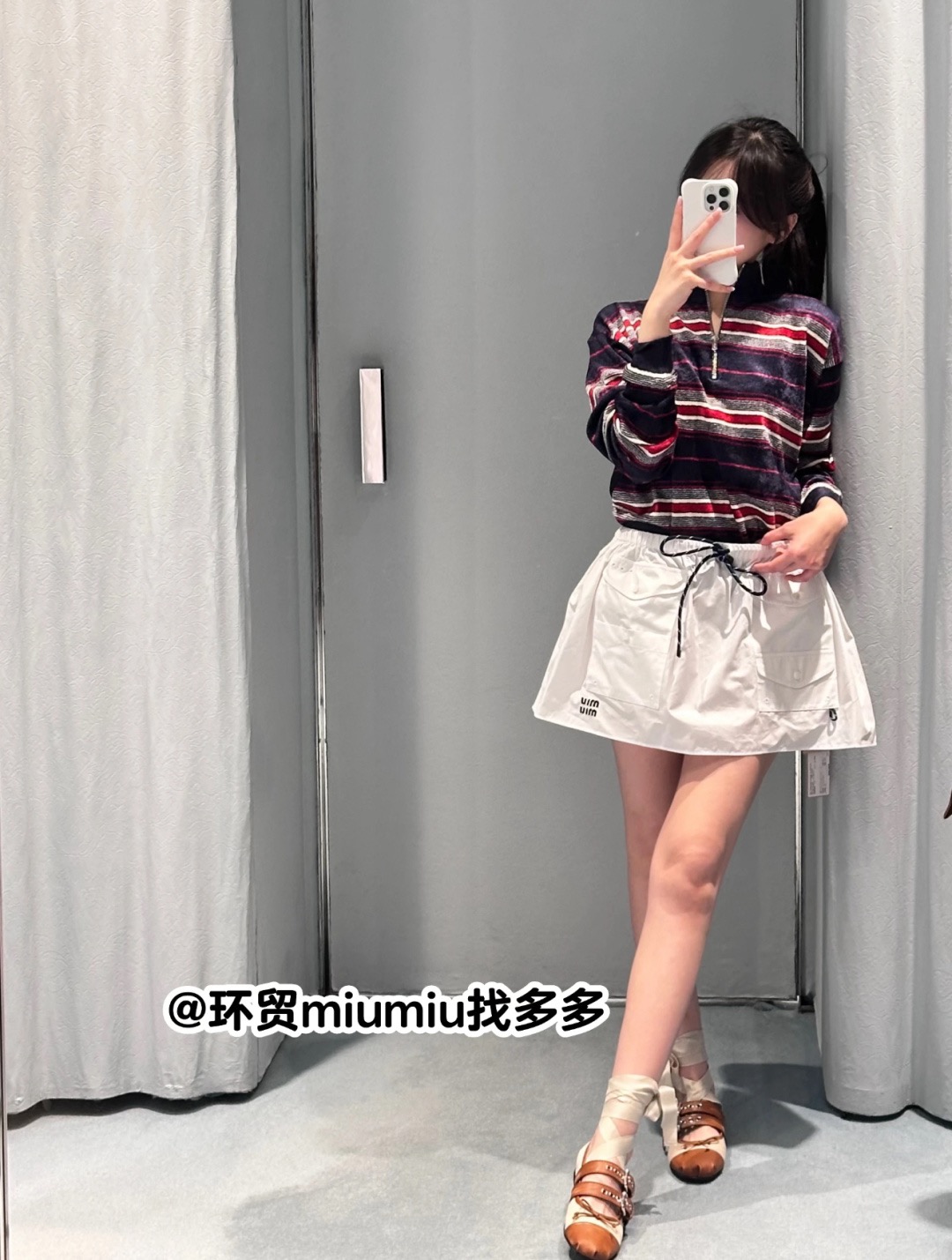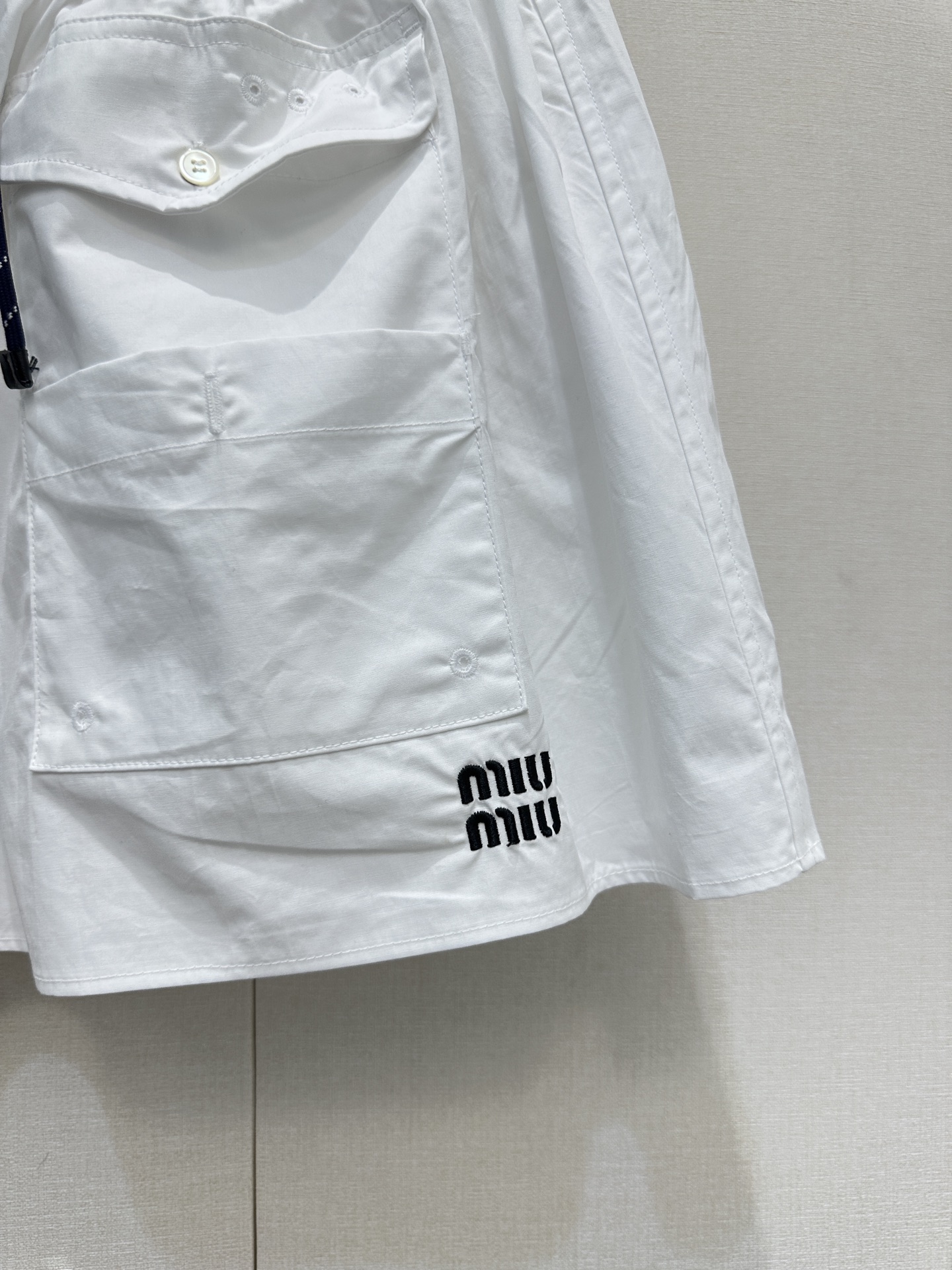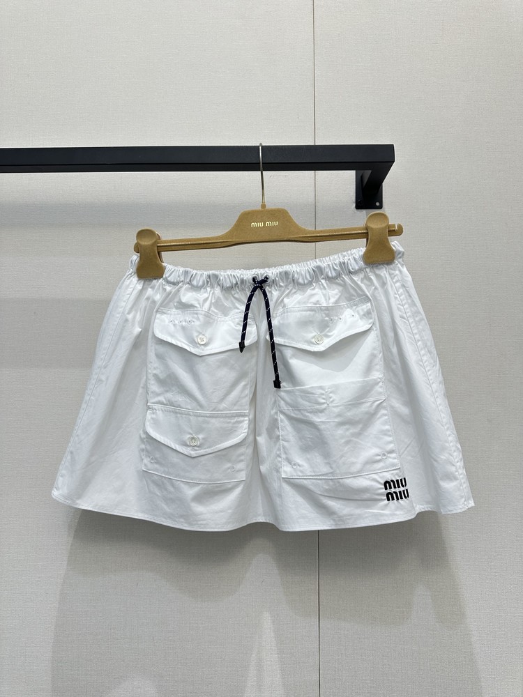 미우미우 특유의 발레코어(Balletcore) 감성을 담은 러블리하고 스포티한 무드의 스커트입니다.