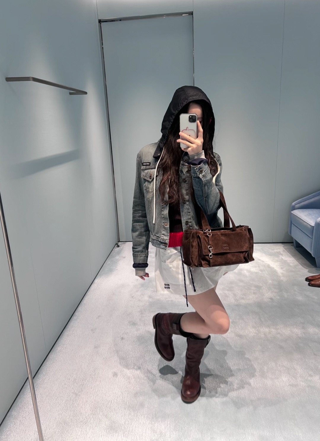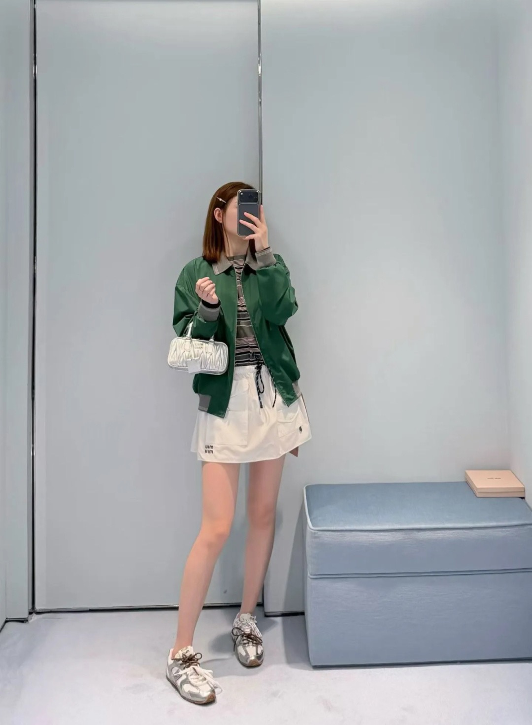 활용도: 니트나 셔츠와 매치하여 세련된 데일리 미우미우 룩 완성