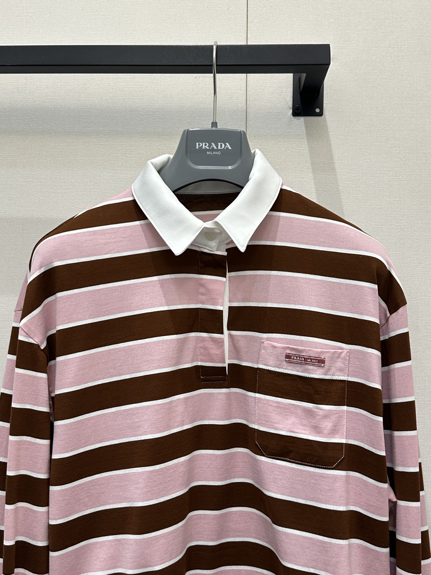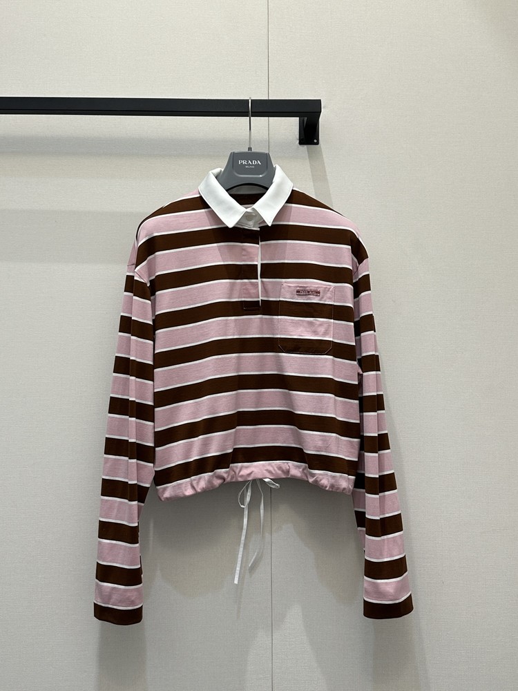 프라다(PRADA) 스트라이프 폴로 집업 긴팔 티셔츠 의류NEWSALE
