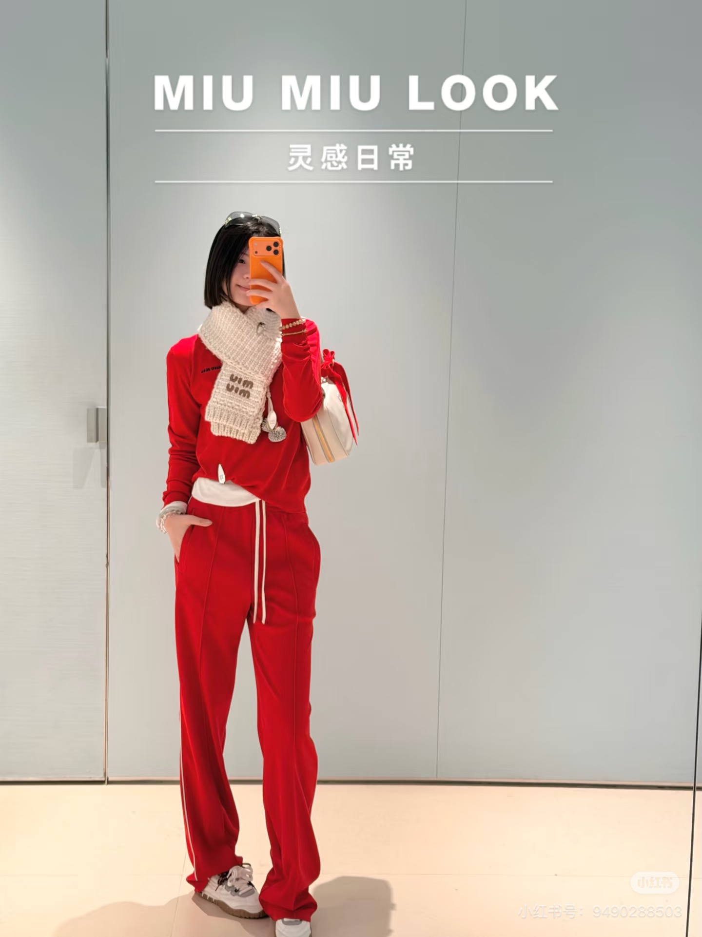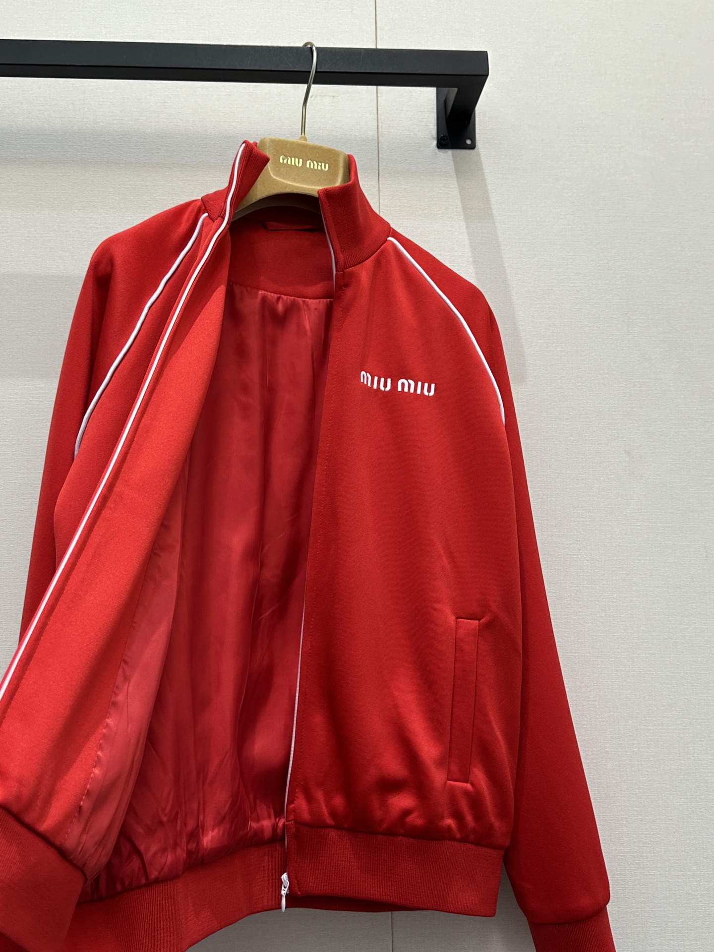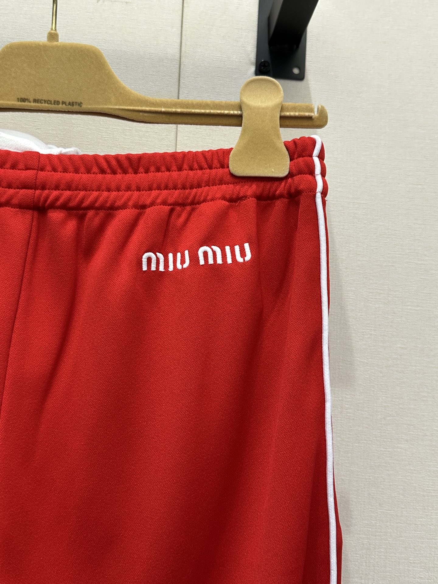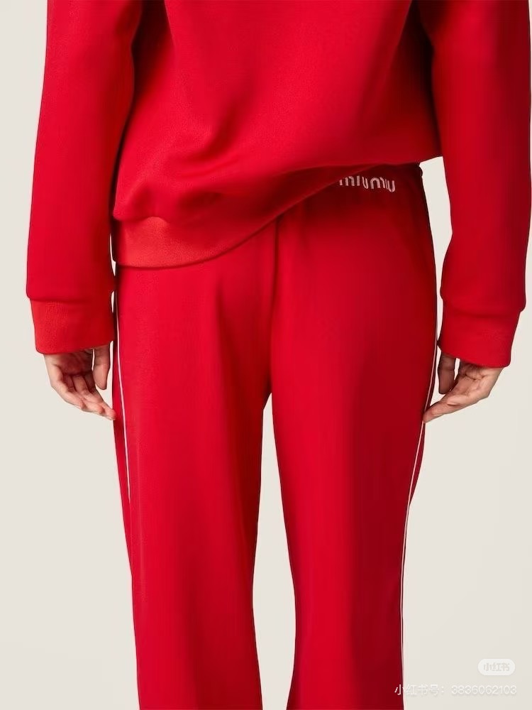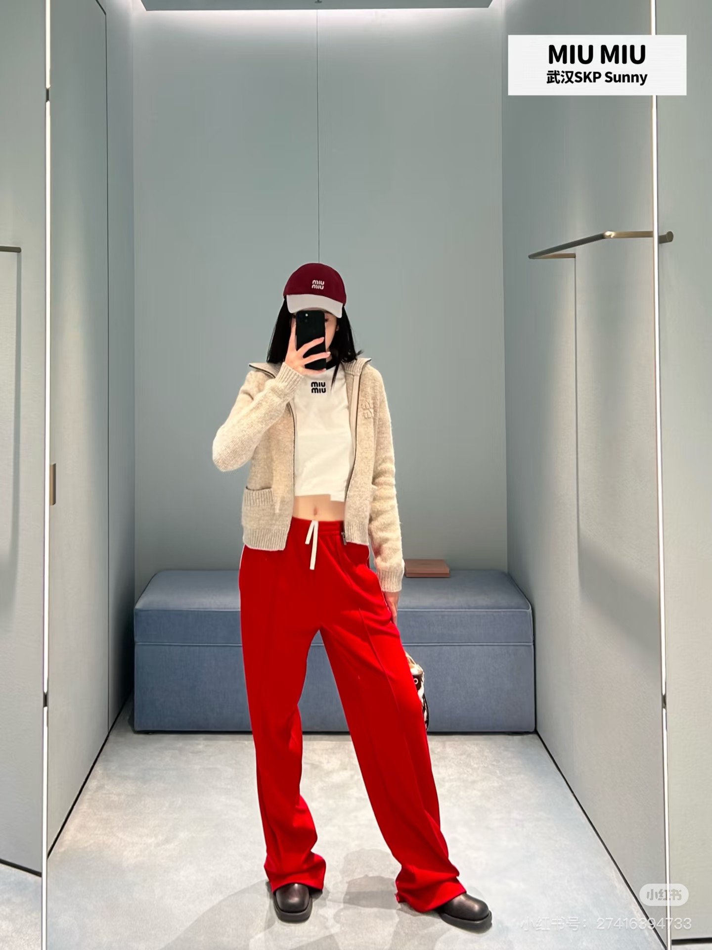 스포티한 무드에 미우미우 특유의 소녀스러운 감성을 더한 니트 집업 & 팬츠 셋업입니다. 세트로 착용했을 때 가장 빛나는 아이템입니다.