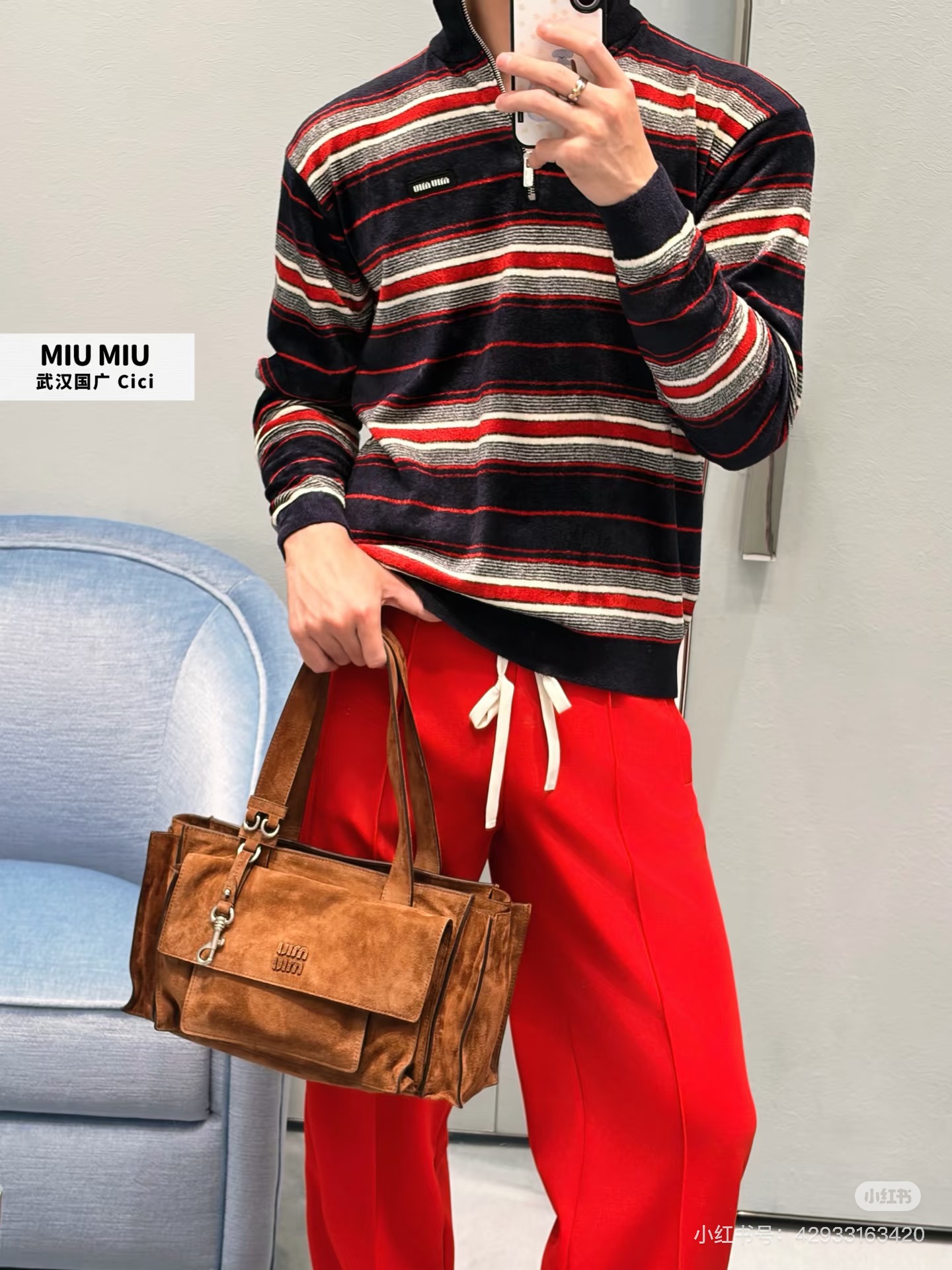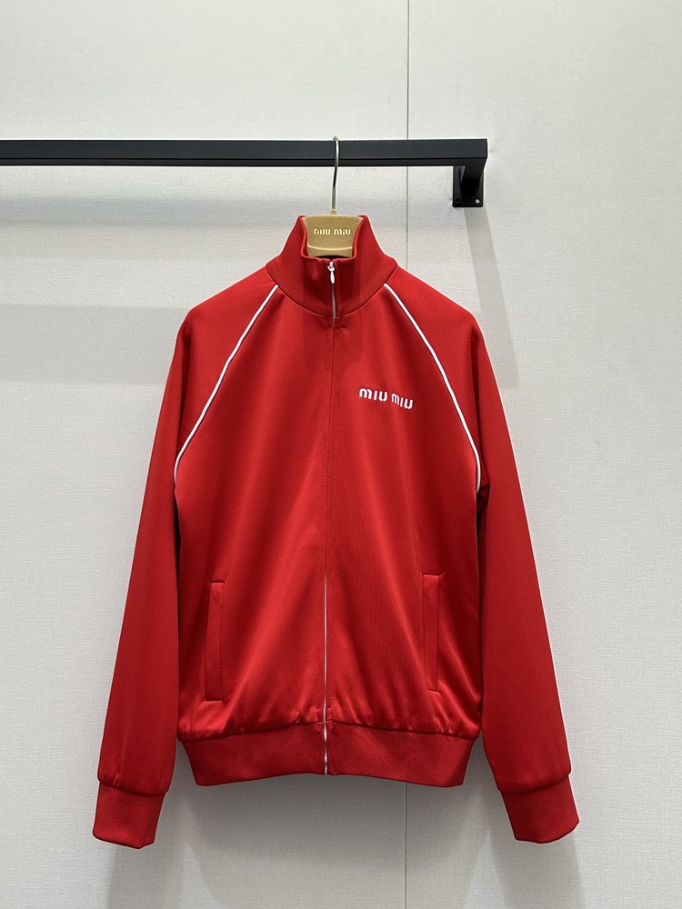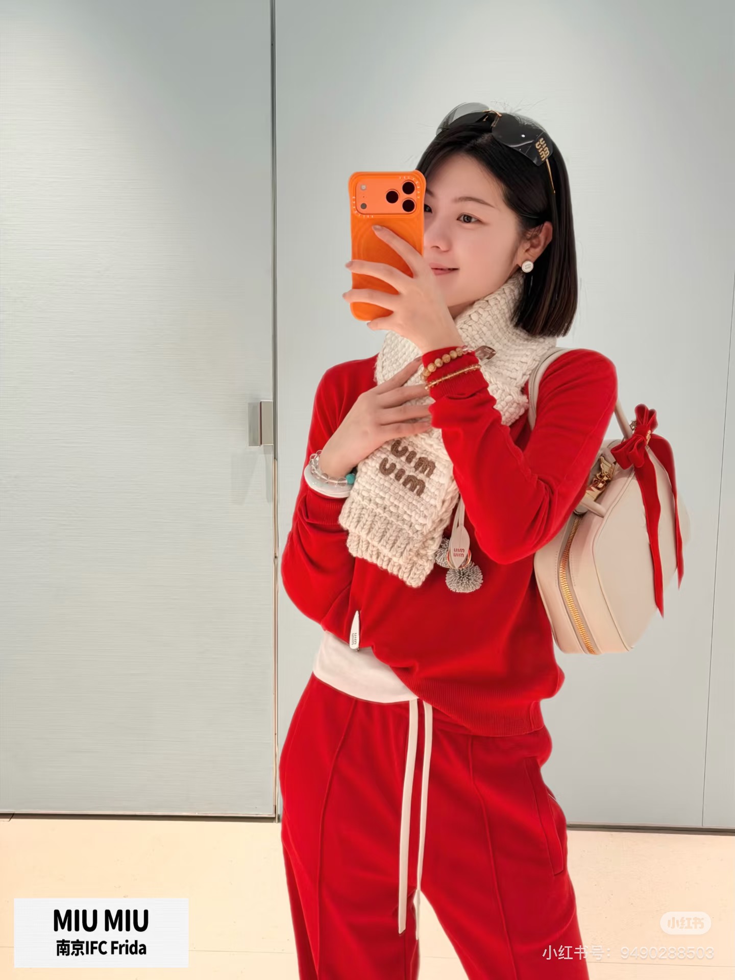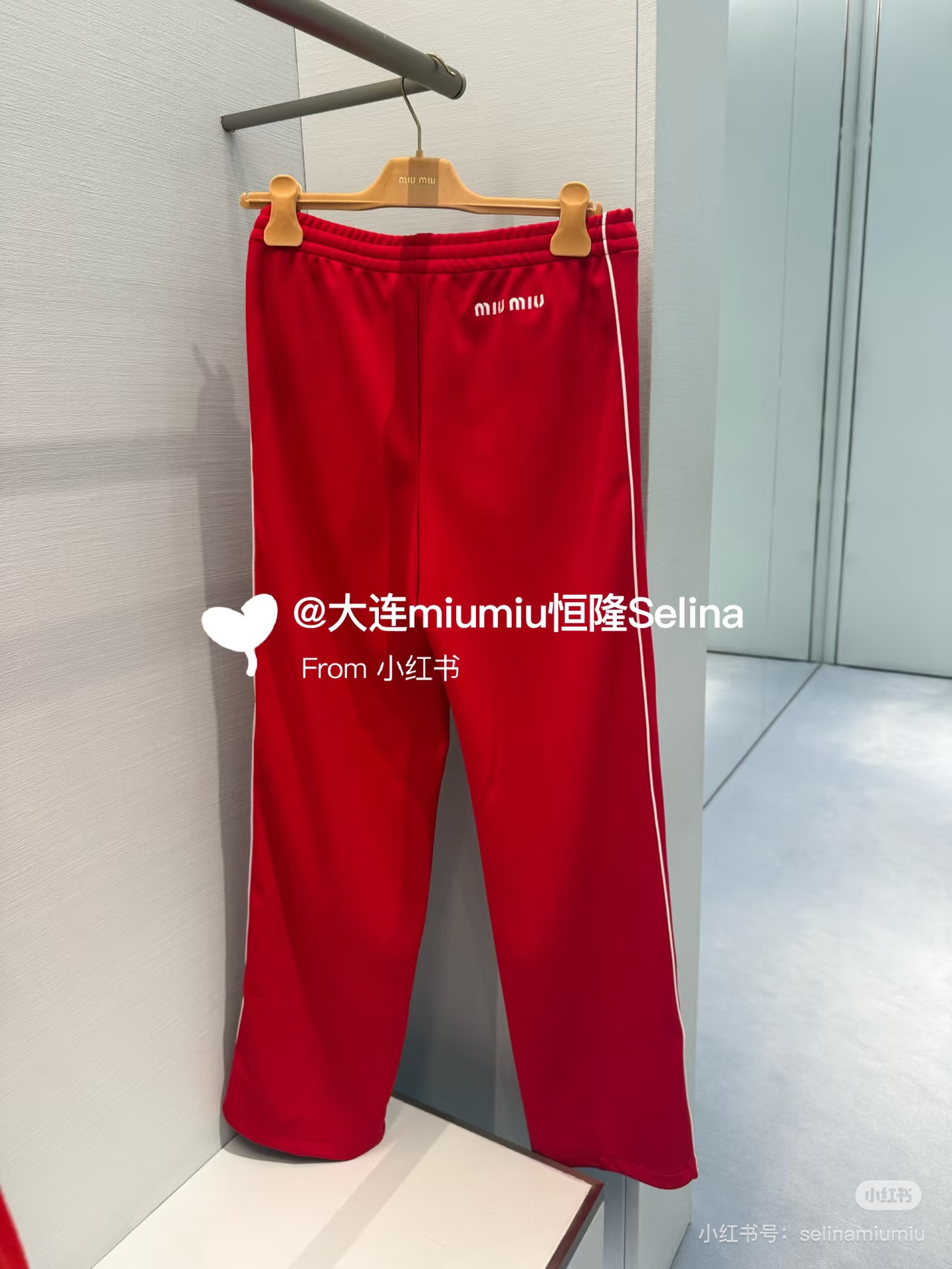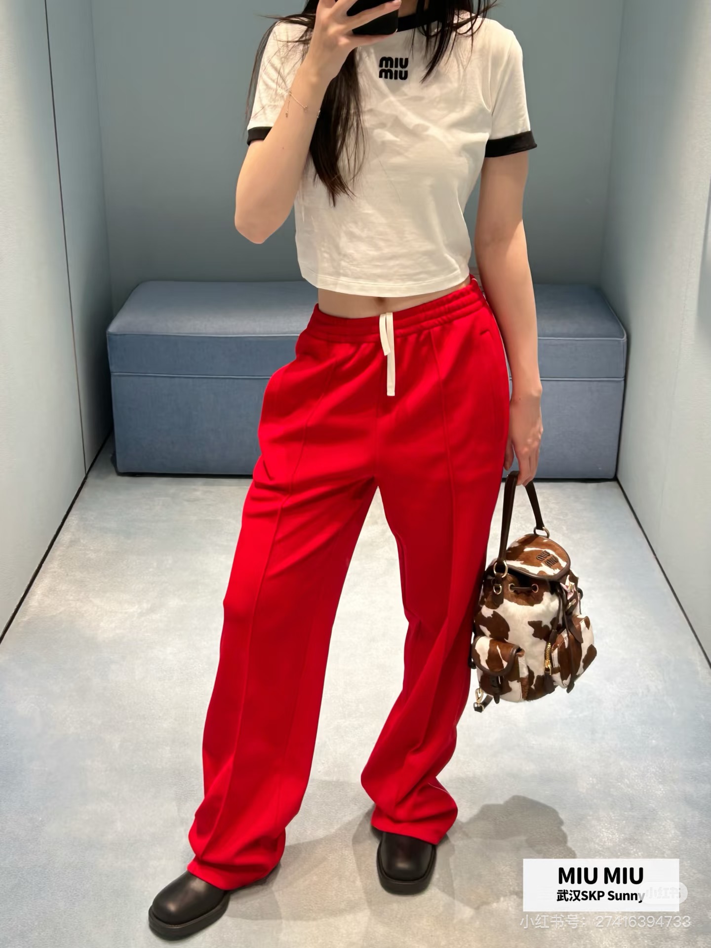 스포티한 무드에 미우미우 특유의 소녀스러운 감성을 더한 니트 집업 & 팬츠 셋업입니다. 세트로 착용했을 때 가장 빛나는 아이템입니다.