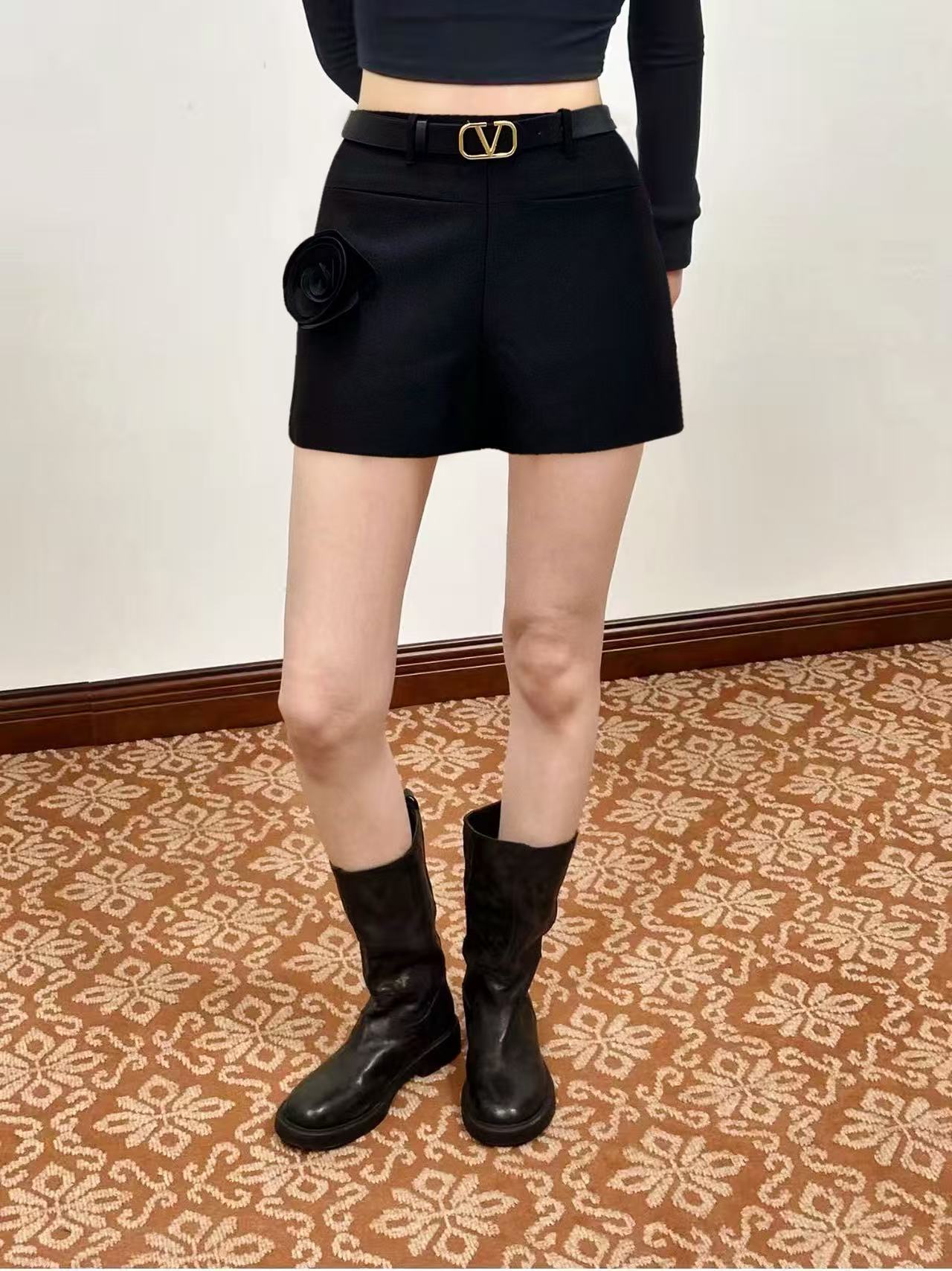 발렌티노(Valentino) 실크 울 블렌드 플라워 벨트 숏 팬츠 바지 의류SALE