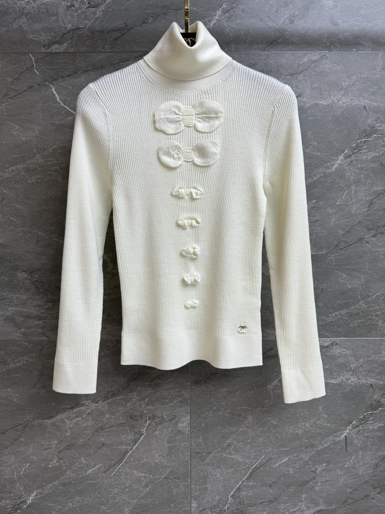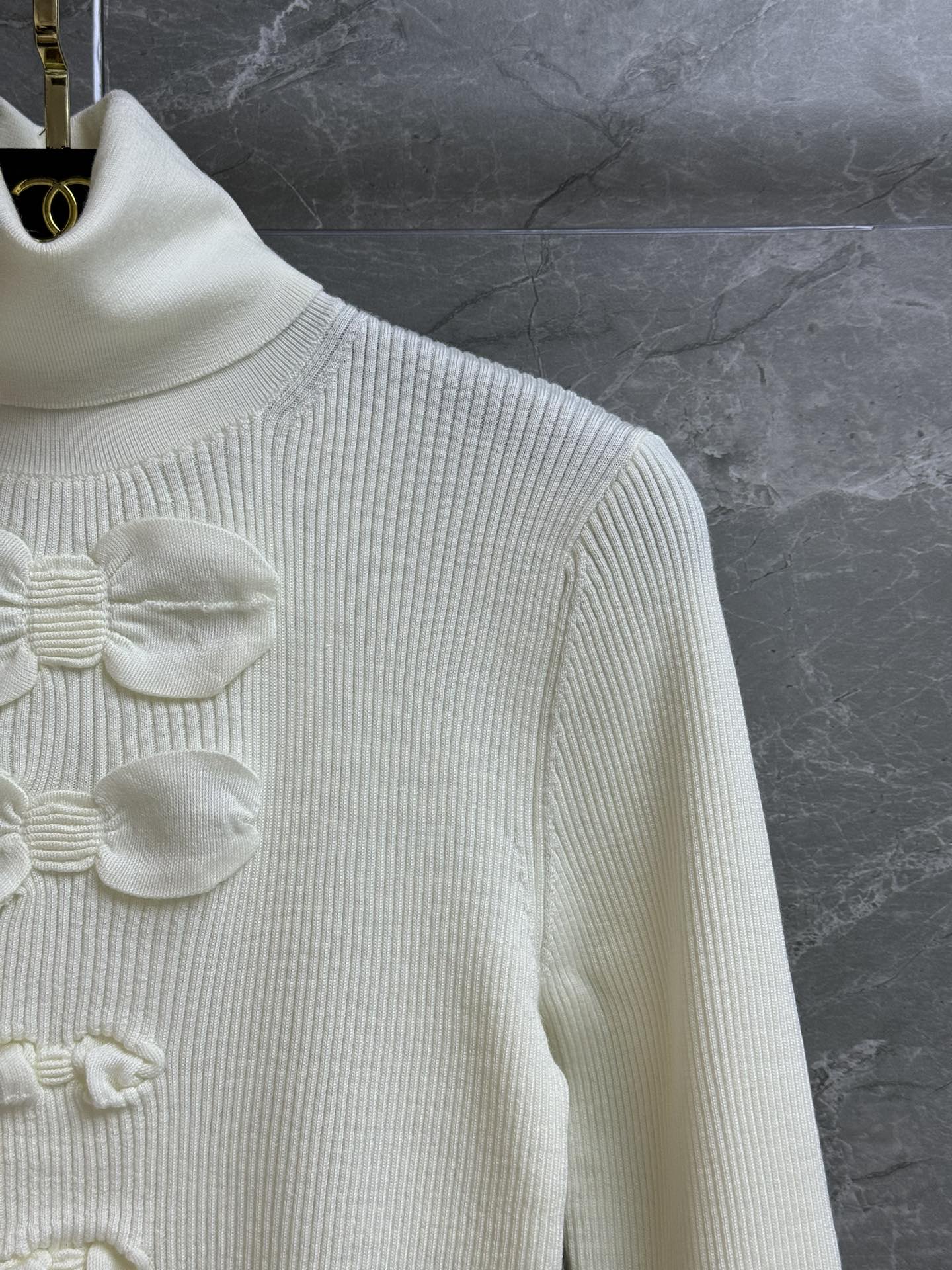 샤넬(Chanel) 입체 리본 부클레 터틀넥 목폴라 니트 의류SALE