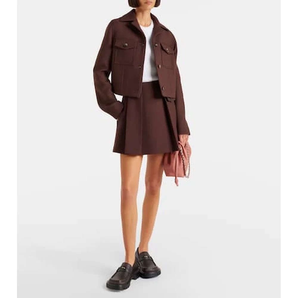 로에베(Loew) 크롭 울 워크 자켓 재킷 + 언밸런스 플리츠 레이어드 스커트 셋업 세트 의류