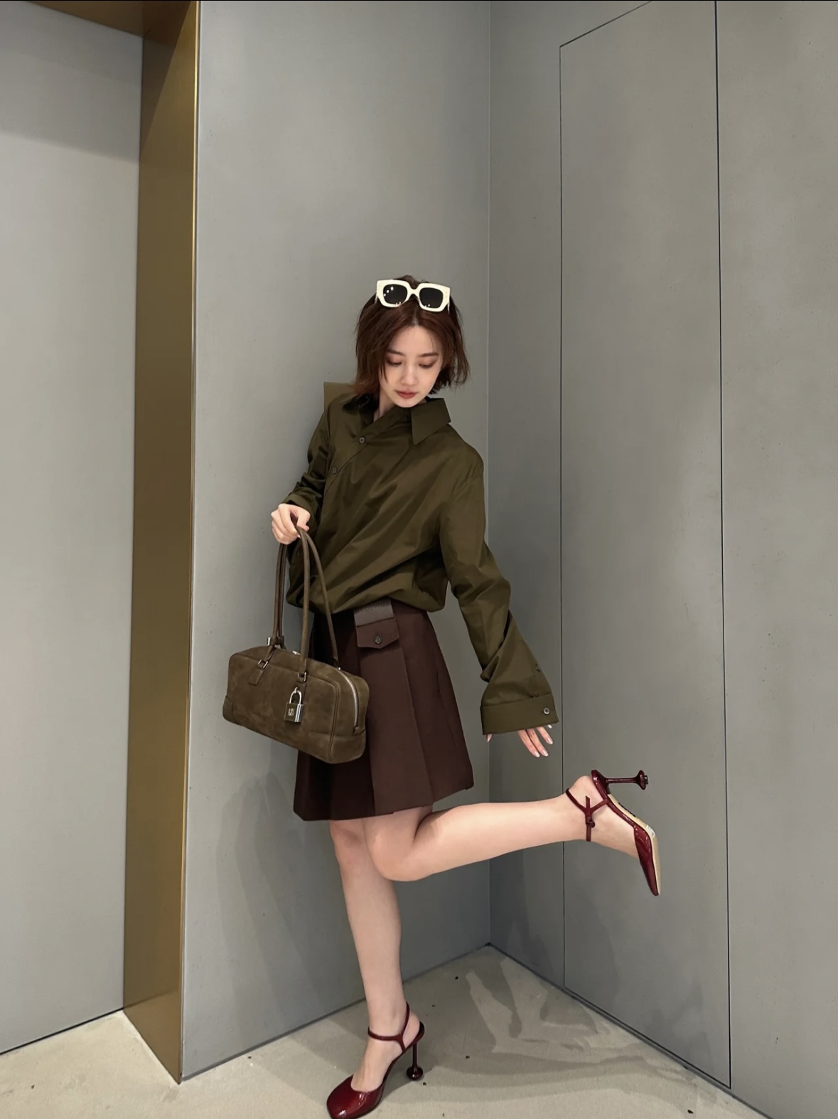 로에베(Loew) 크롭 울 워크 자켓 재킷 + 언밸런스 플리츠 레이어드 스커트 셋업 세트 의류NEWSALE
