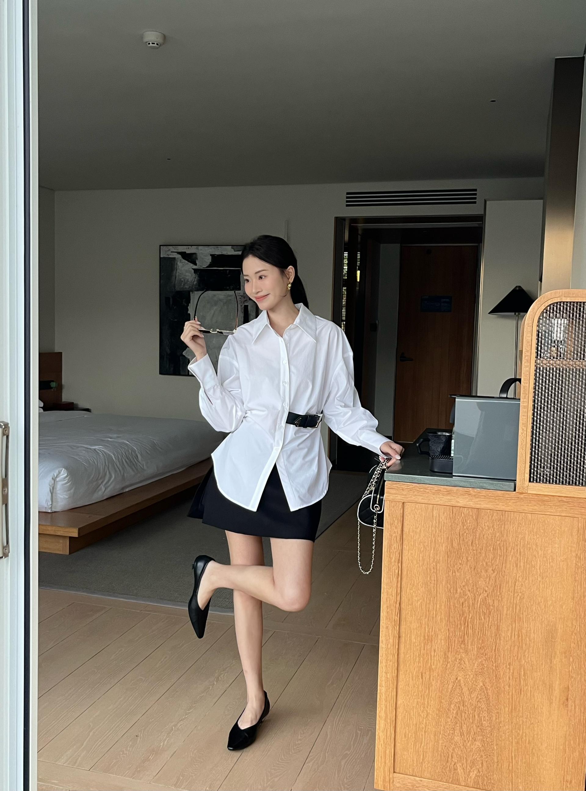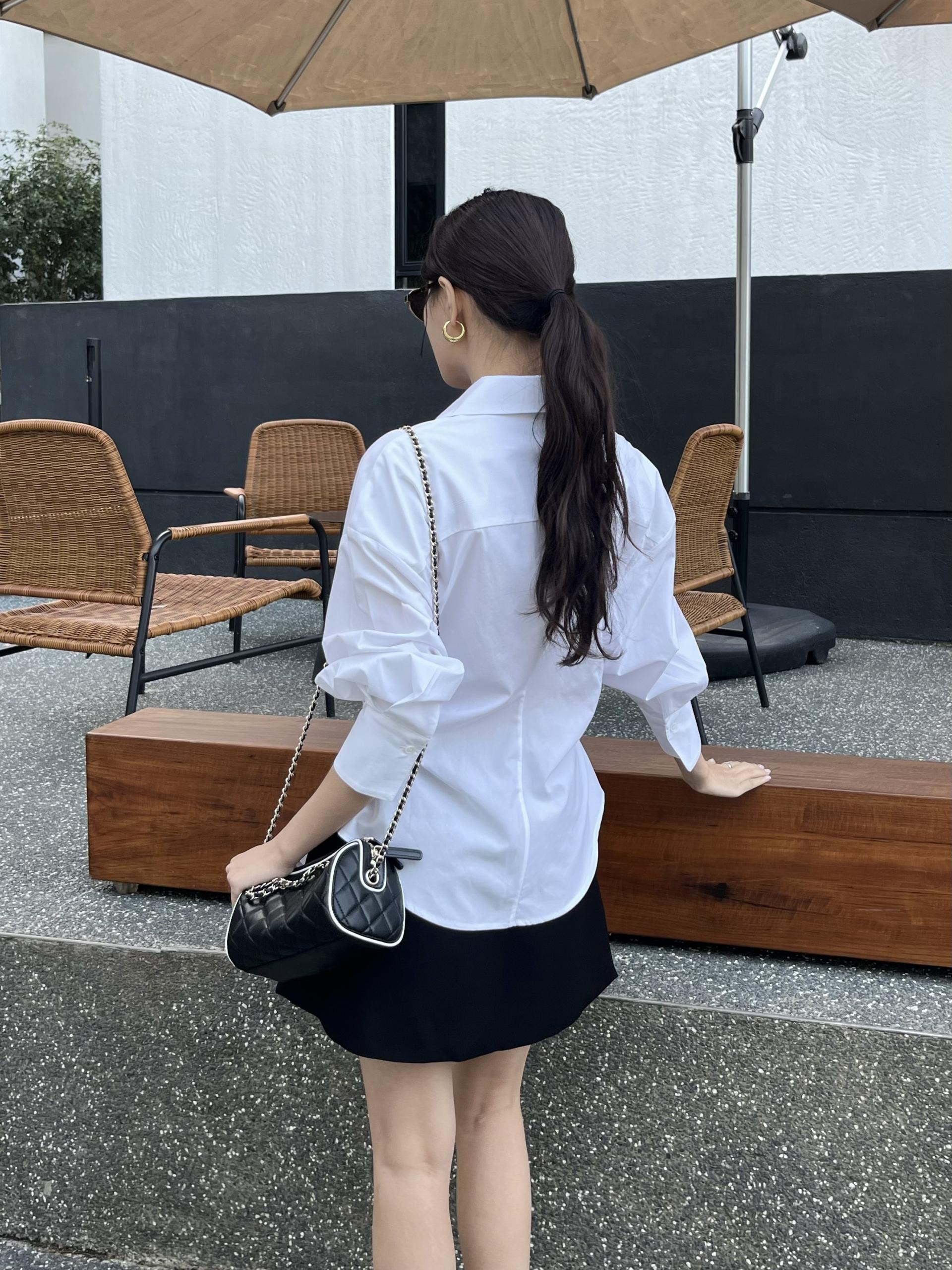 구조적인 미학이 돋보이는 입체 실루엣 화이트 셔츠입니다.
