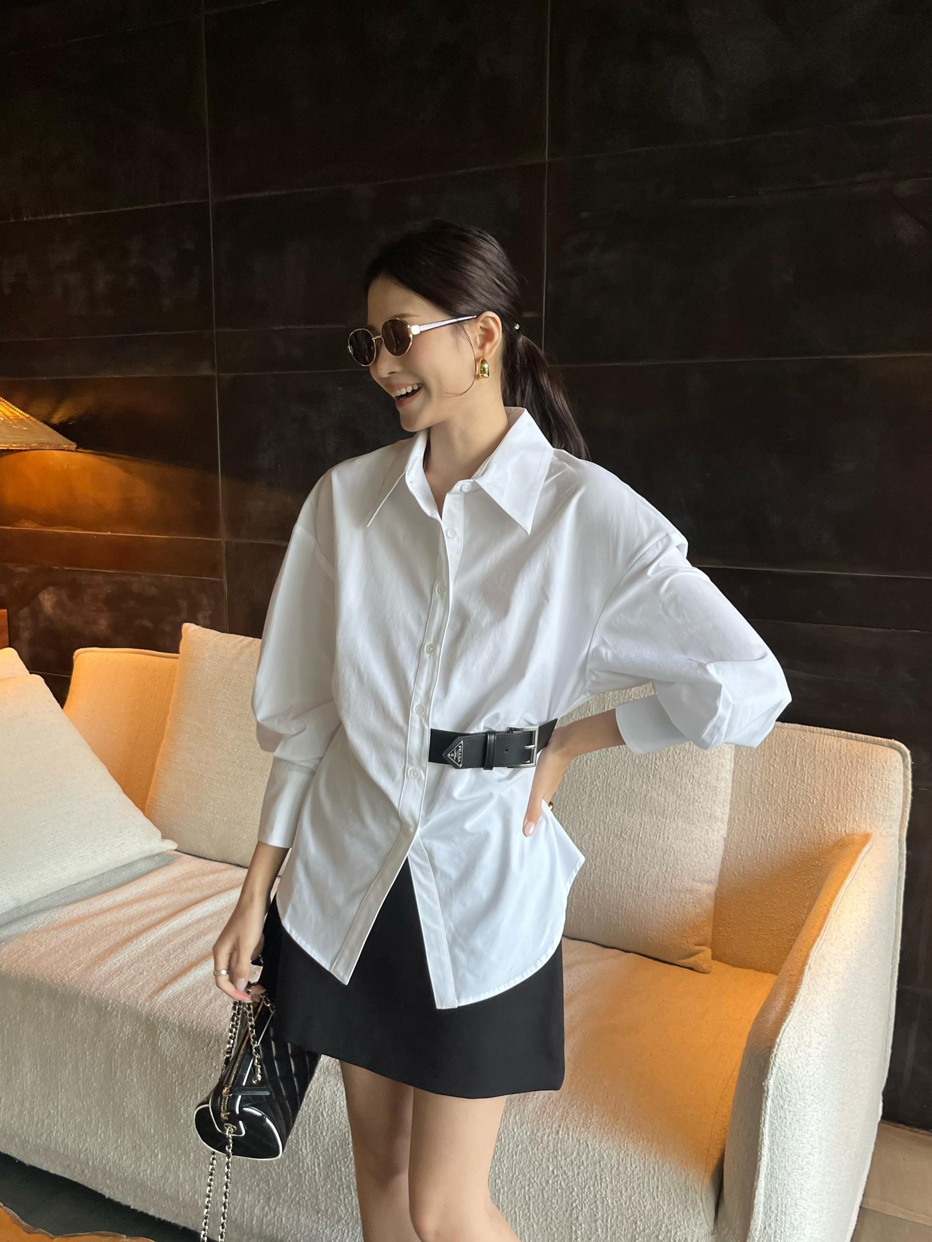 프라다(Prada) 삼각 로고 레더 버클 셔츠 의류SALE