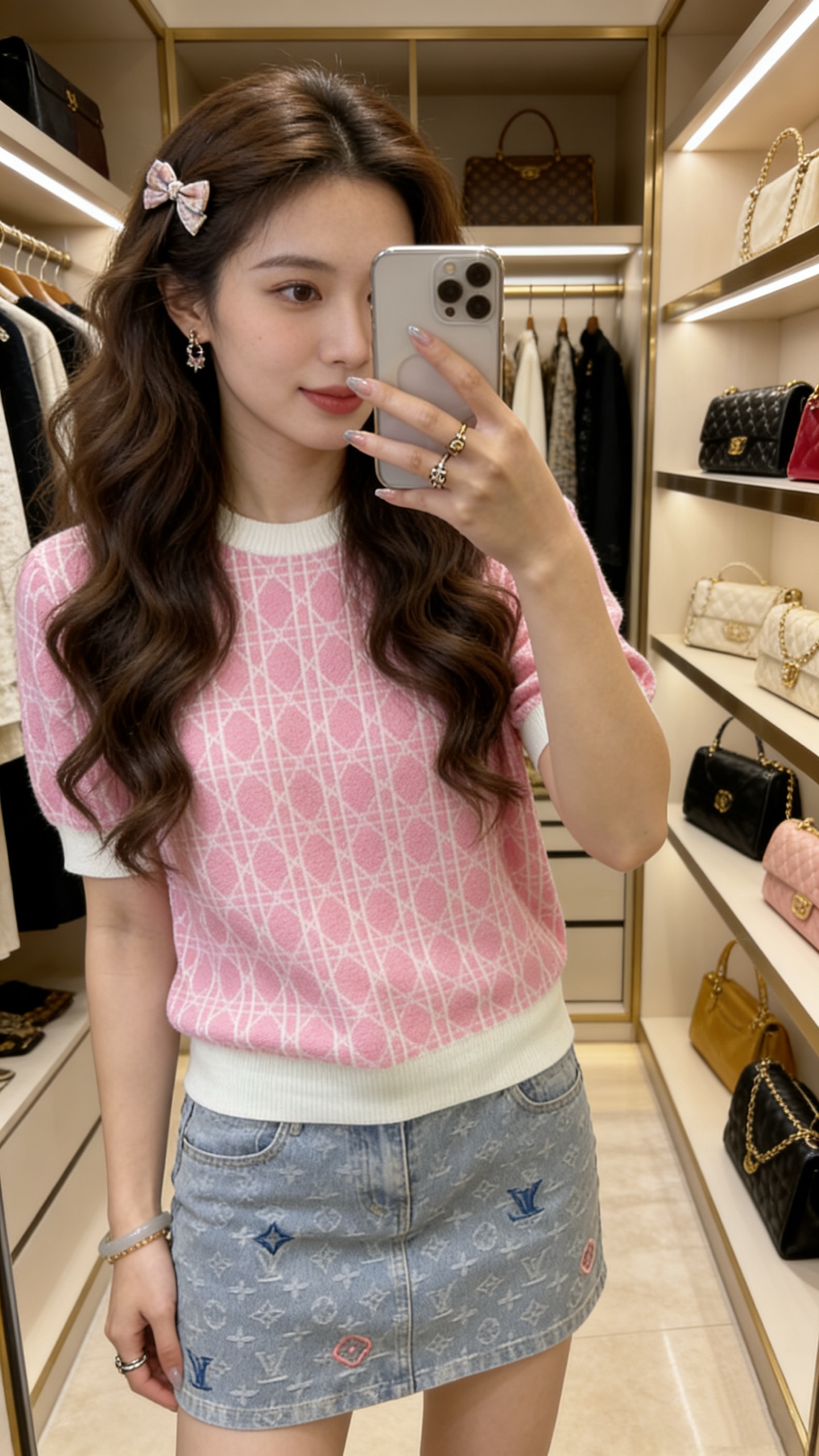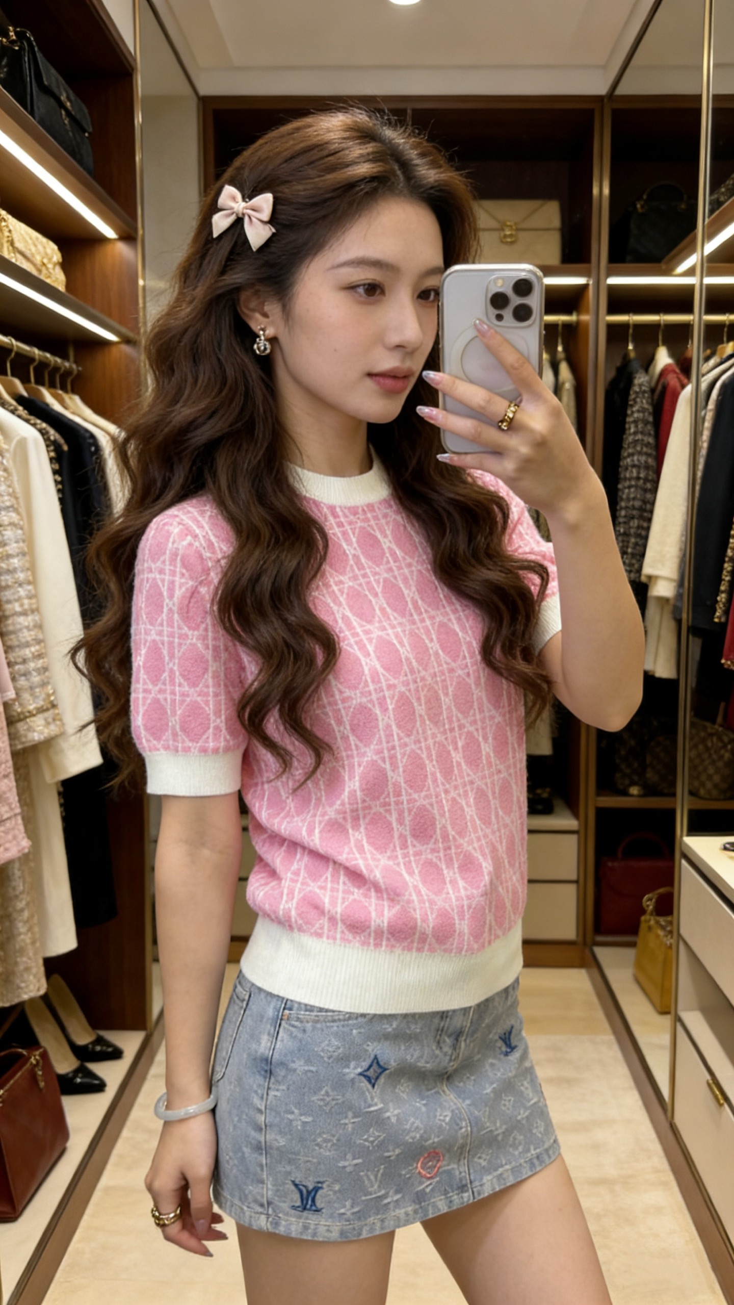 포인트: 넥라인과 소매의 배색 마감으로 단정한 무드를 더하며, 브랜드 특유의 화사함 강조