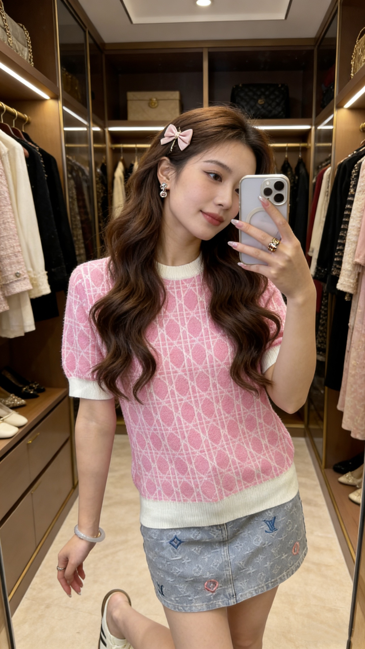 2026 리조트 시즌을 여는 클래식 오블리크 패턴의 니트 탑입니다. 디올만의 우아한 감각과 실용적인 실루엣이 결합된 독자 고버전 제품입니다.