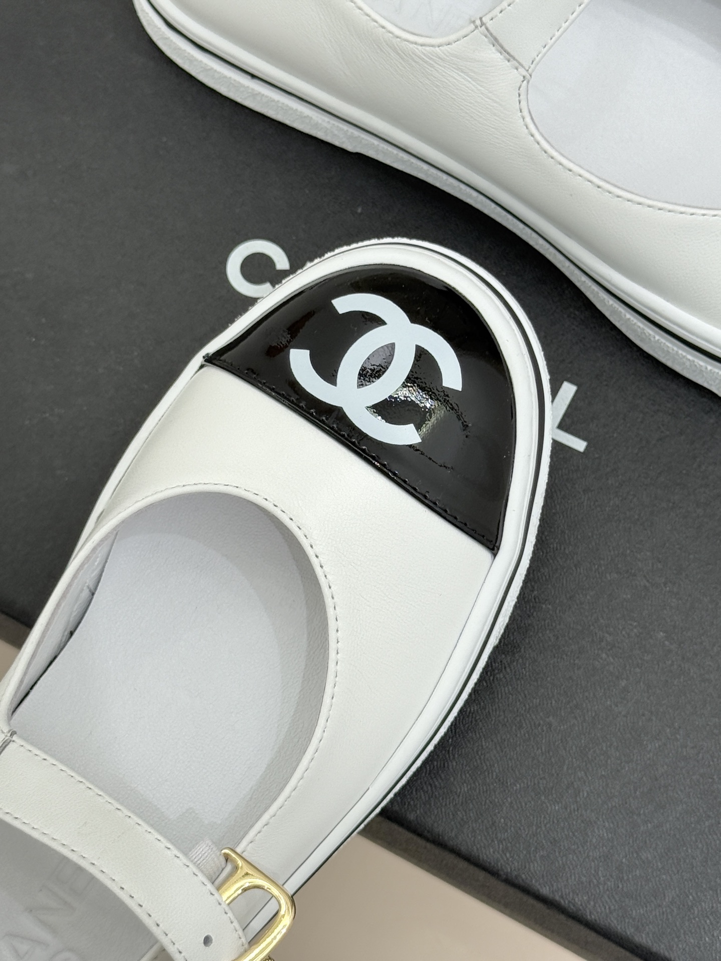 디테일: 클래식 배색 구성, 앞코에 더블 C 로고 장식 플레이트 적용으로 높은 브랜드 인지도 강조
