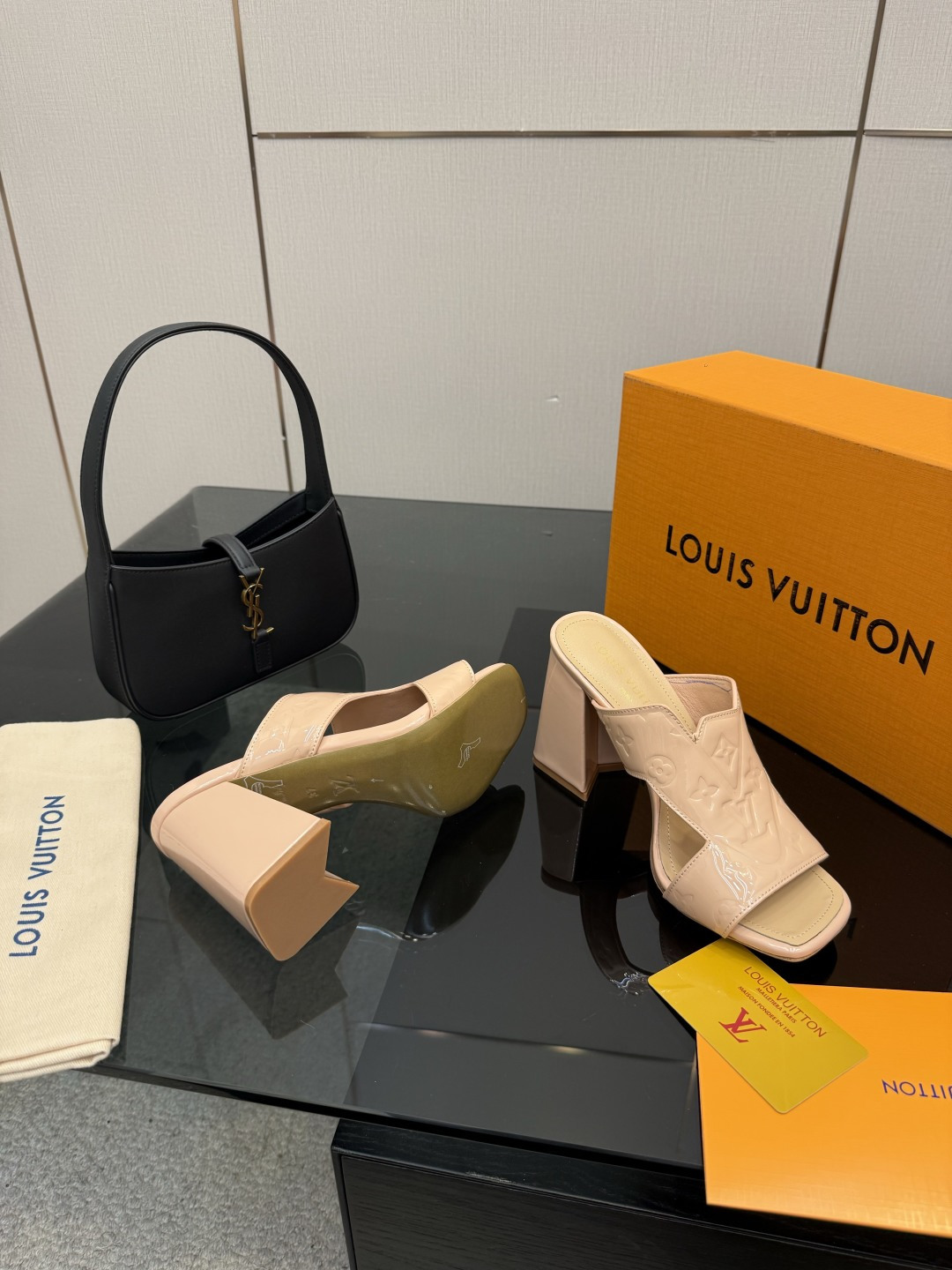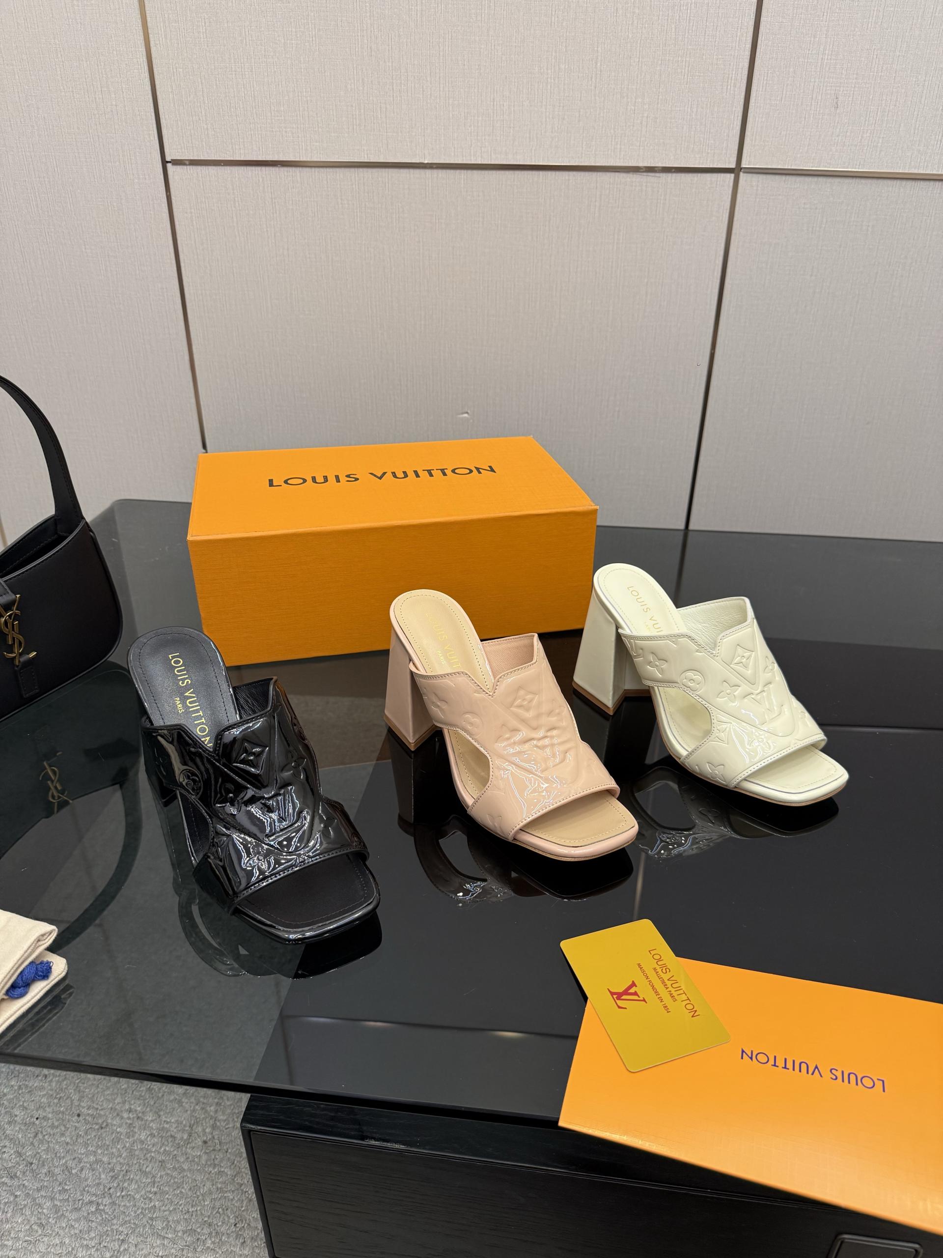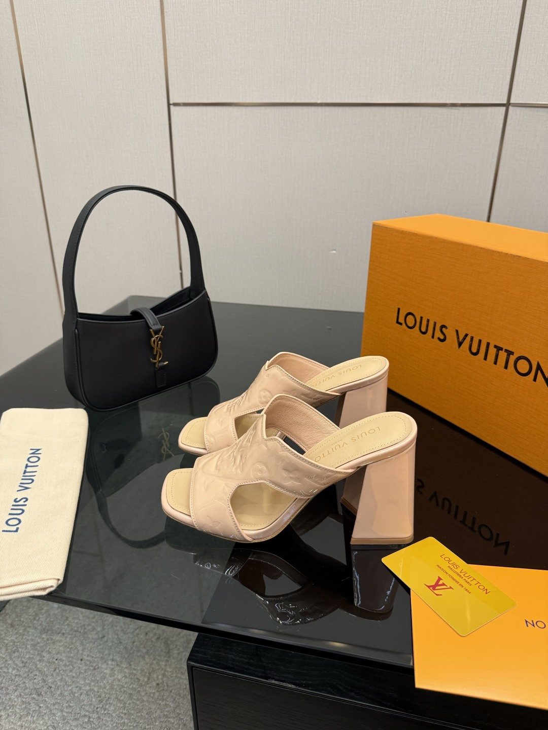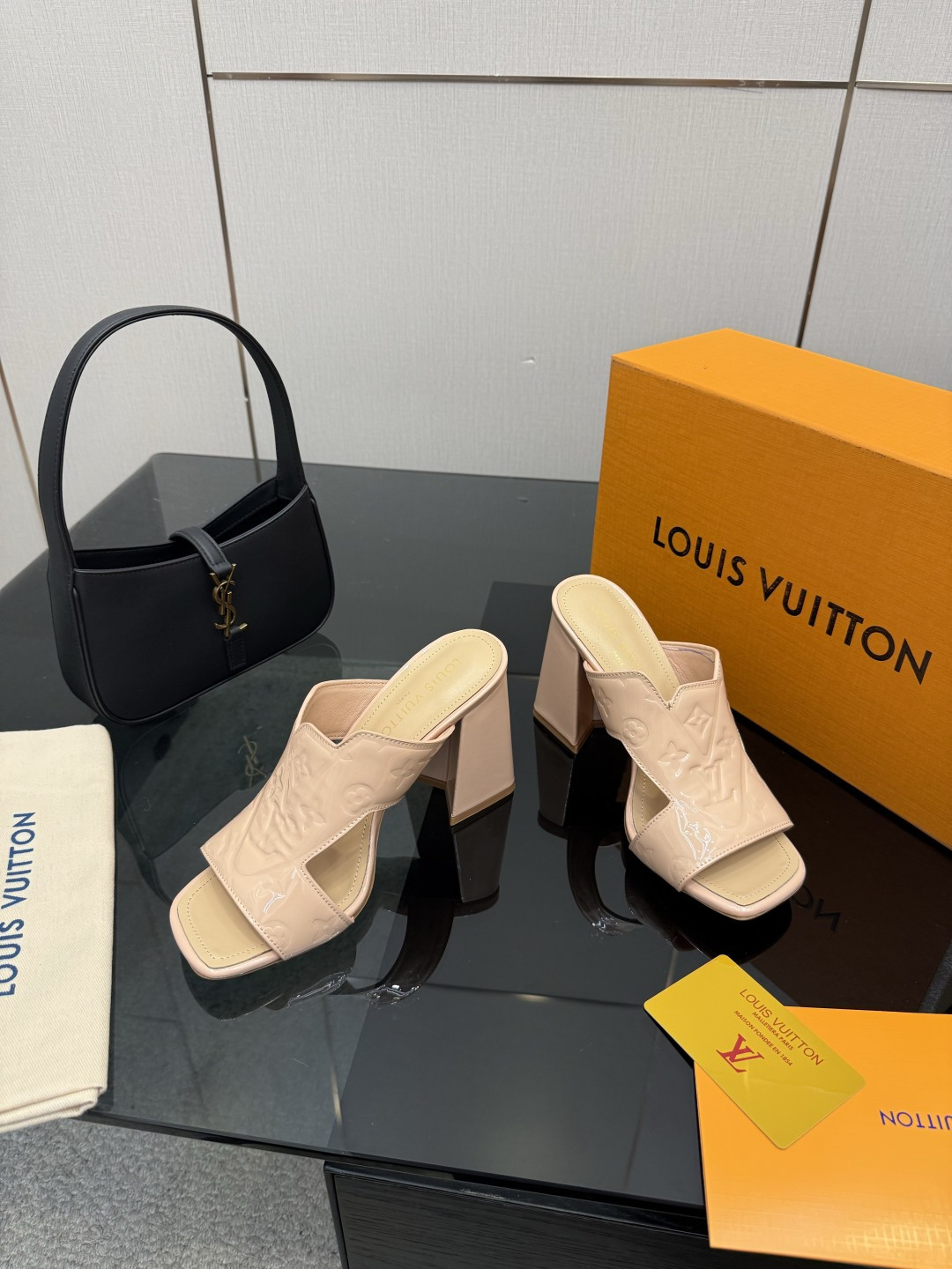 루이비통(LV) 엠보싱 로고 하이힐 뮬 슬리퍼 신발NEWSALE