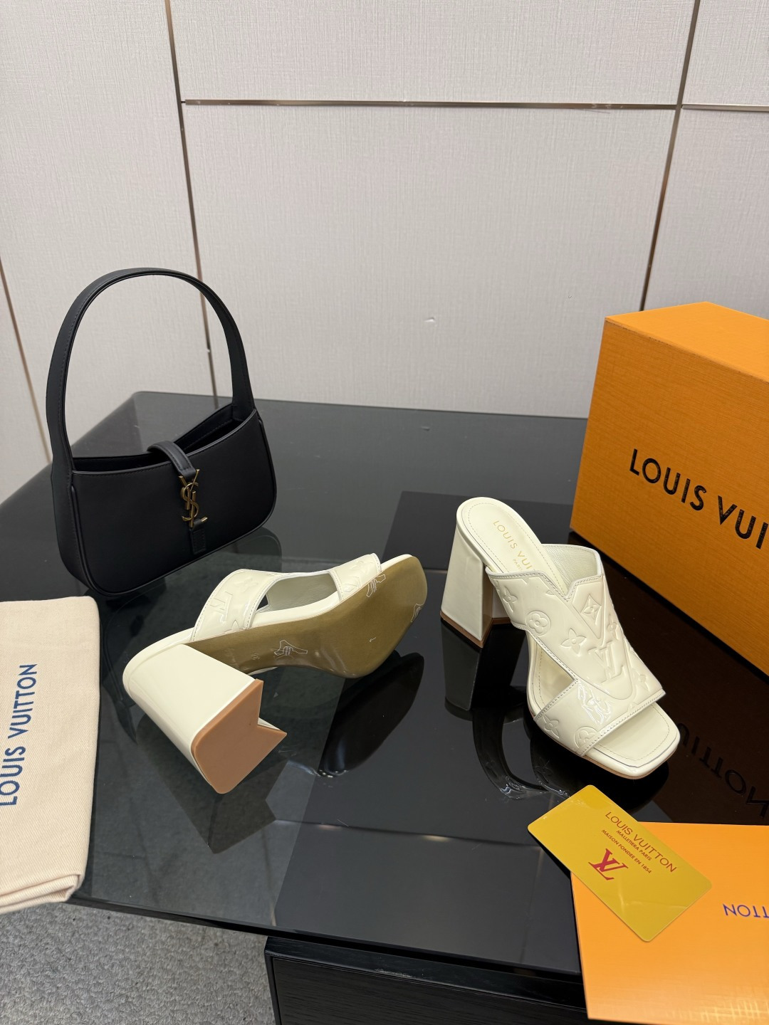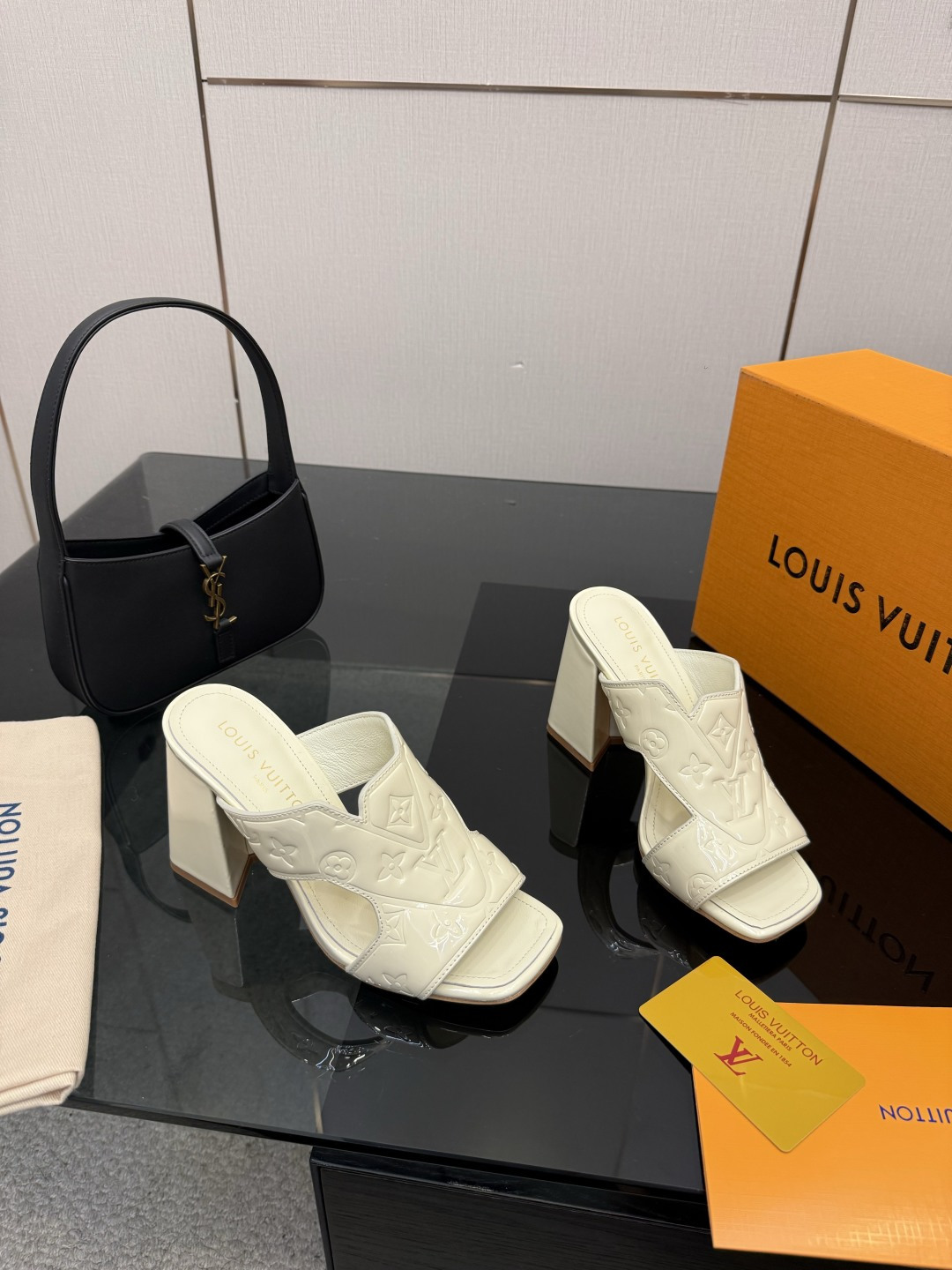 루이비통(LV) 엠보싱 로고 하이힐 뮬 슬리퍼 신발NEWSALE