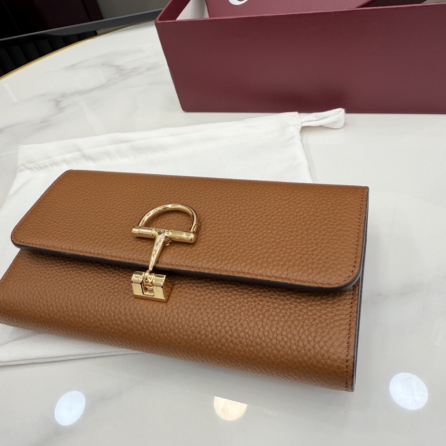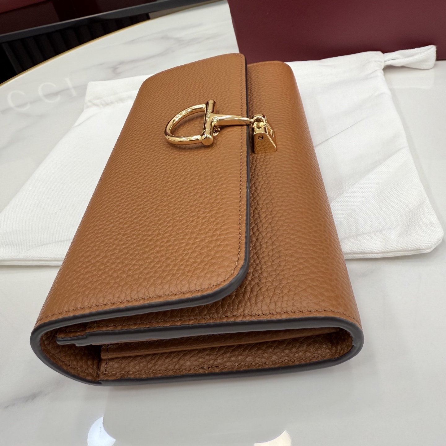 GUCCI 구찌 하프 홀스빗 레더 플랩 장지갑 - 브라운 (848791)NEWSALE
