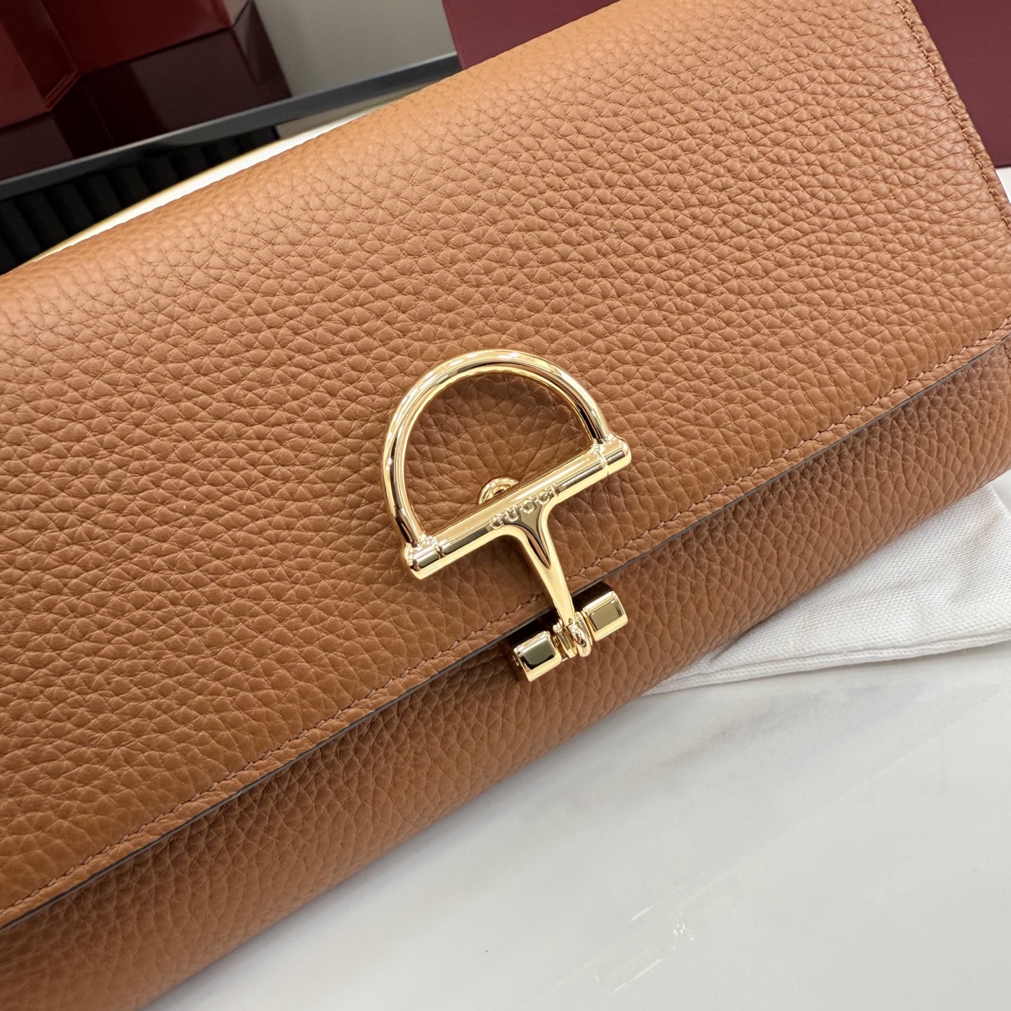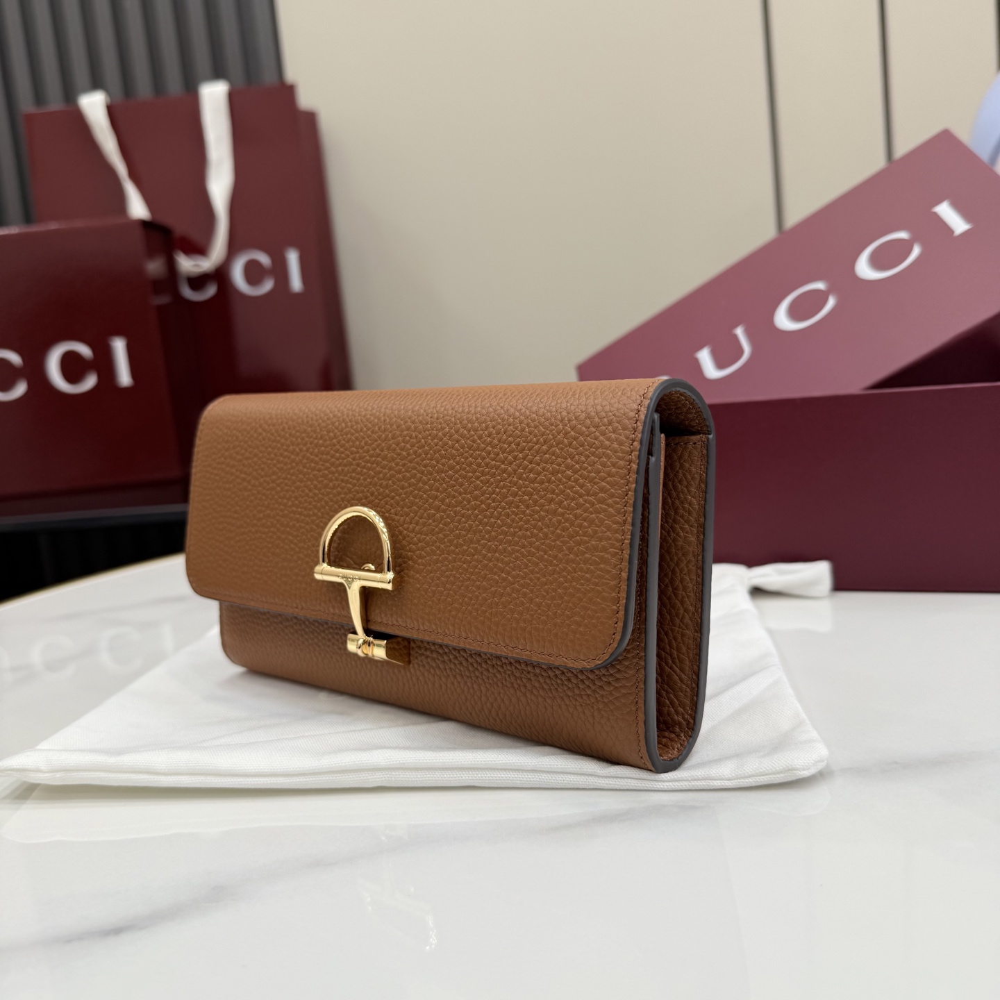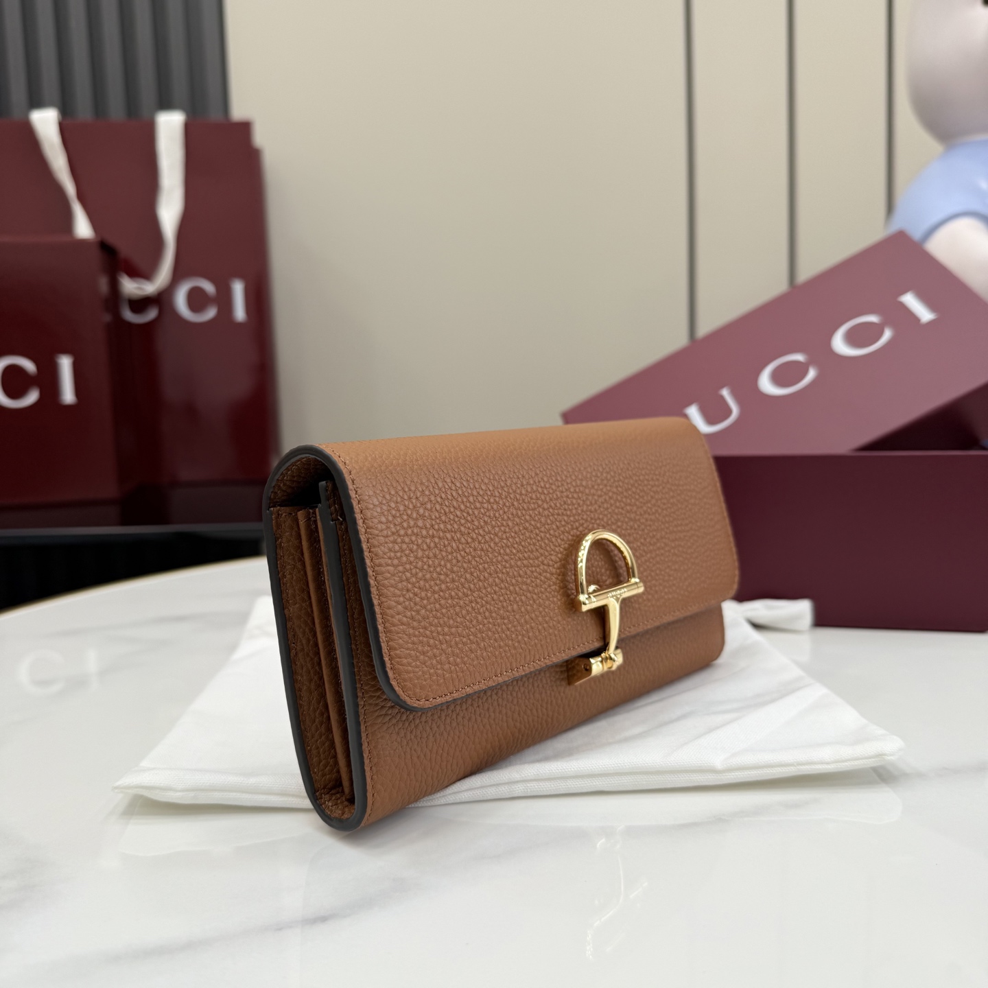 클래식한 '하프 홀스빗' 디테일과 따뜻한 브라운 컬러가 만나 독보적인 빈티지 럭셔리를 완성했습니다. 구찌의 헤리티지를 현대적으로 재해석한 2026년형 메인 장지갑입니다.