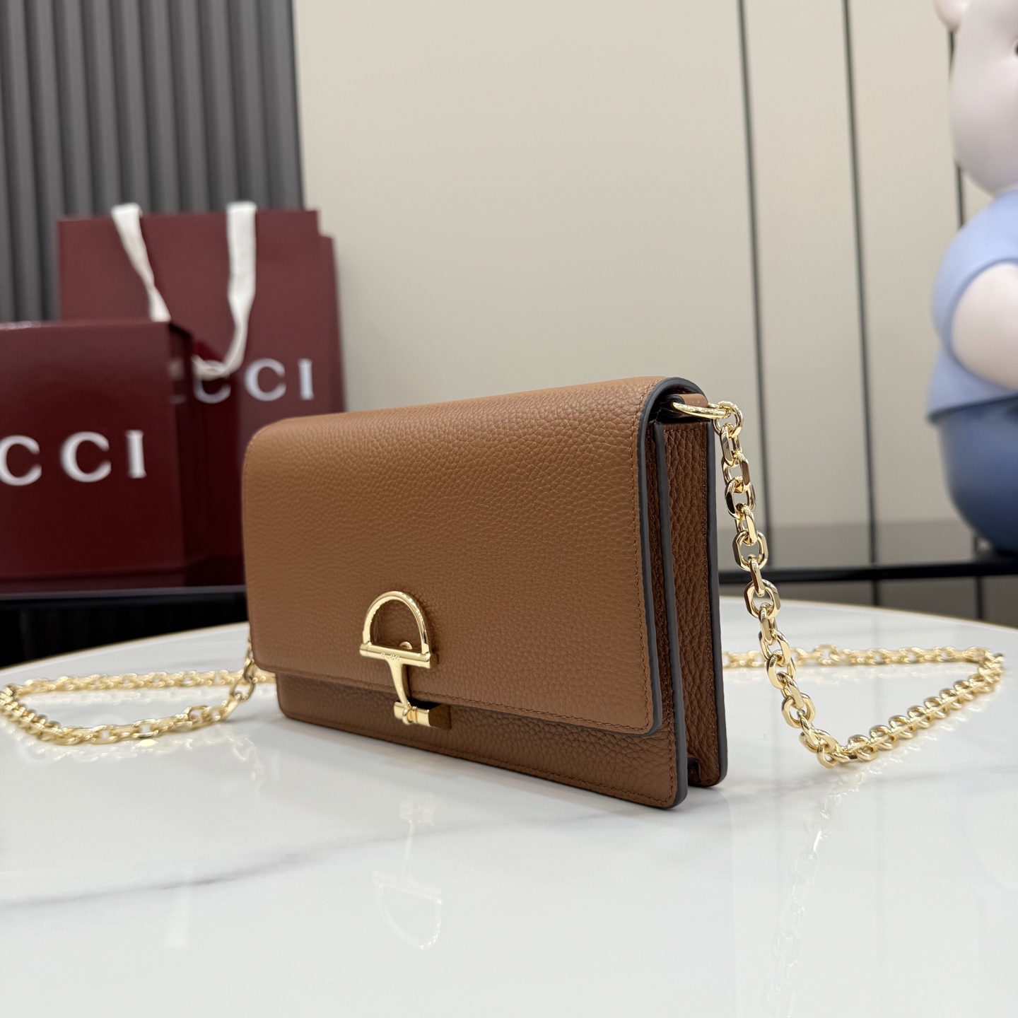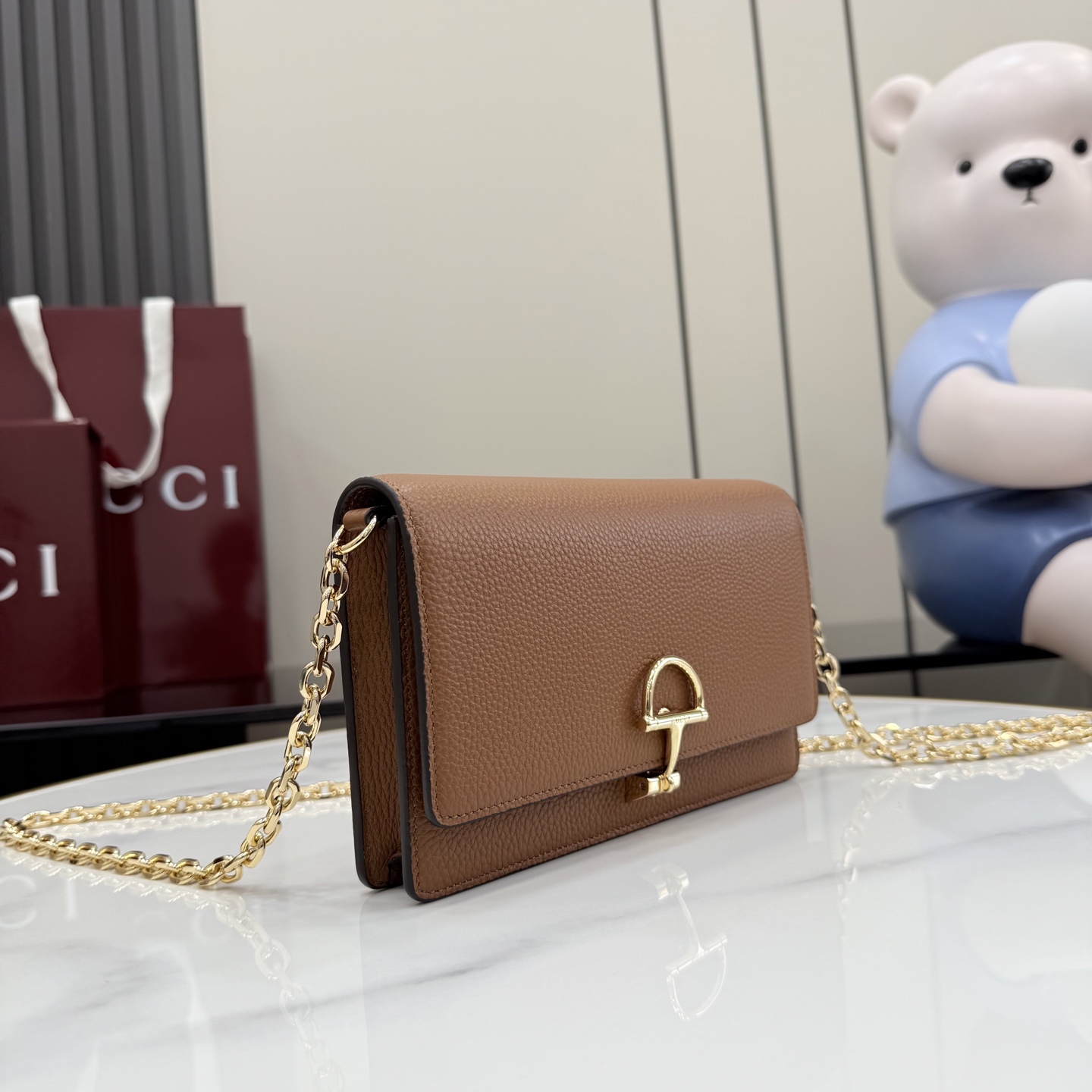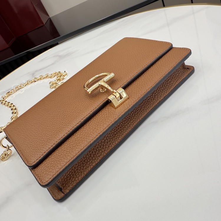GUCCI 구찌 하프 홀스빗 레더 체인 지갑 월렛 (WOC) - 브라운 (855654)