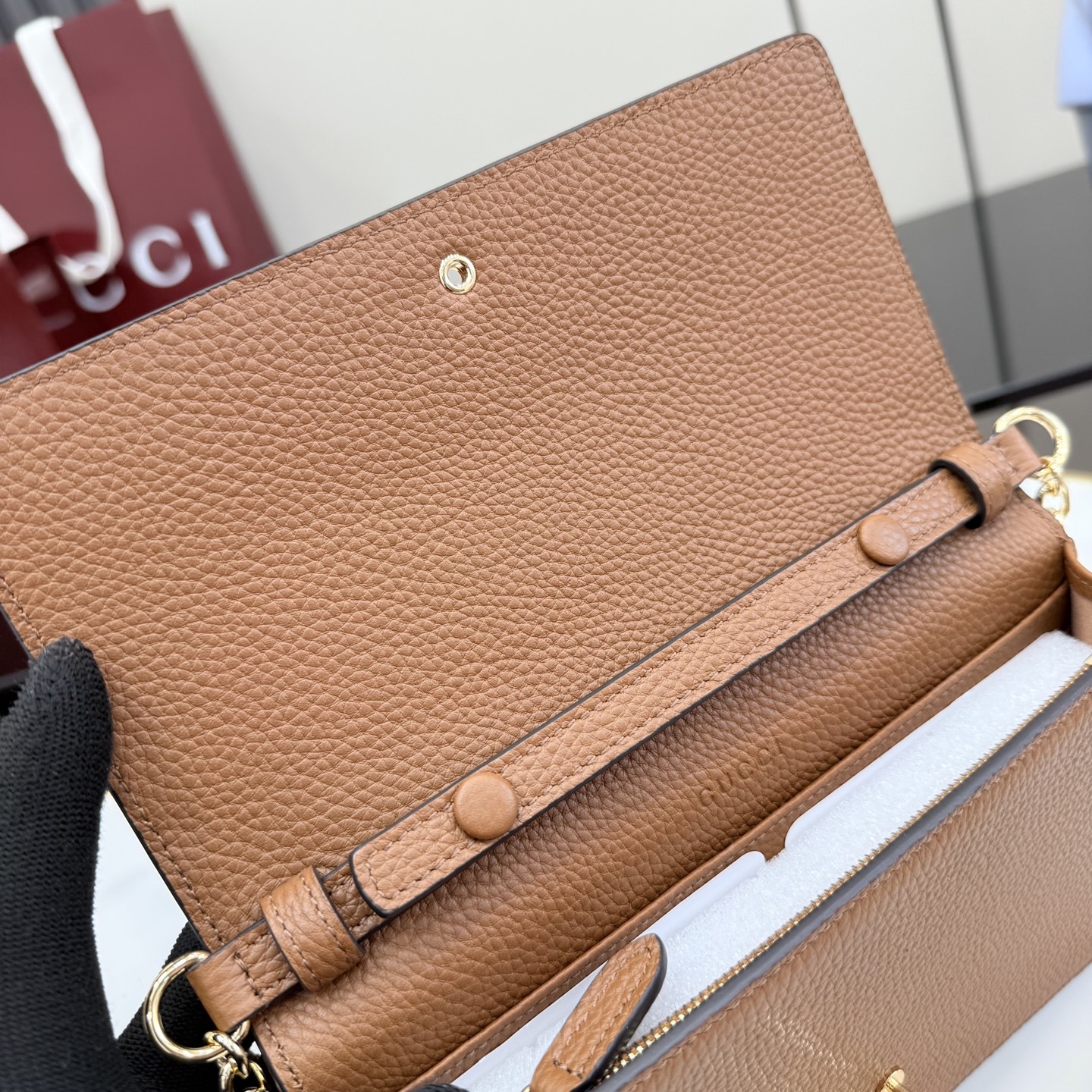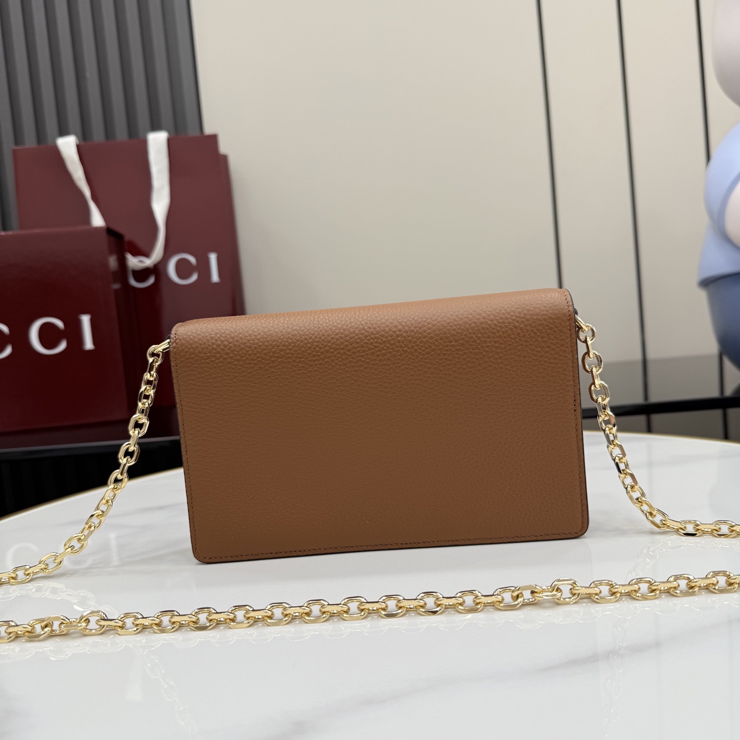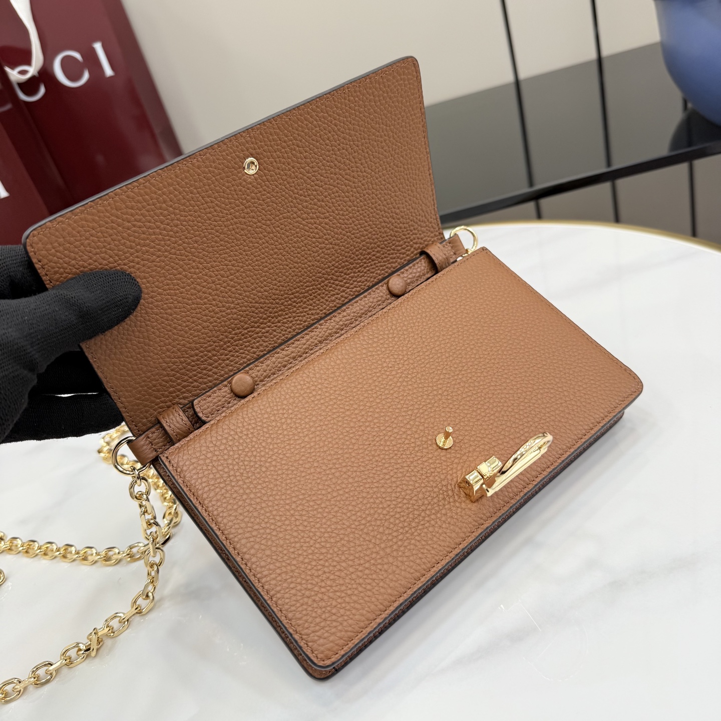 GUCCI 구찌 하프 홀스빗 레더 체인 지갑 월렛 (WOC) - 브라운 (855654)NEWSALE