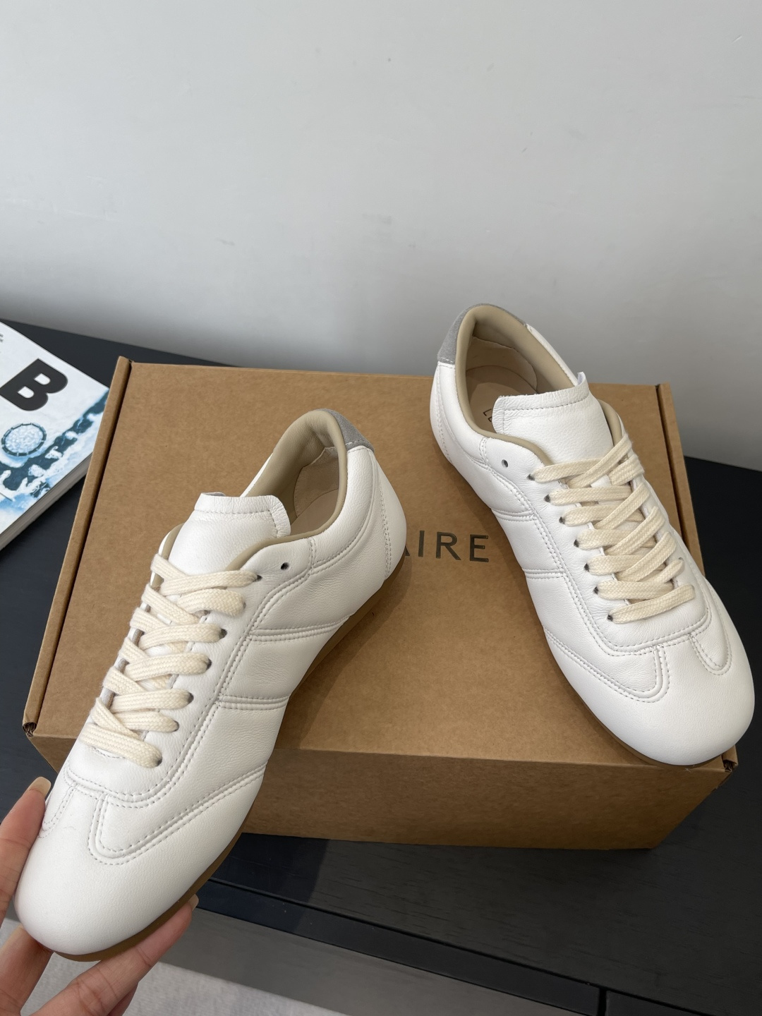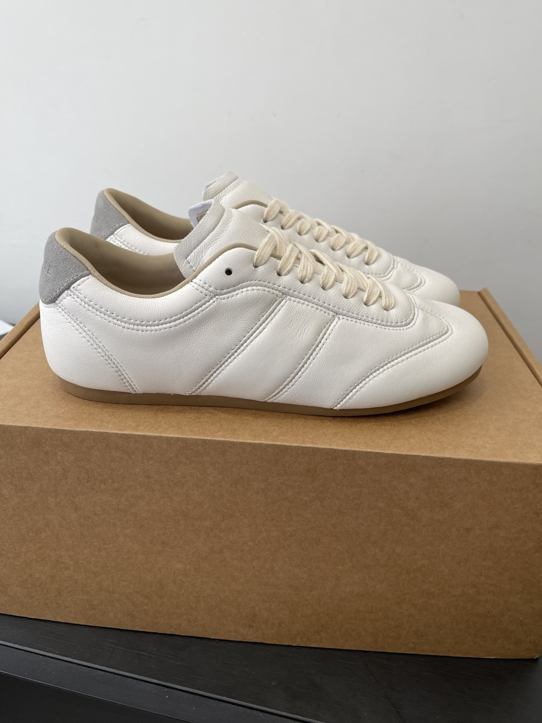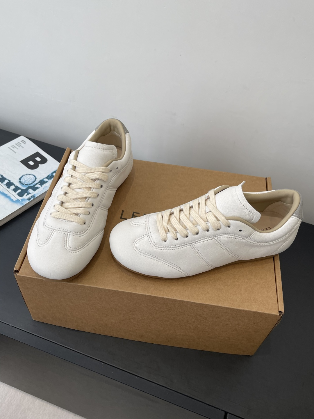 “부드러운 가죽 감촉으로 완성한 르메르 감성의 미니멀 독일군 스니커즈”