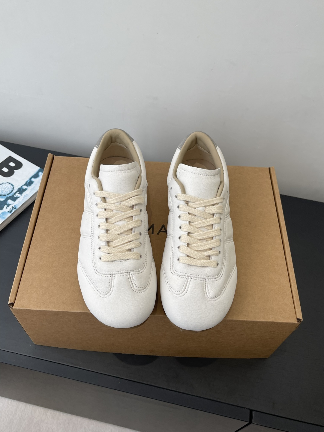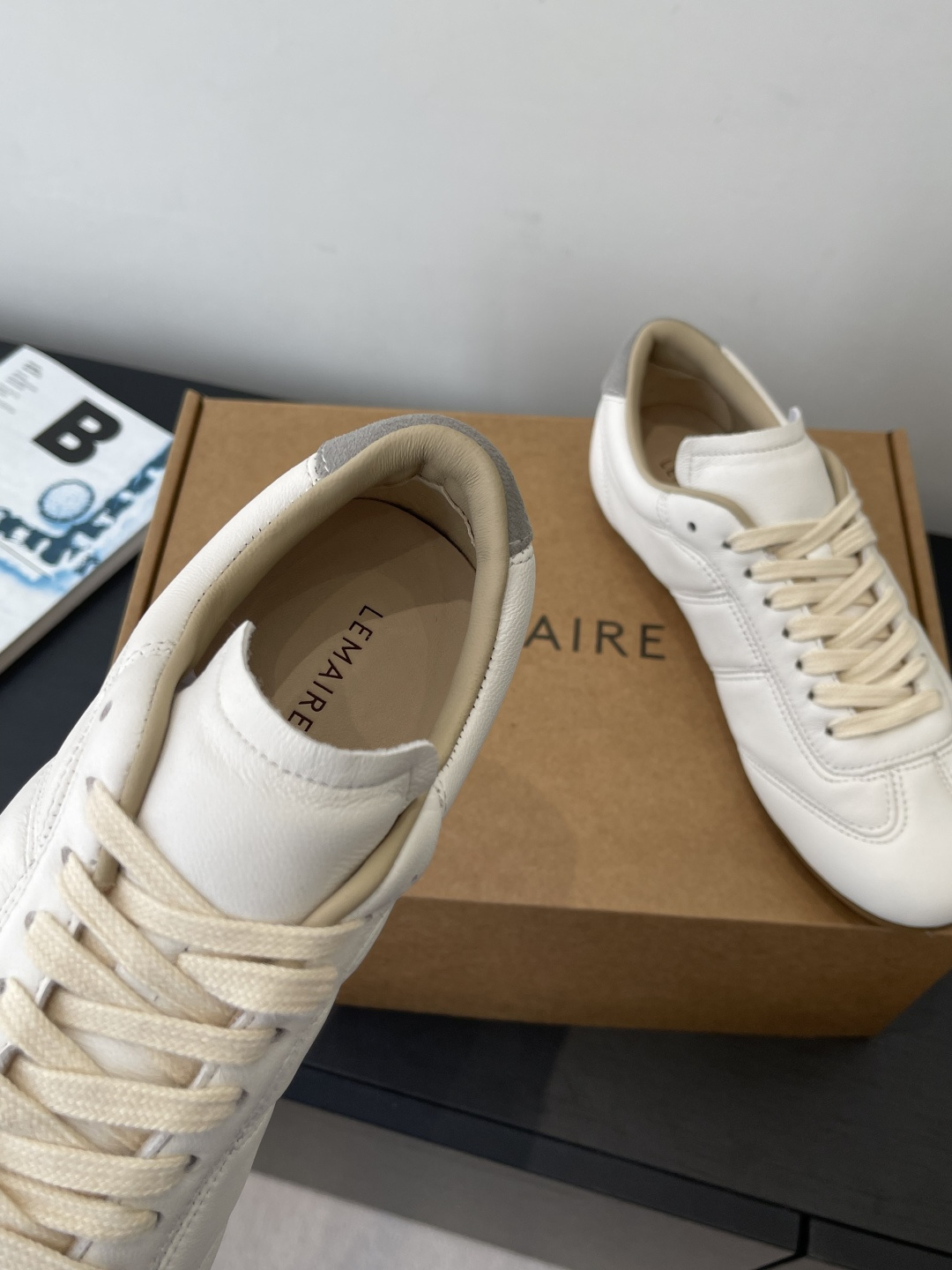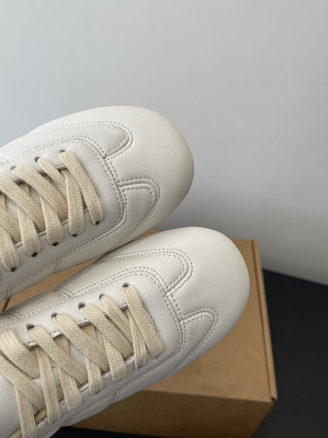 “부드러운 가죽 감촉으로 완성한 르메르 감성의 미니멀 독일군 스니커즈”