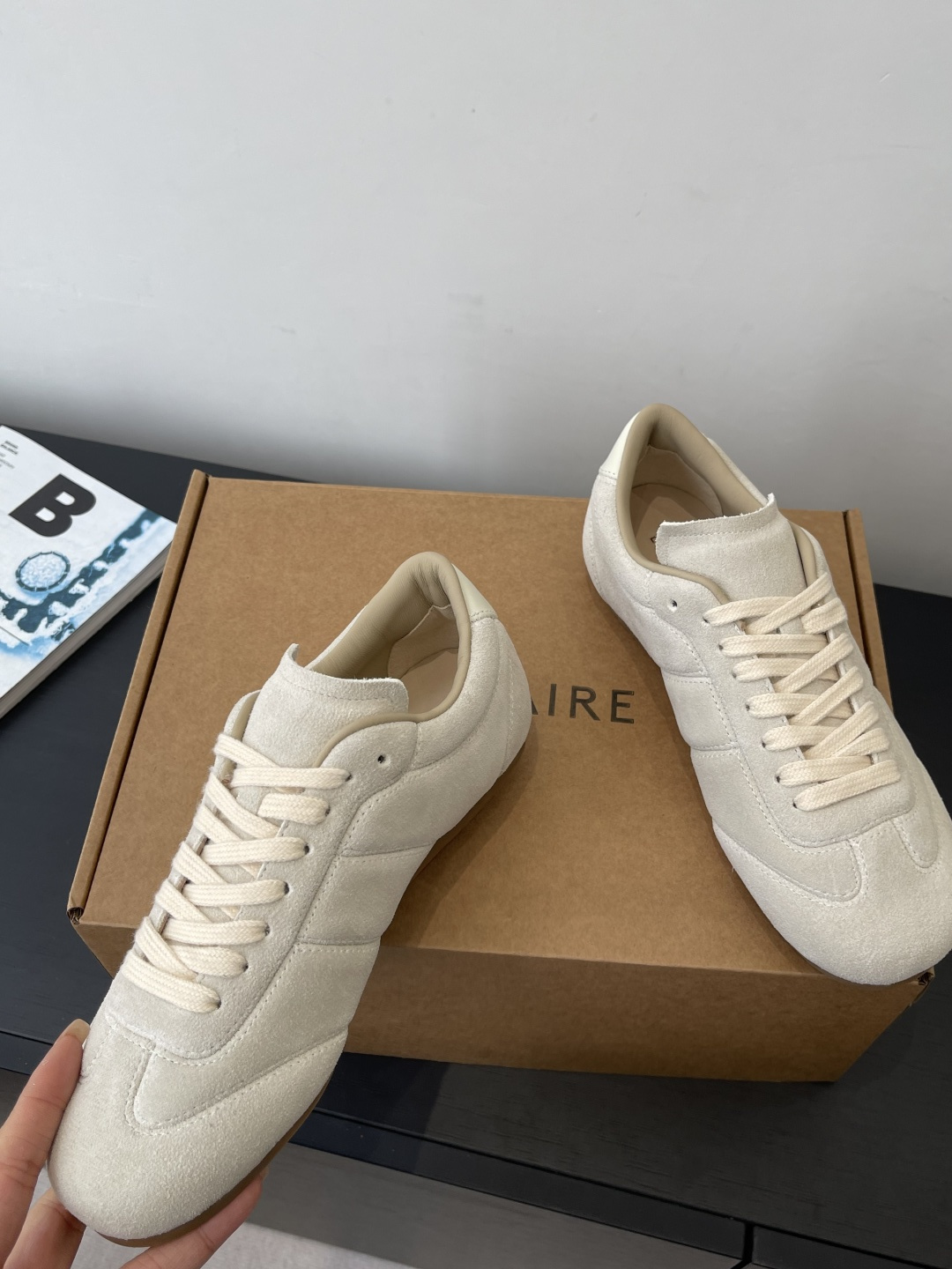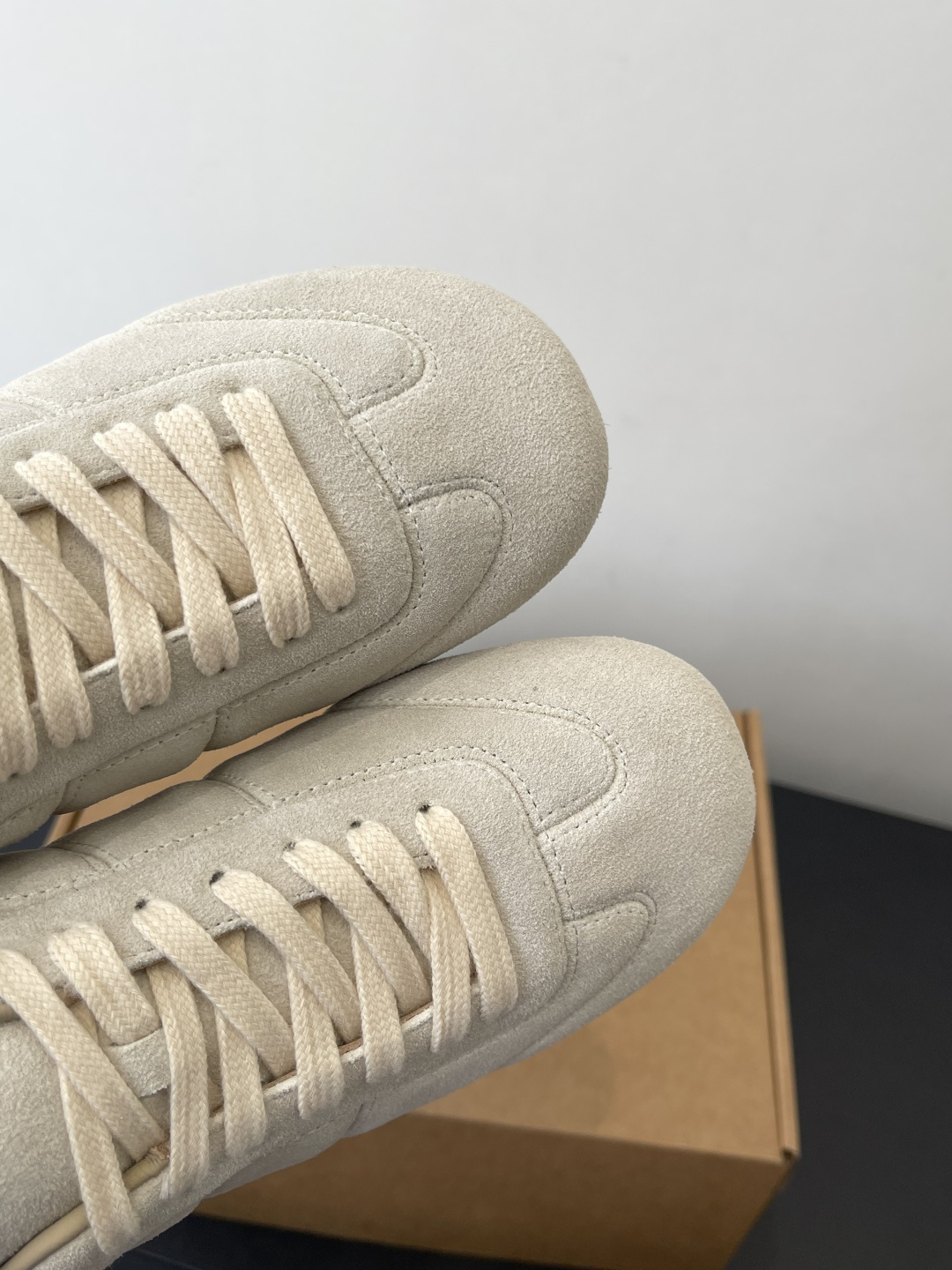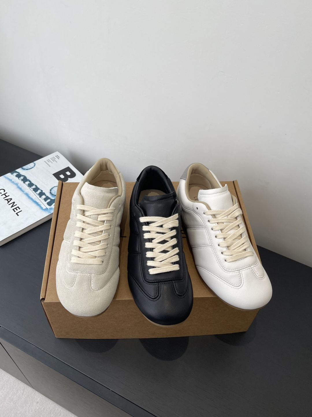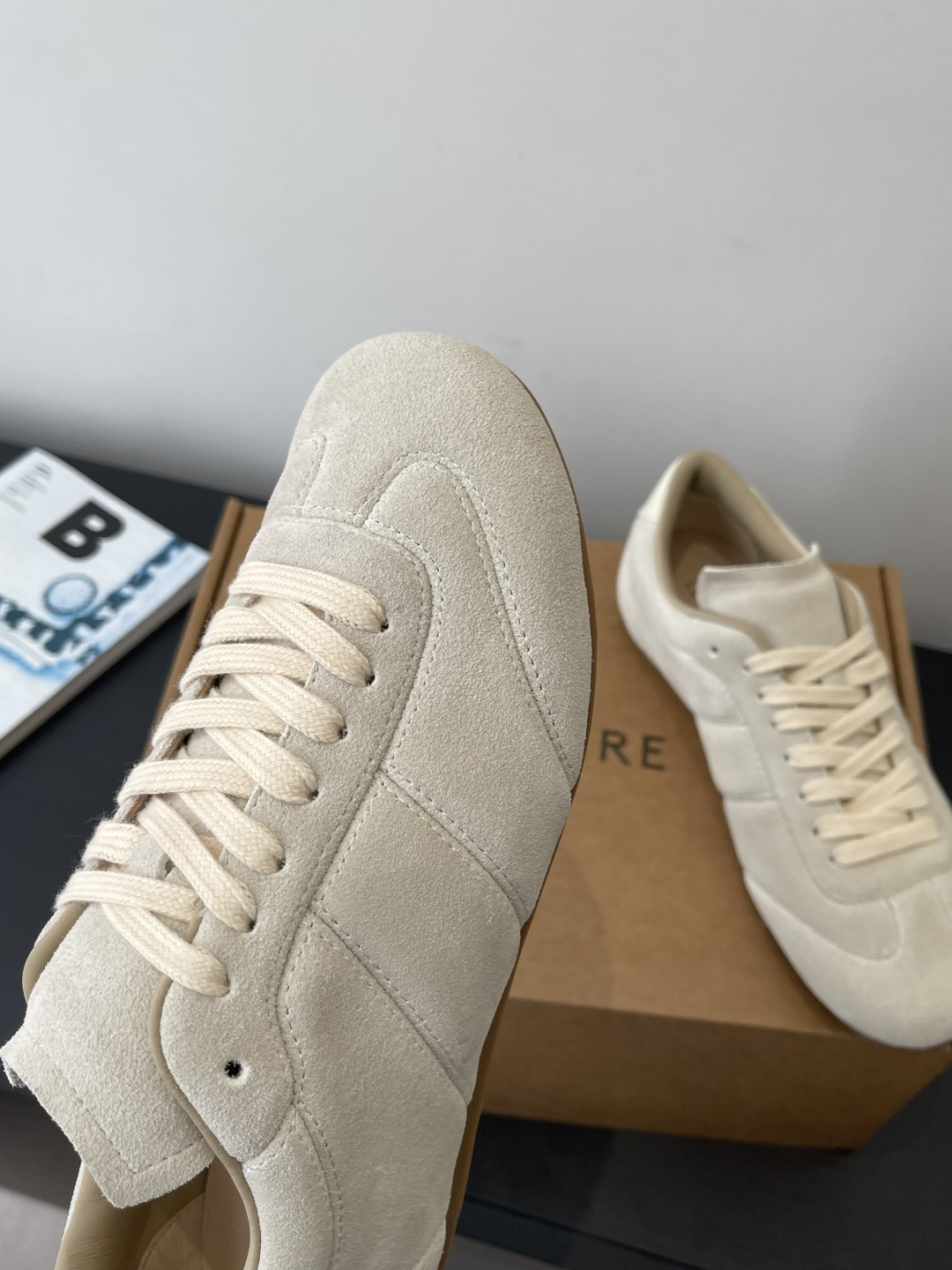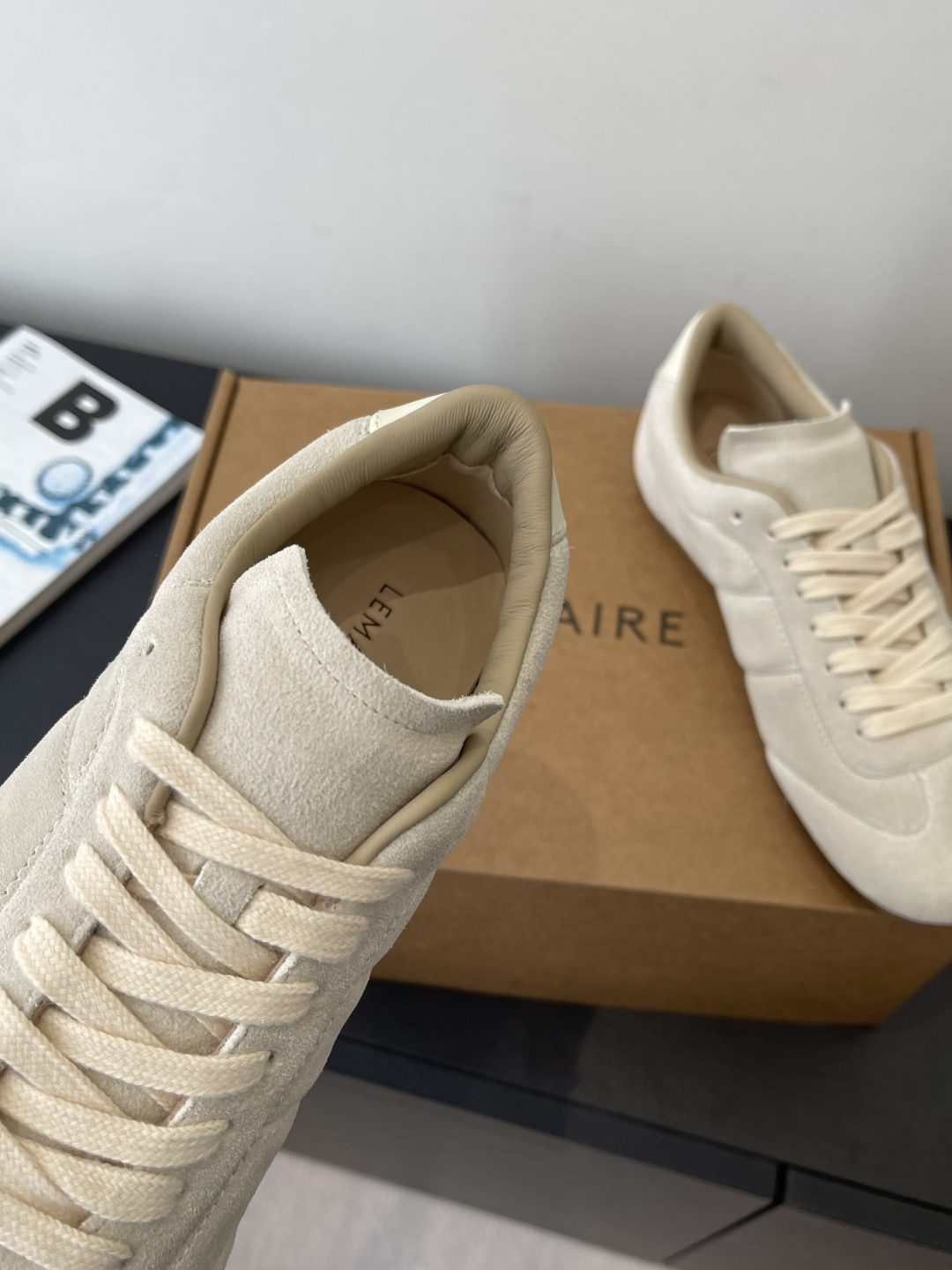 “부드러운 가죽 감촉으로 완성한 르메르 감성의 미니멀 독일군 스니커즈”