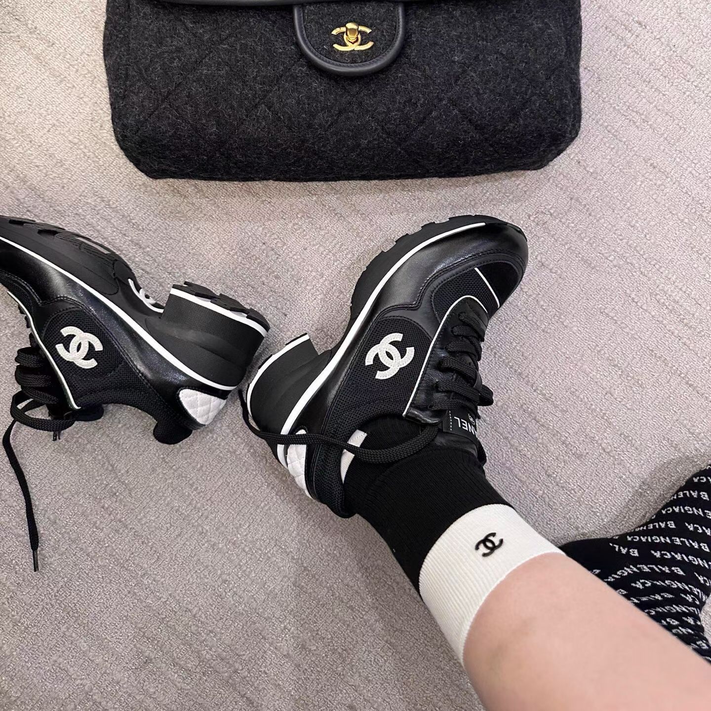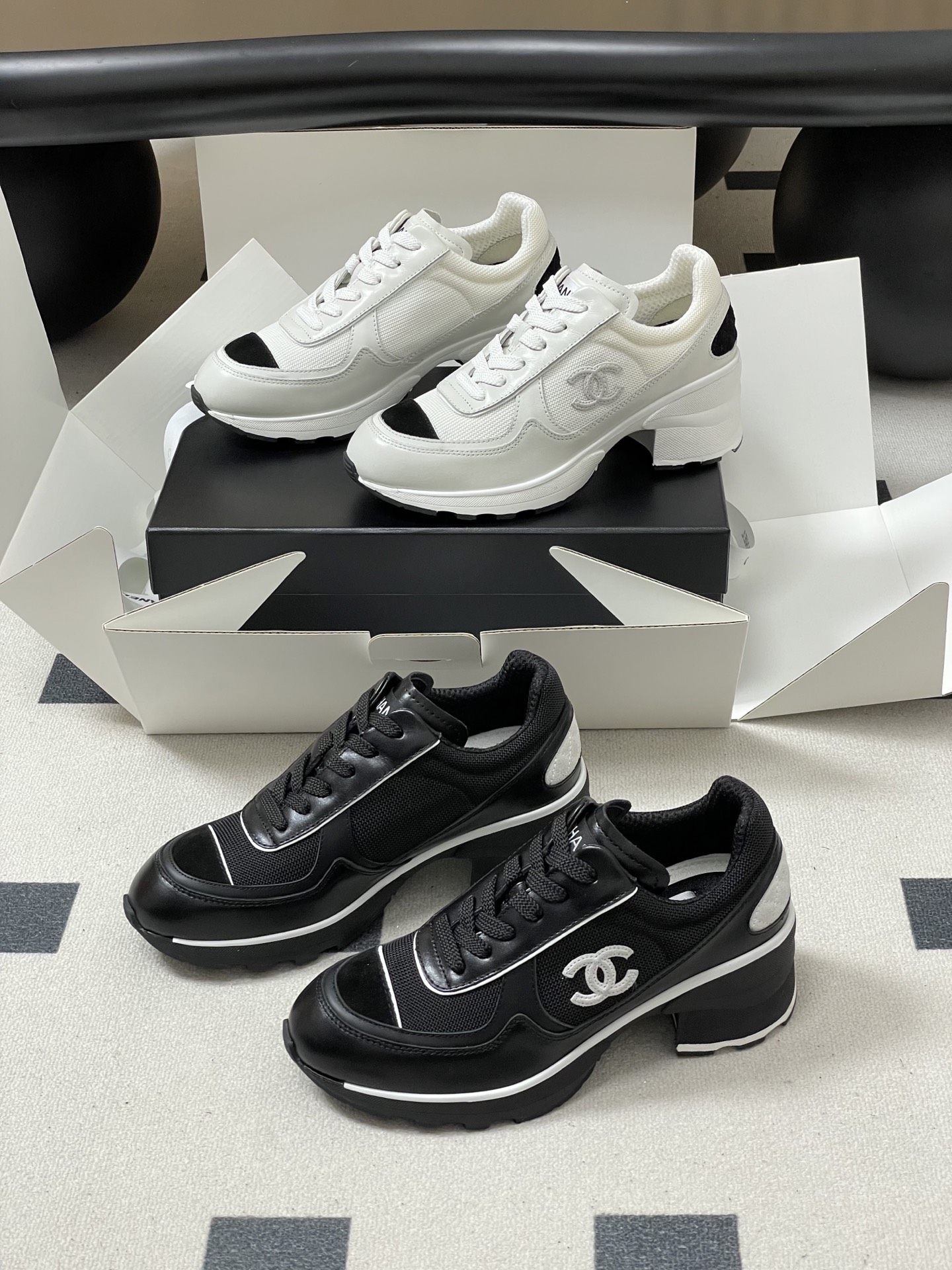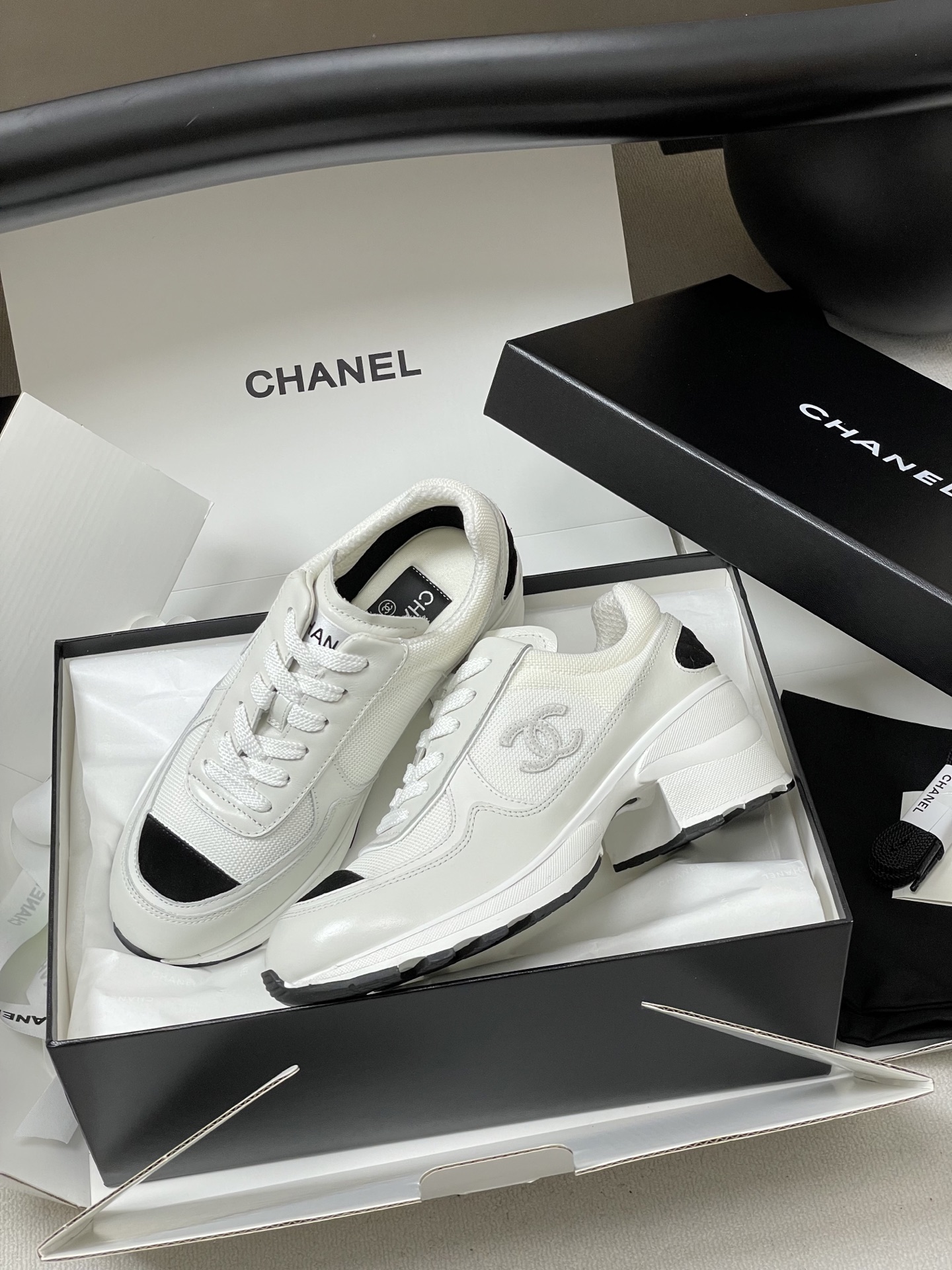 디자인: 클래식 블랙&화이트 배색 + 측면 대형 더블C 로고