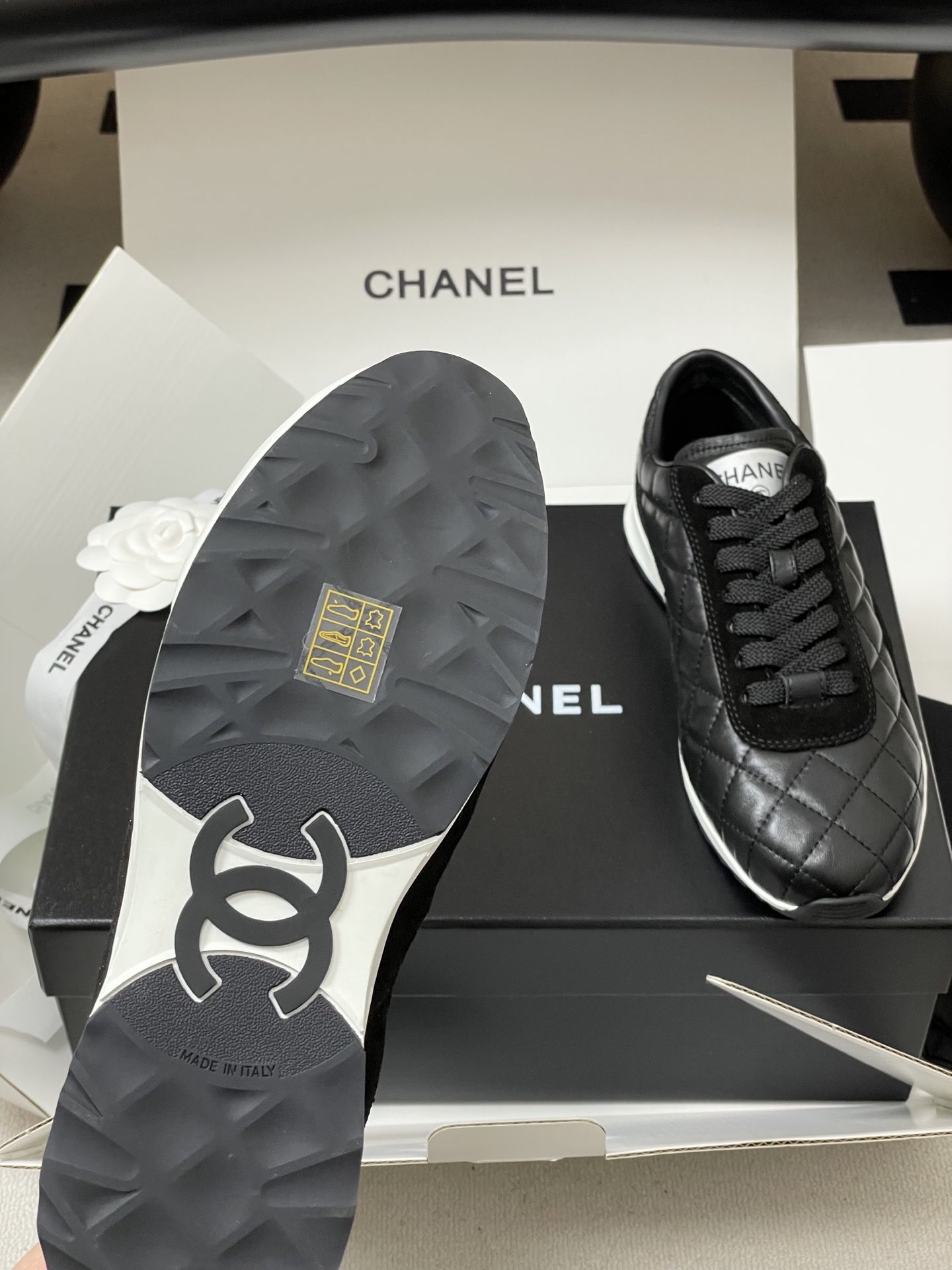 "샤넬의 상징, 퀼팅 자수와 스니커즈의 우아한 만남"
