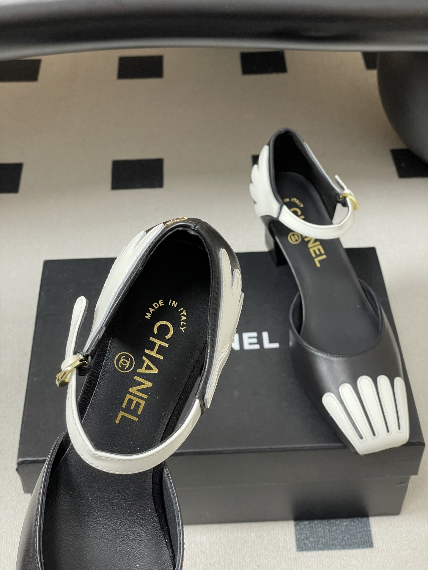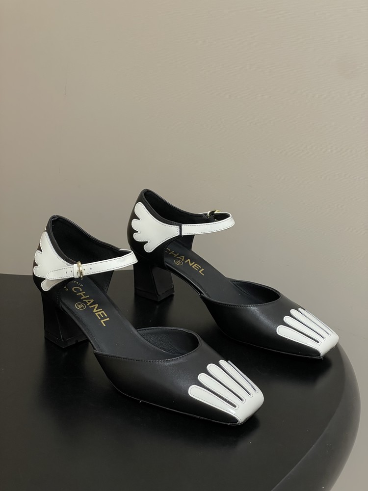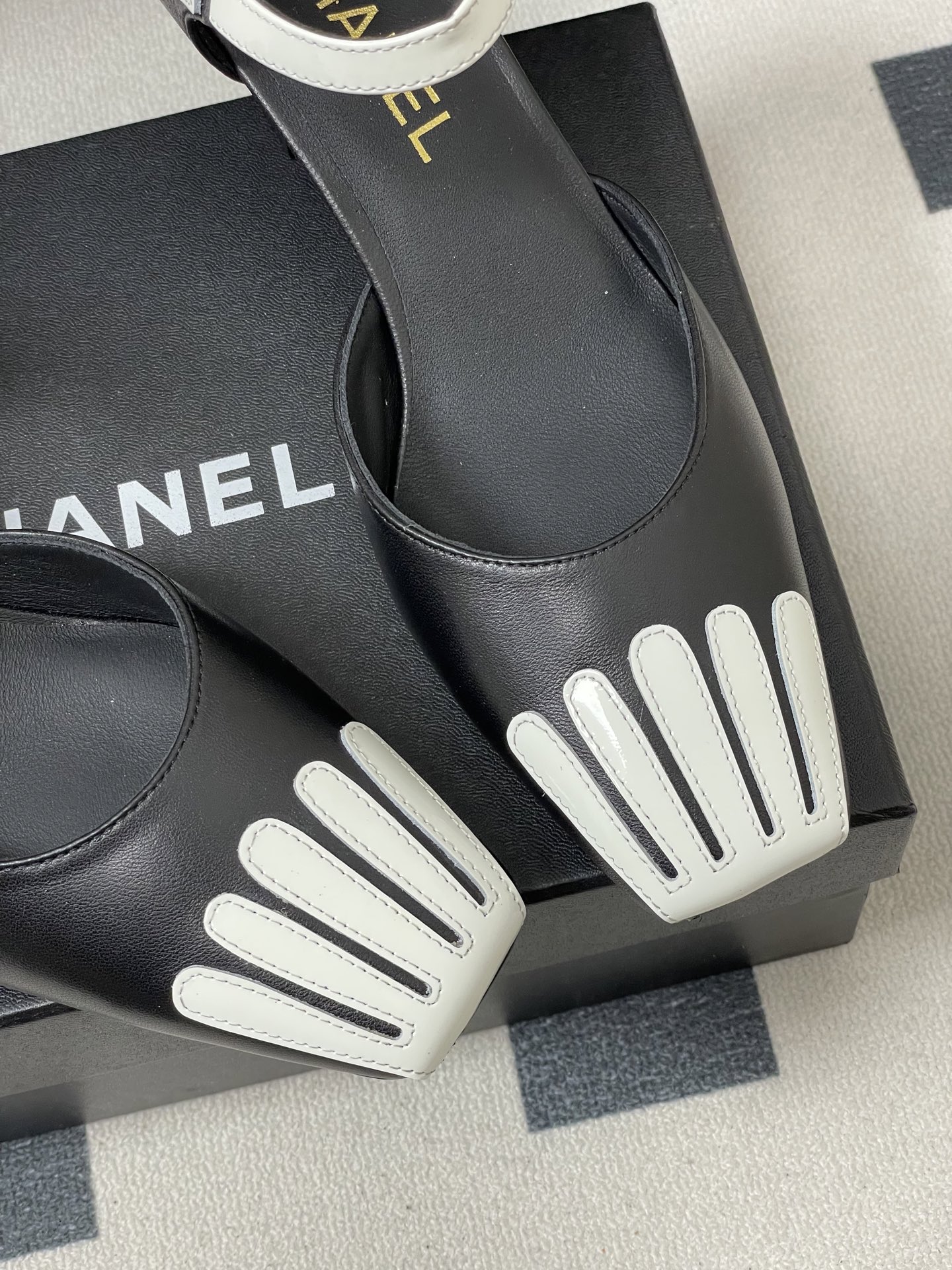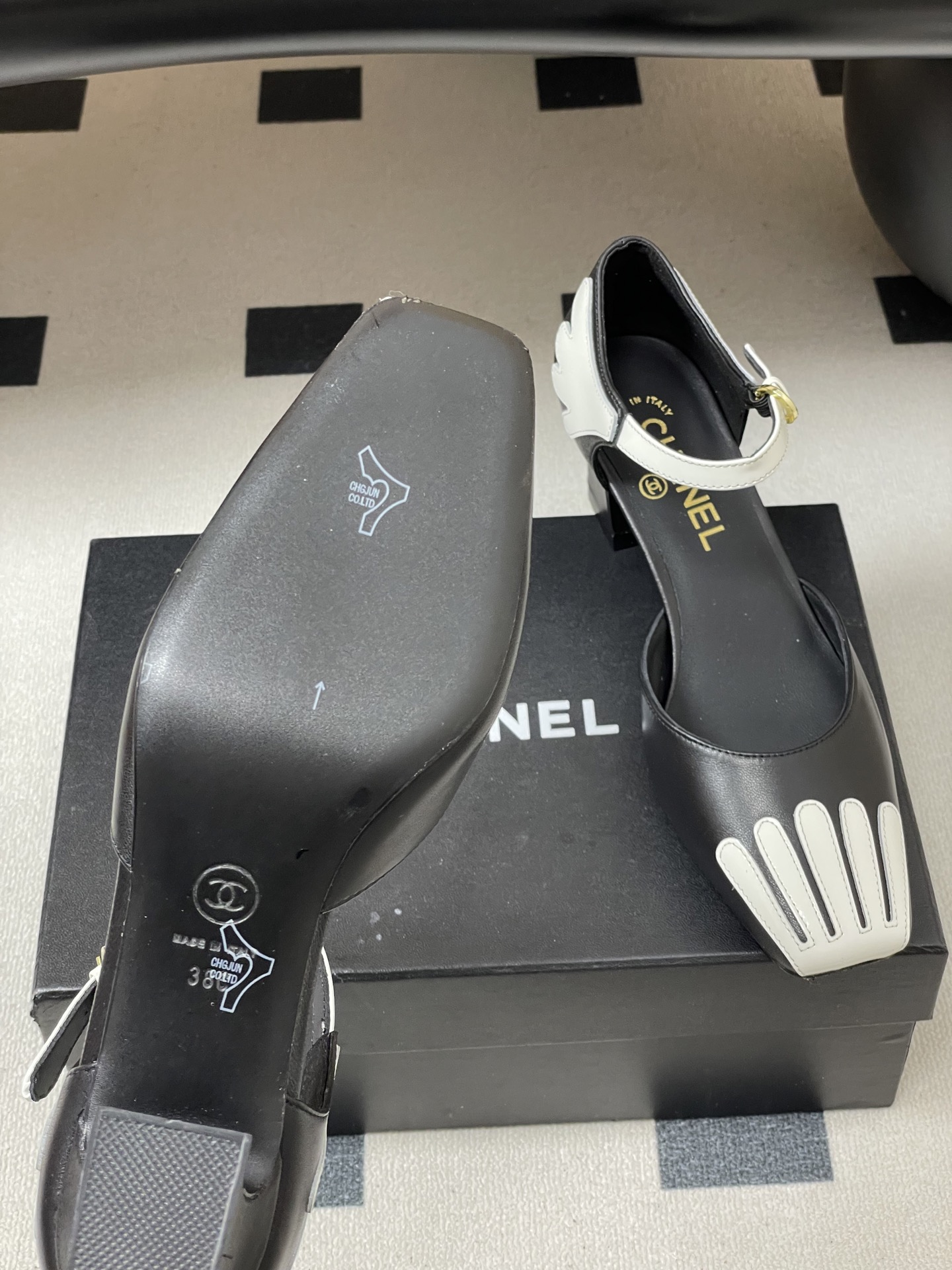 CHANEL 샤넬 미드 힐 스트라이프 뮬 샌들 구두 신발NEWSALE