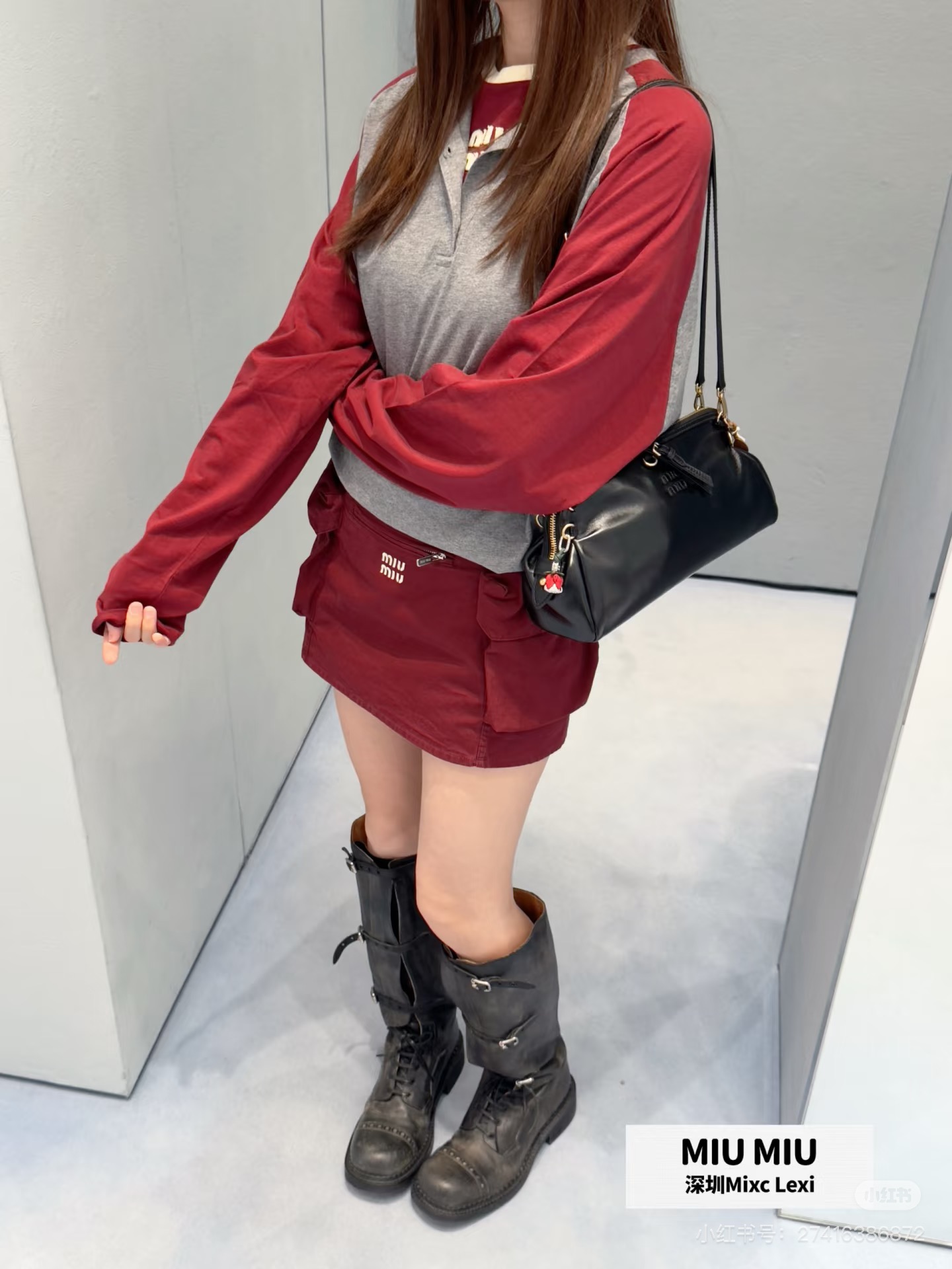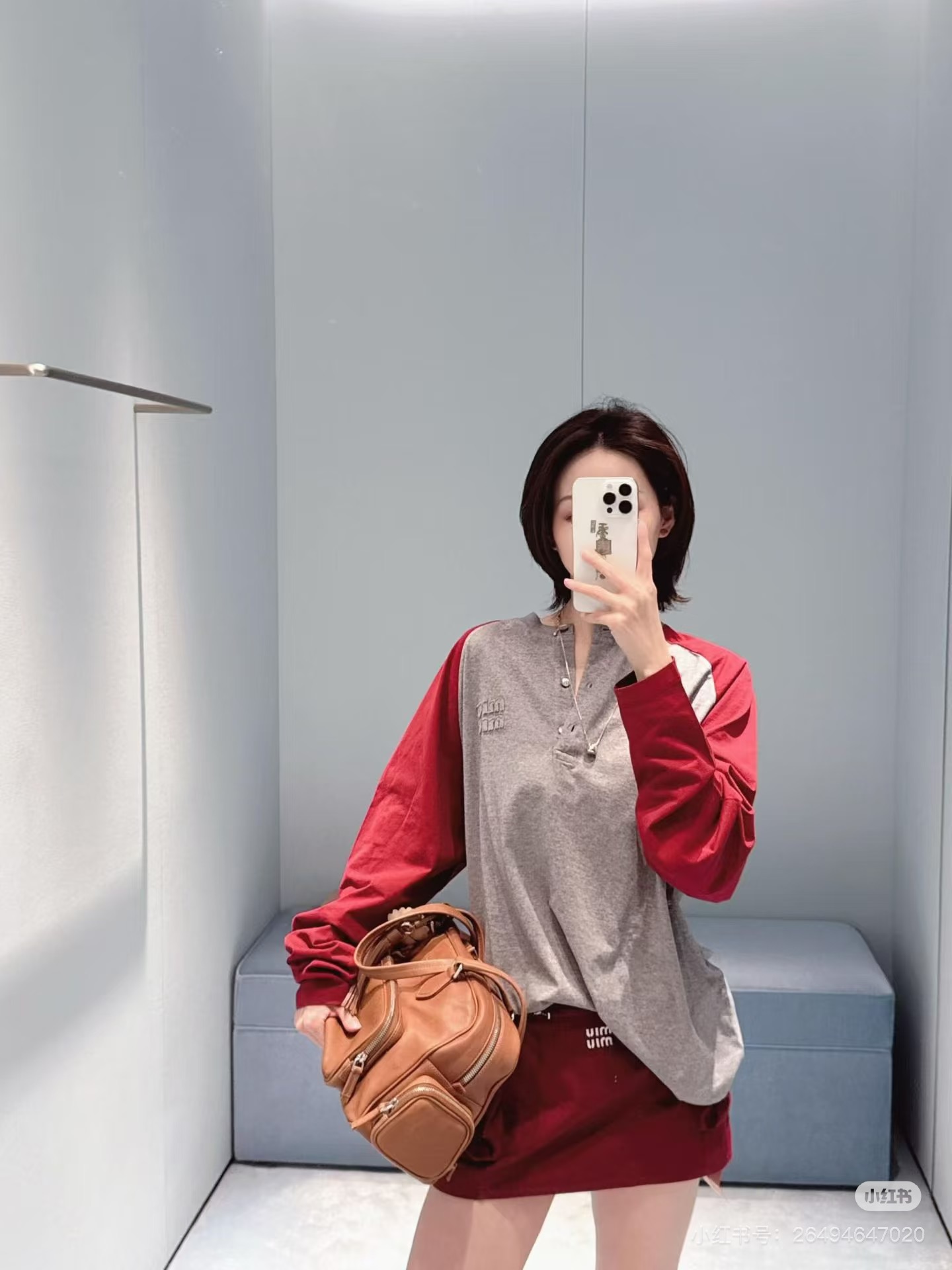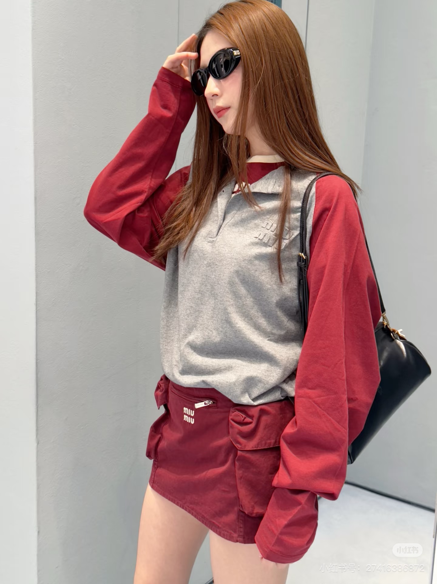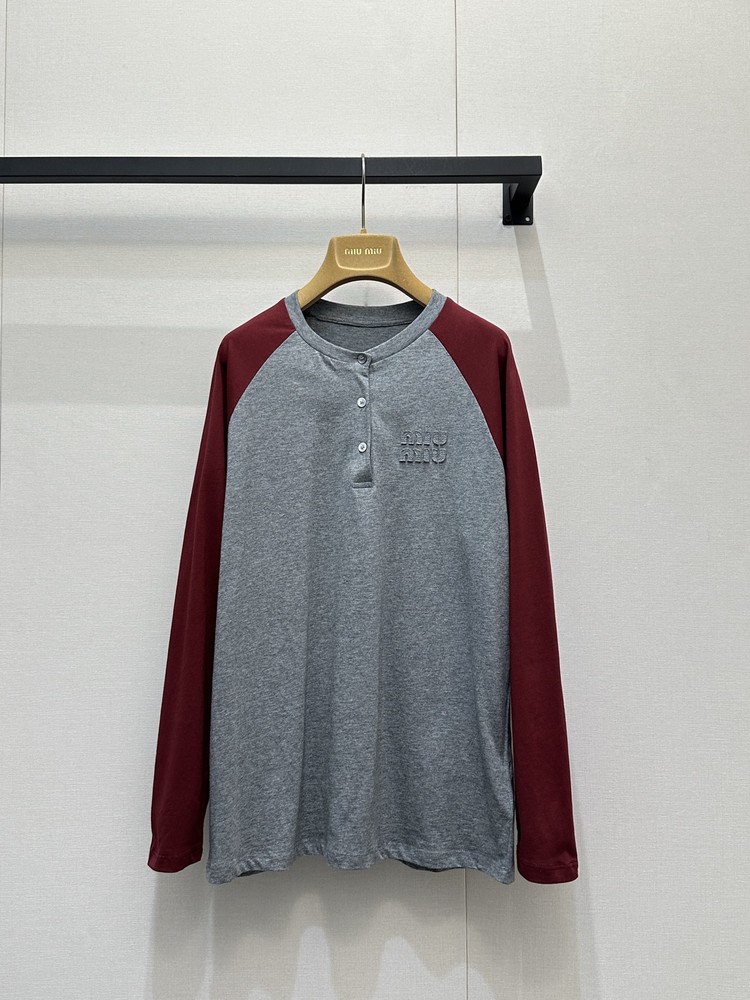 miumiu 미우미 26SS 레트로 래글런 헨리넥 롱슬리브 긴팔 티셔츠 의류SALE