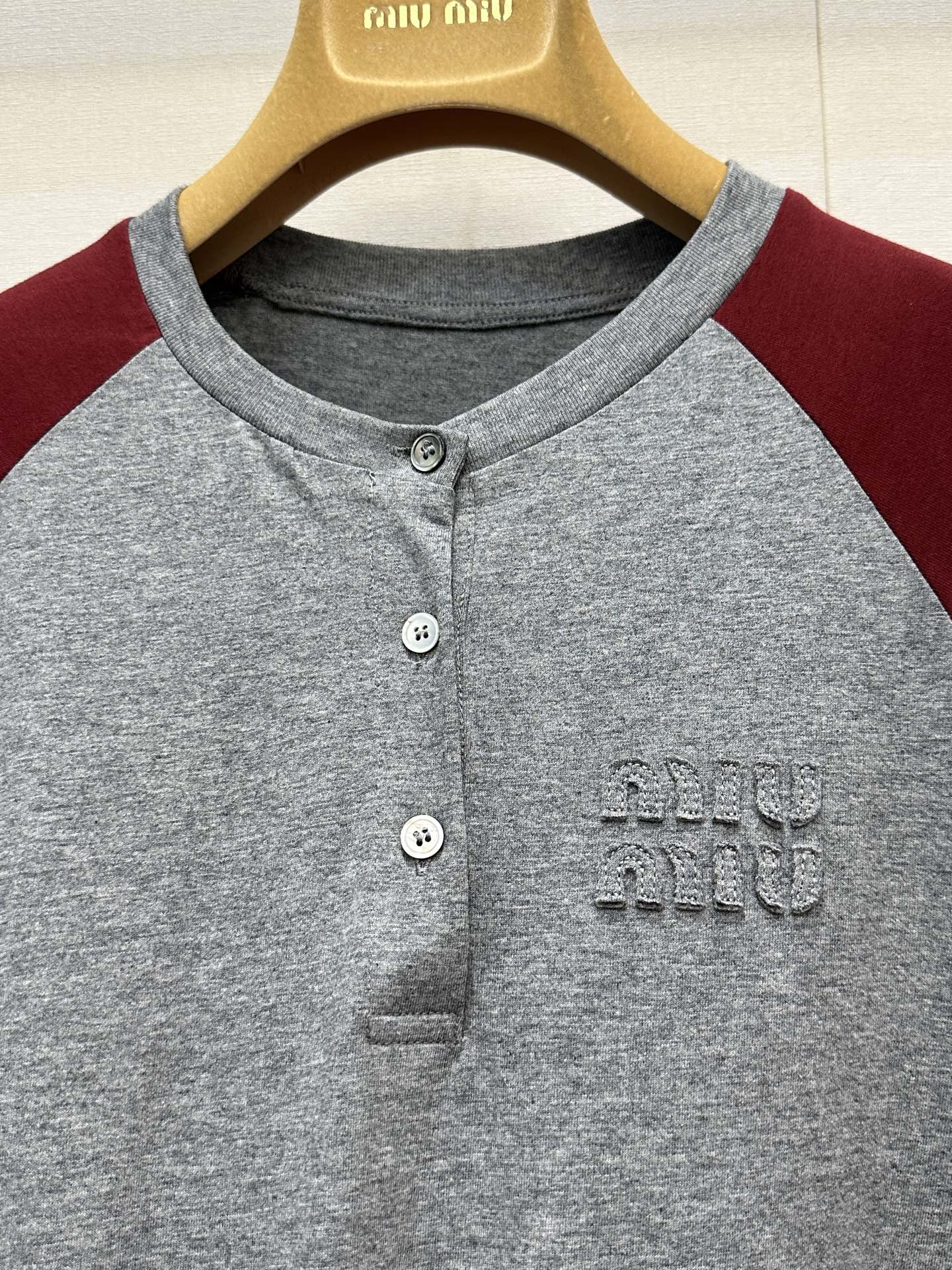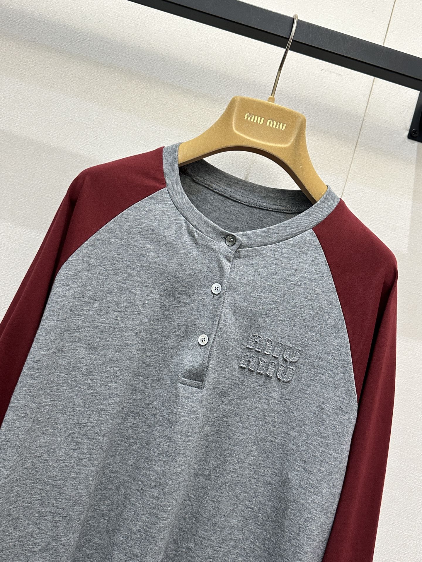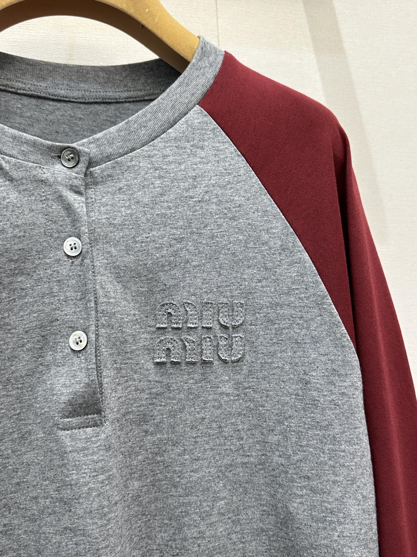 miumiu 미우미 26SS 레트로 래글런 헨리넥 롱슬리브 긴팔 티셔츠 의류