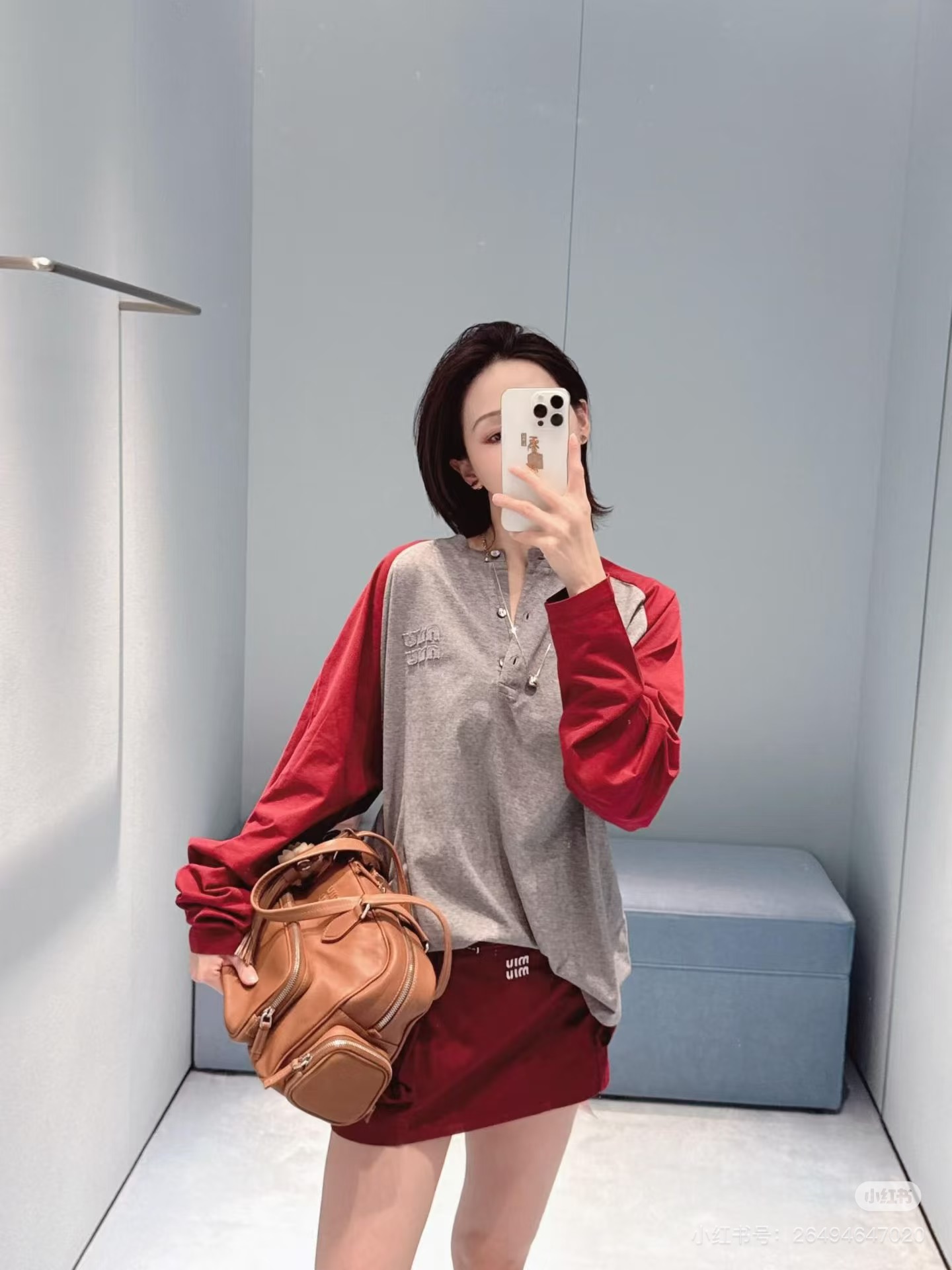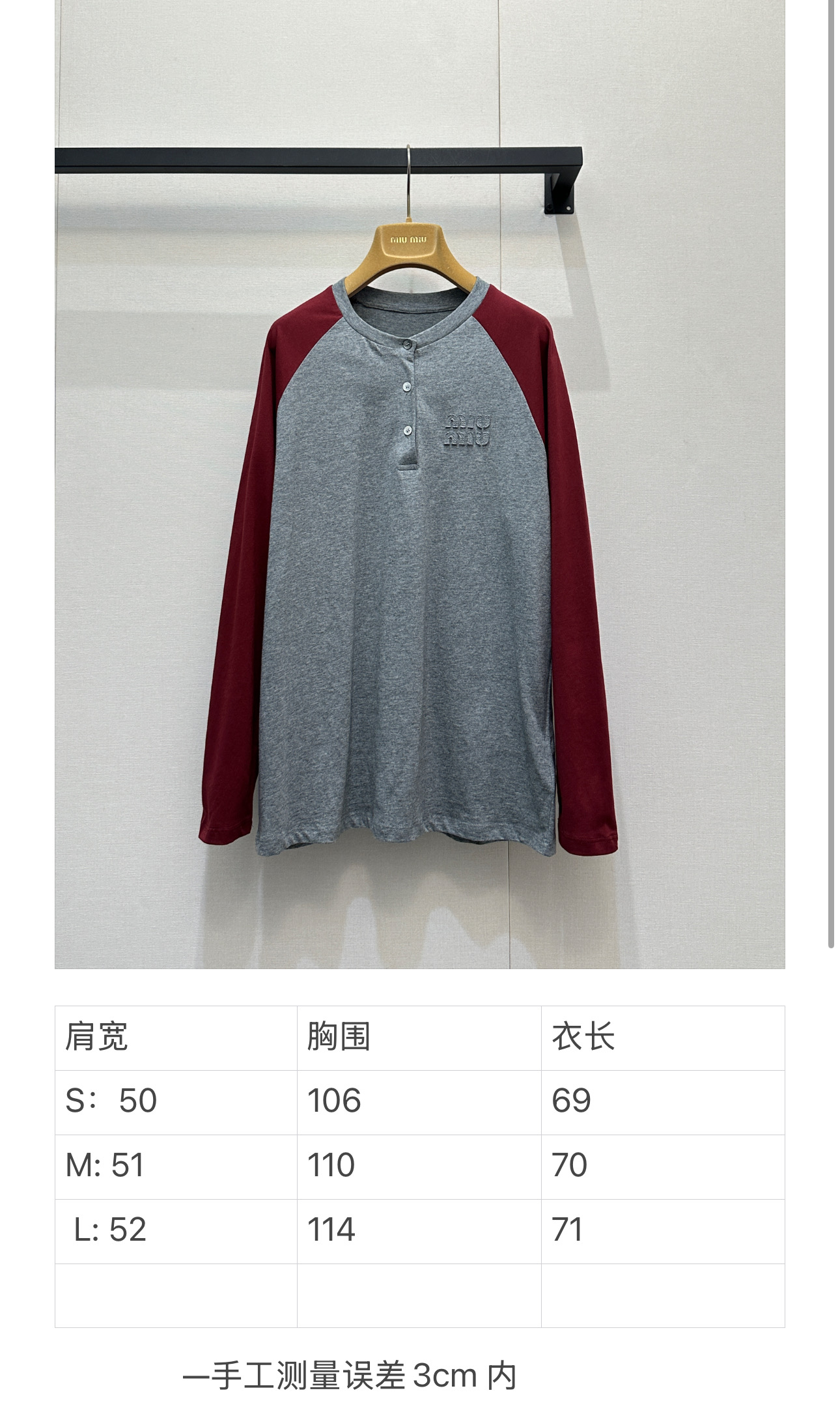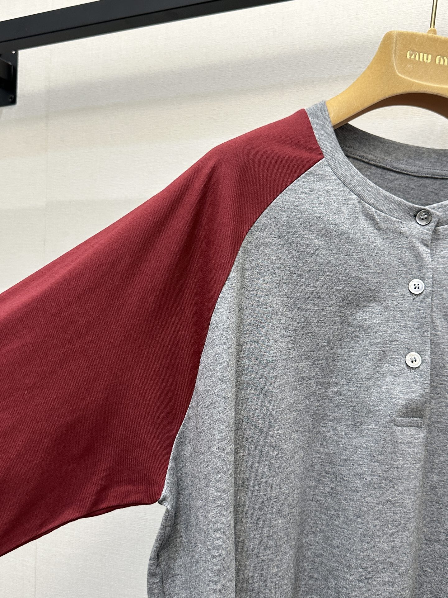 miumiu 미우미 26SS 레트로 래글런 헨리넥 롱슬리브 긴팔 티셔츠 의류