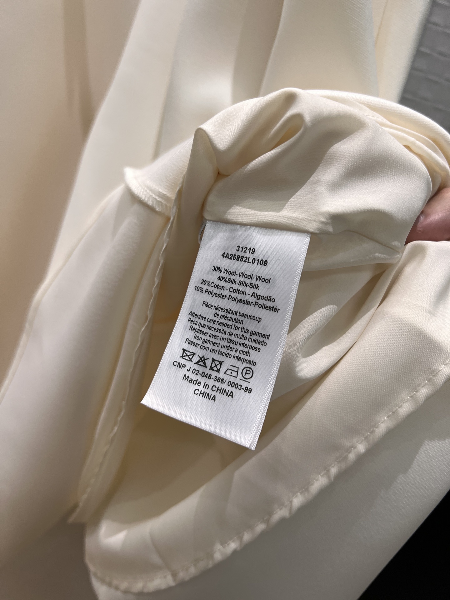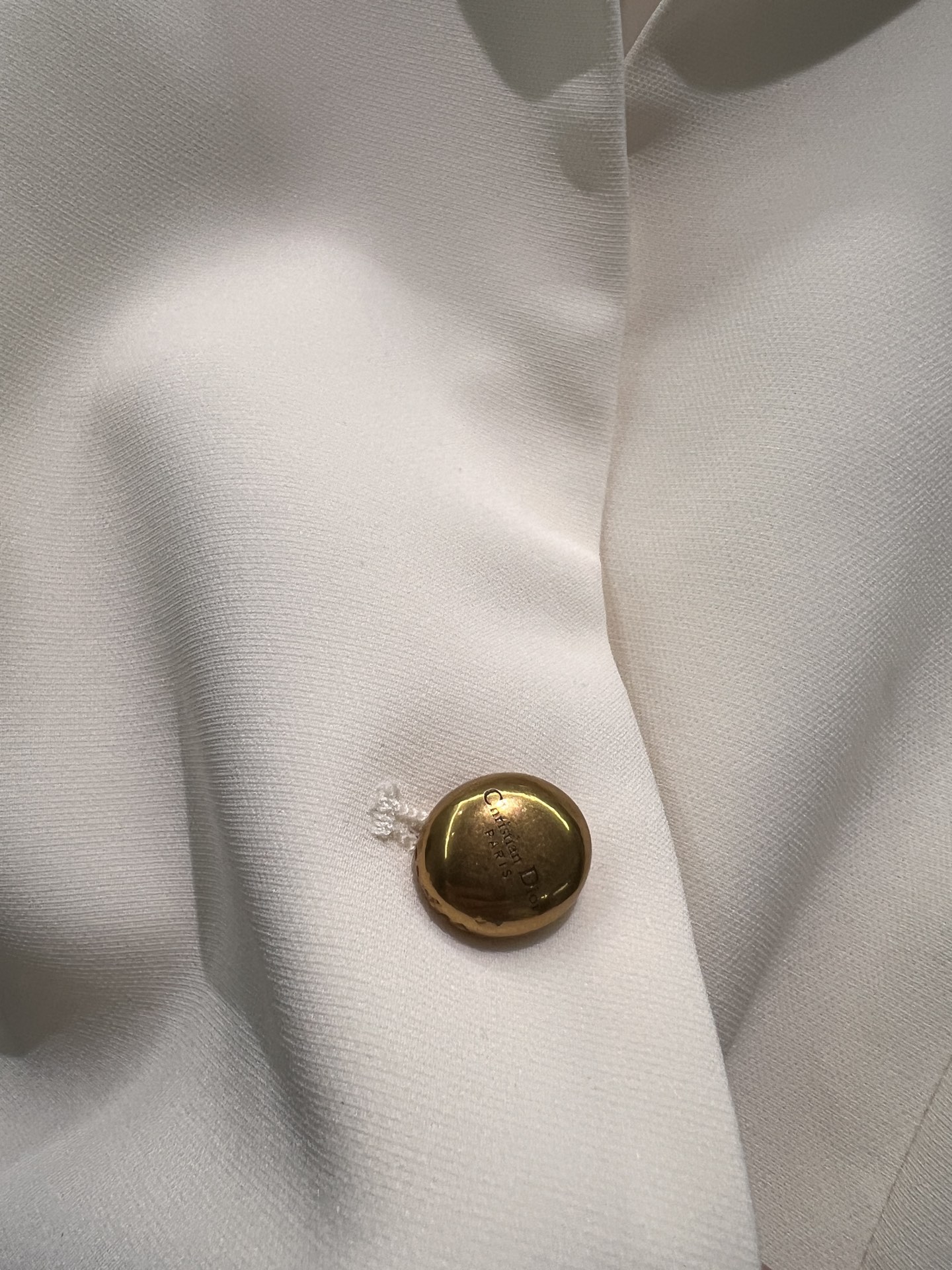 디테일: 넥라인에 정교한 CD 금장 단추 포인트 + 똑딱이 암구조 추가로 노출 부담 없이 착용 가능