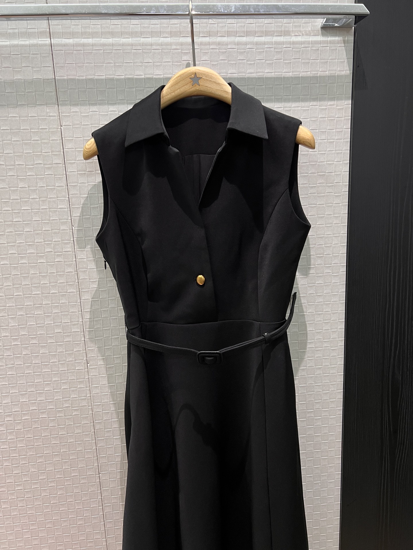 디자인: 세련된 칼라(Polo Collar) 디자인과 아찔한 딥 V넥이 조화로운 민소매 원피스