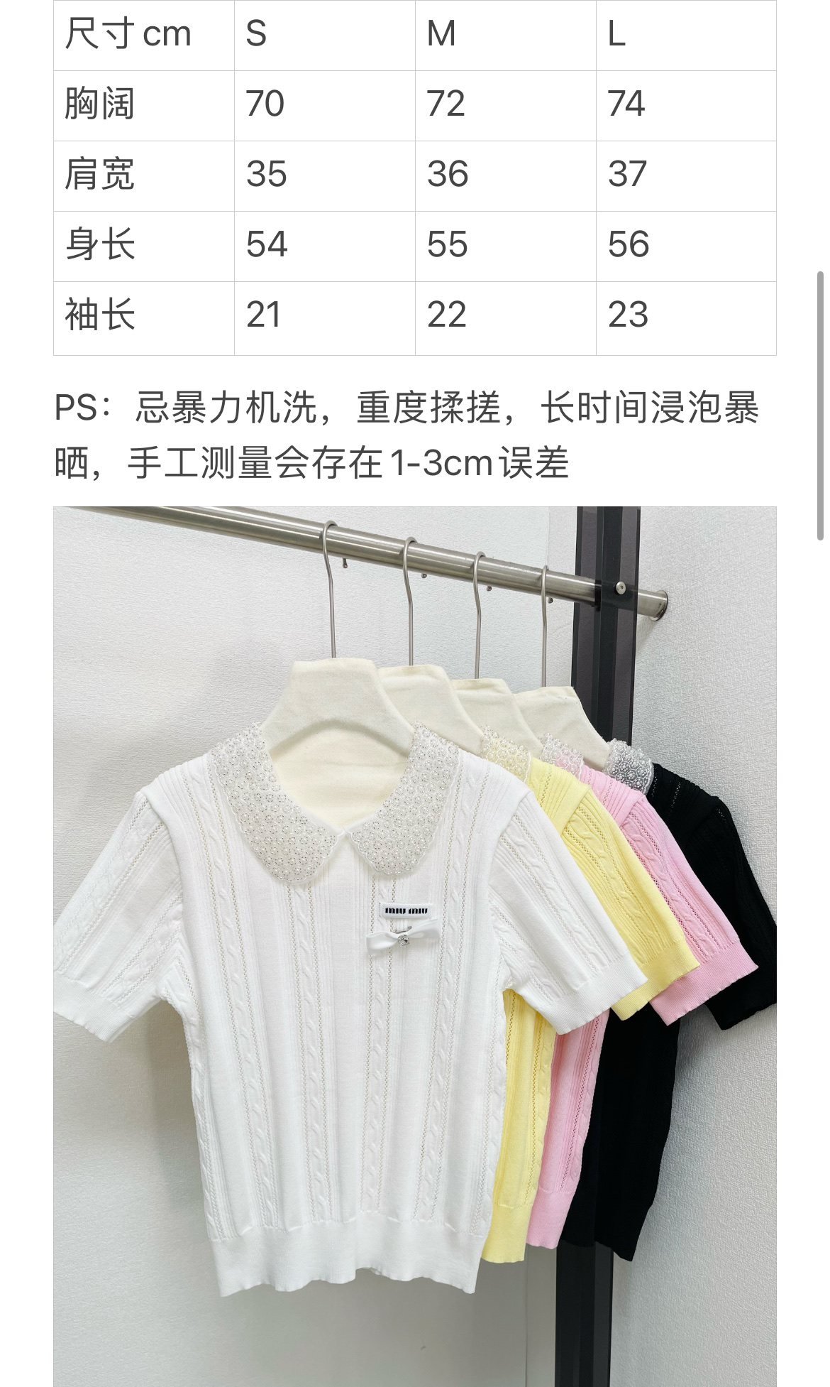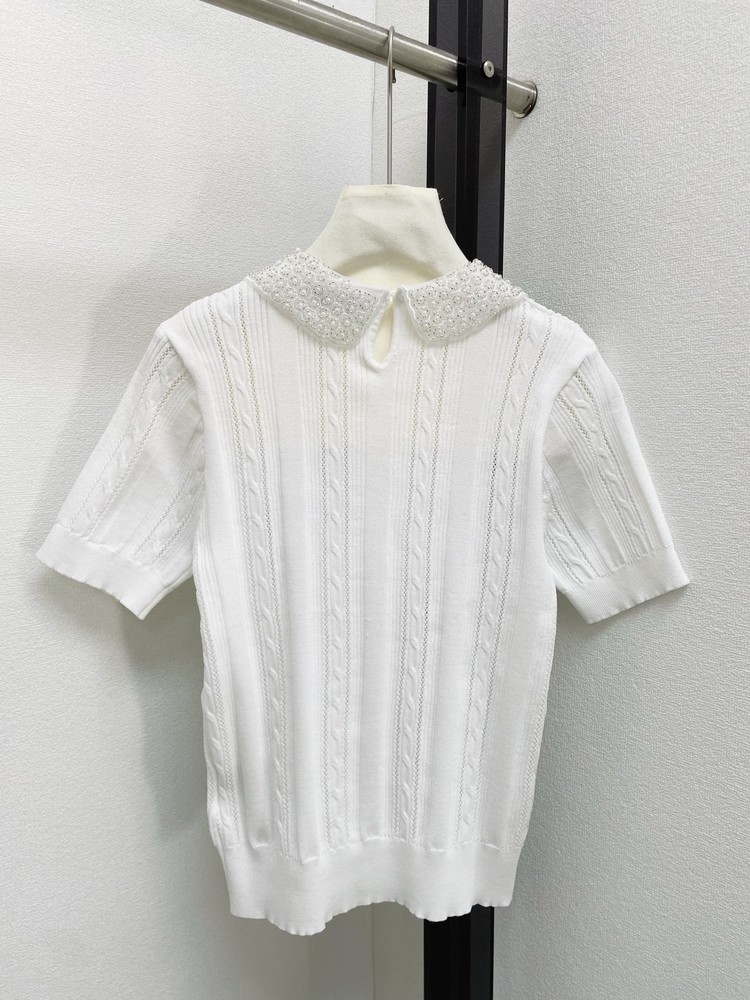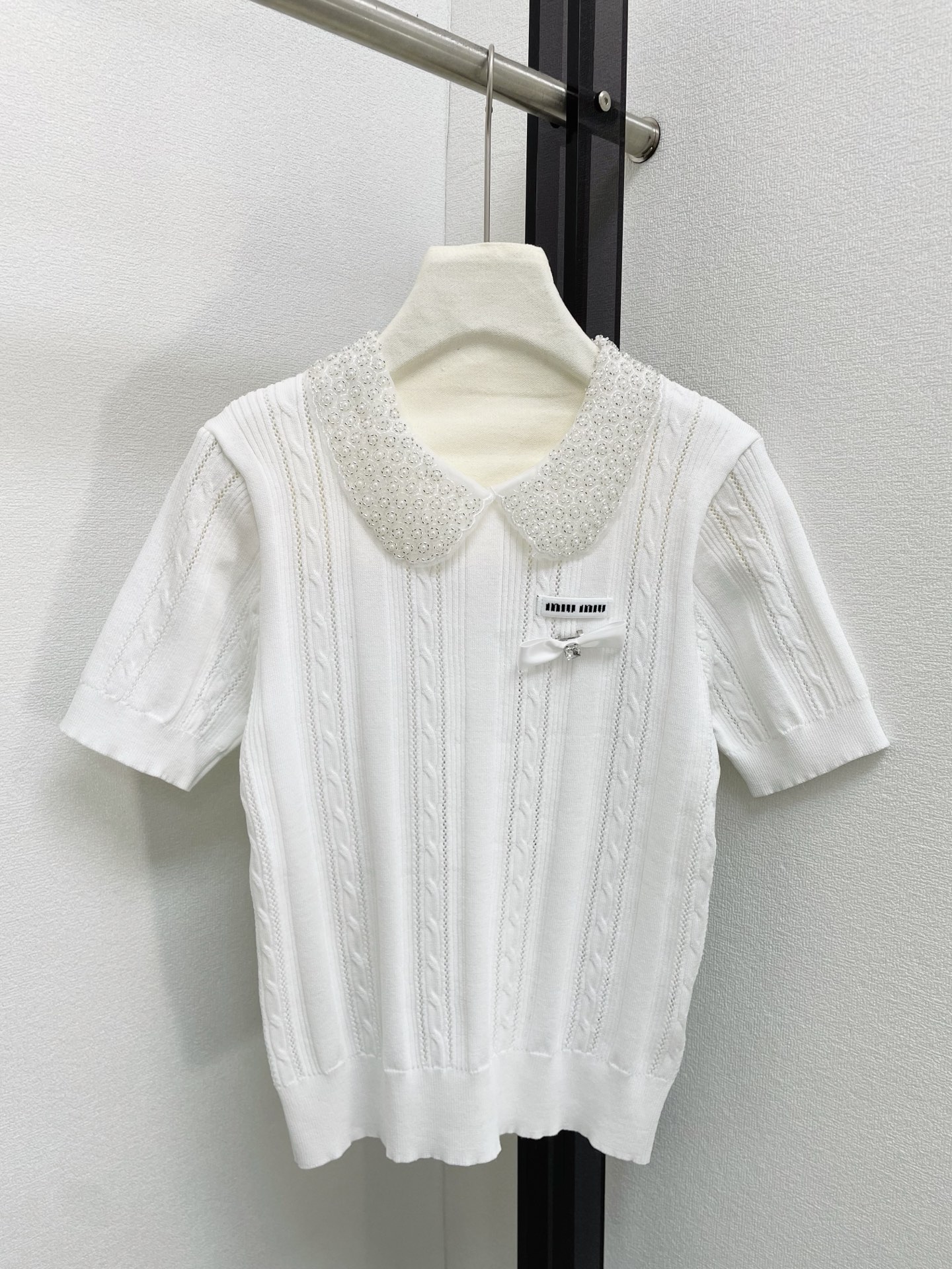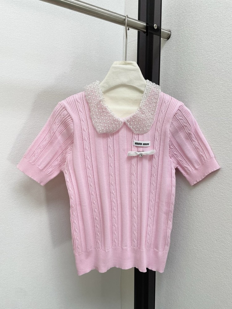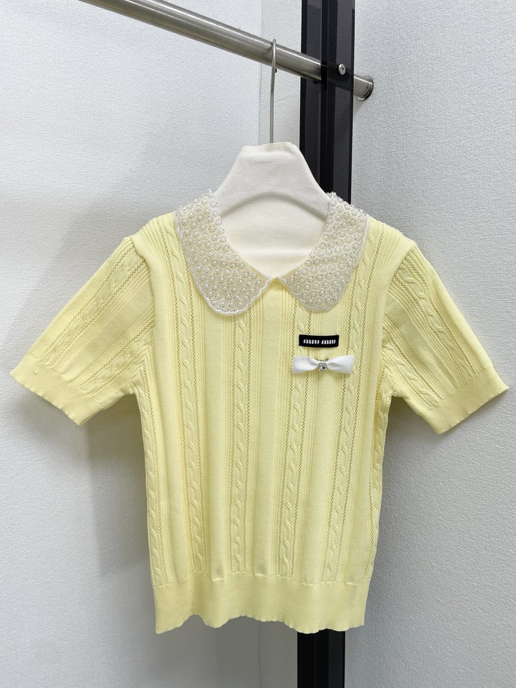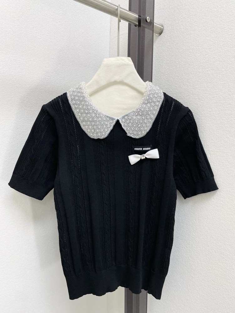 miumiu 미우미우 26SS 클래식 케이블 쥬얼 리본 카라 반팔 니트 의류NEWSALE