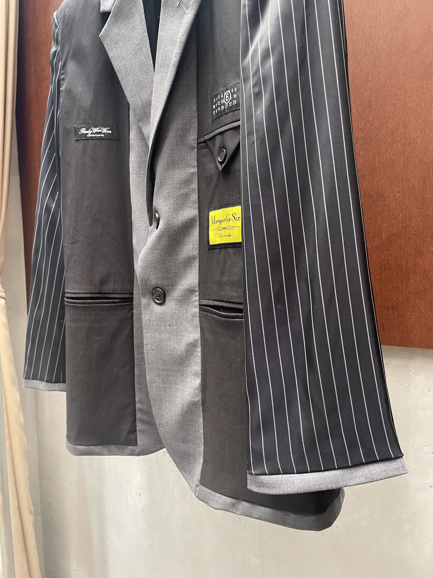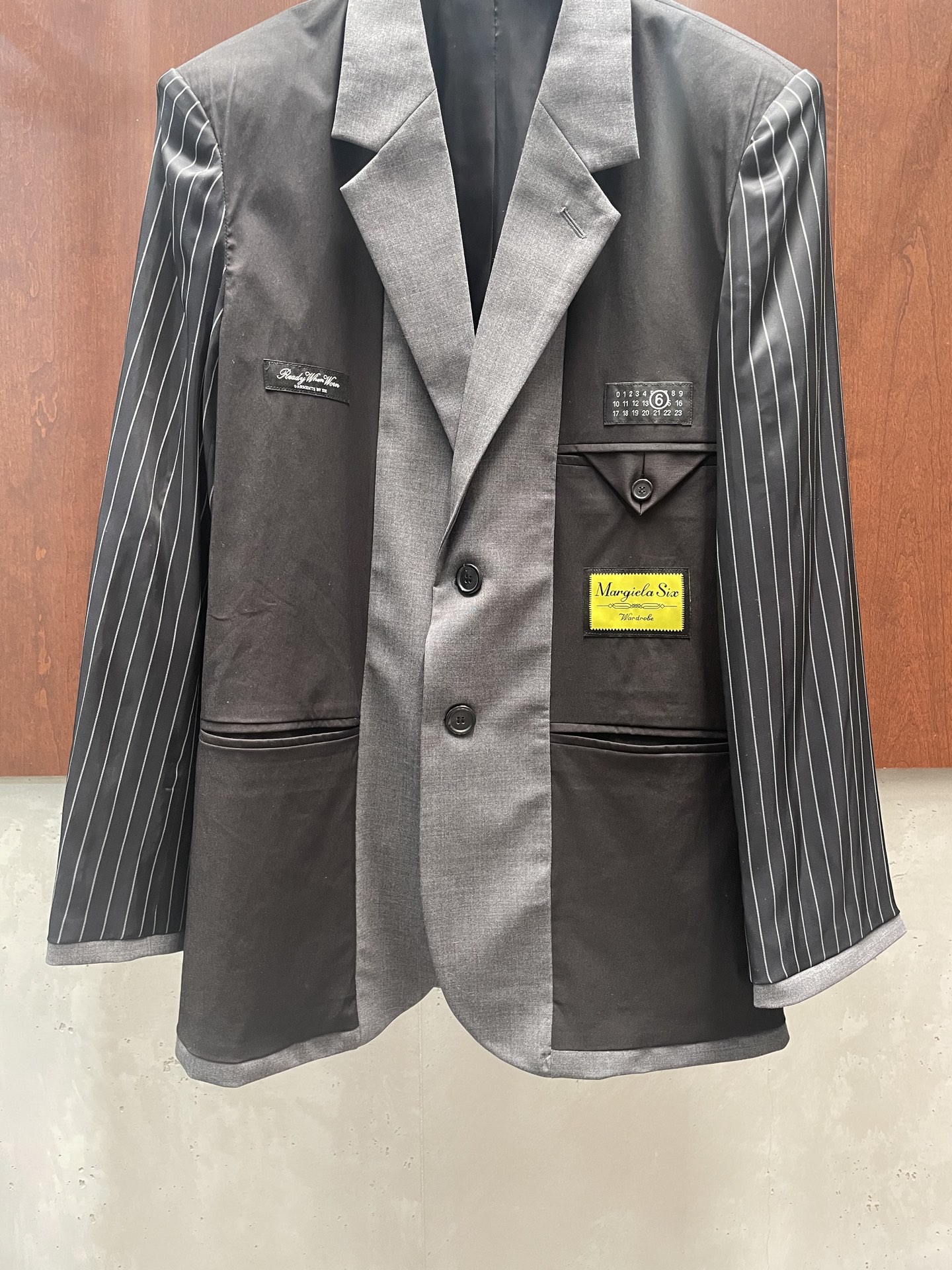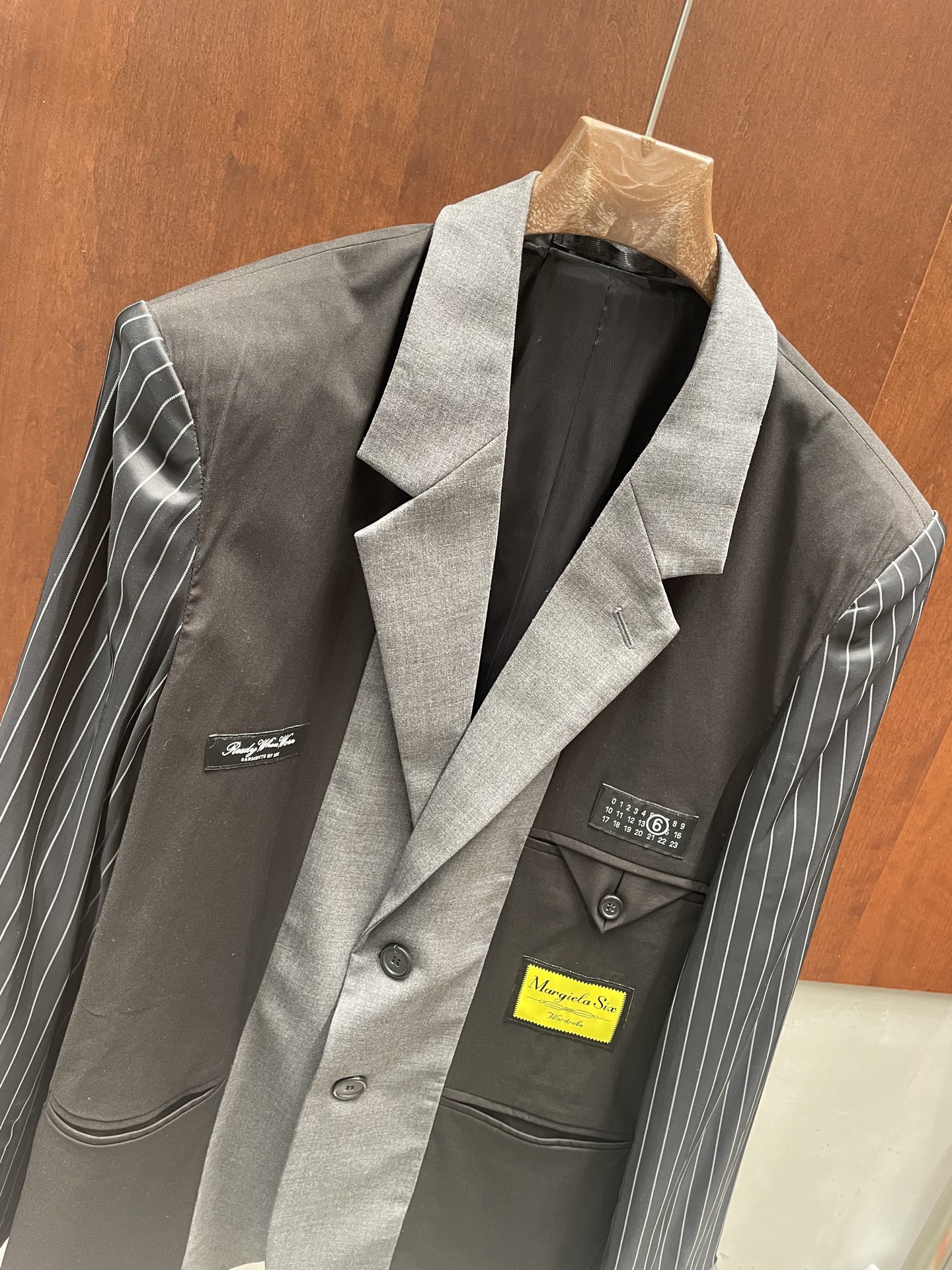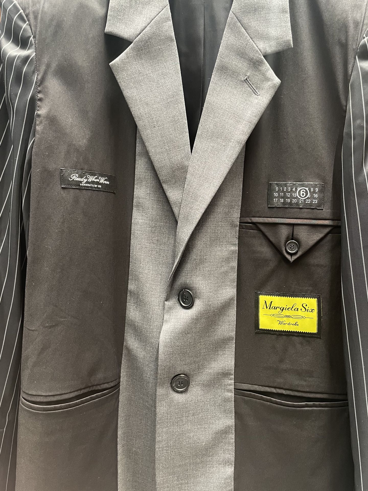 디테일: 서로 다른 면을 이어 붙인 패치워크와 마르지엘라 고유의 숫자 라벨 포인트