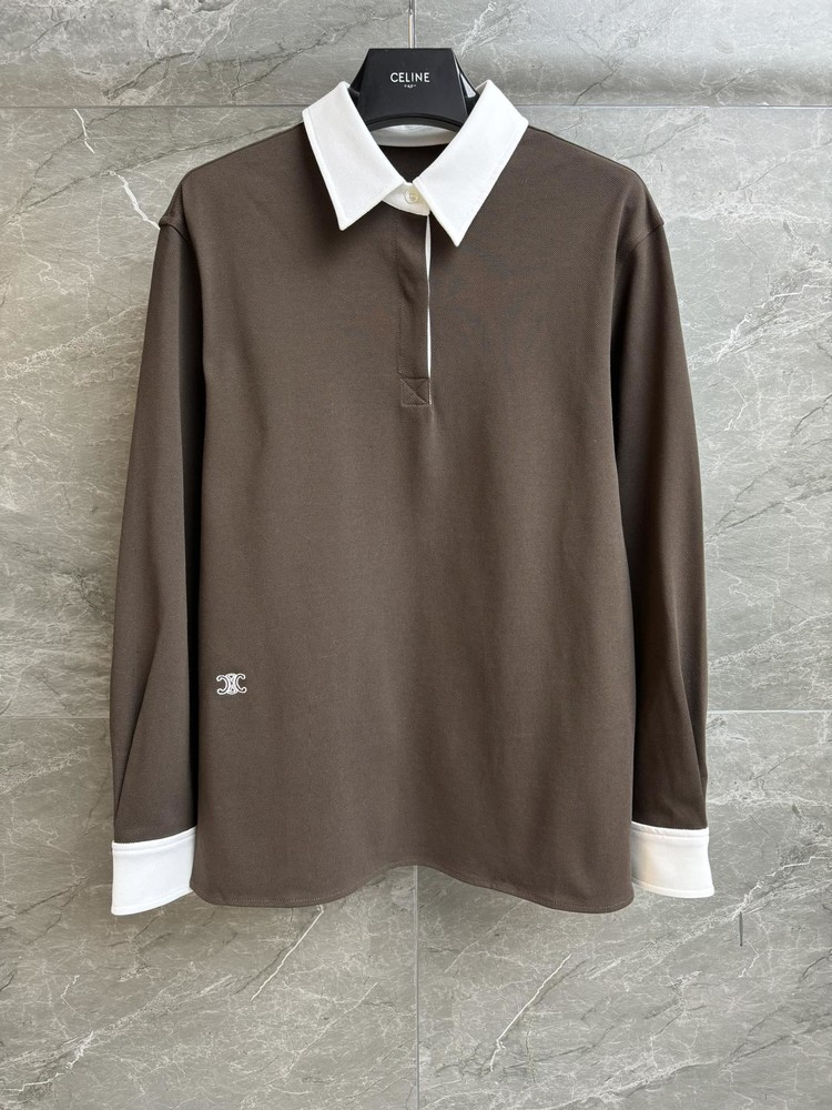 Celine 셀린느 배색 자수 폴로 카라 긴팔 티셔츠 의류