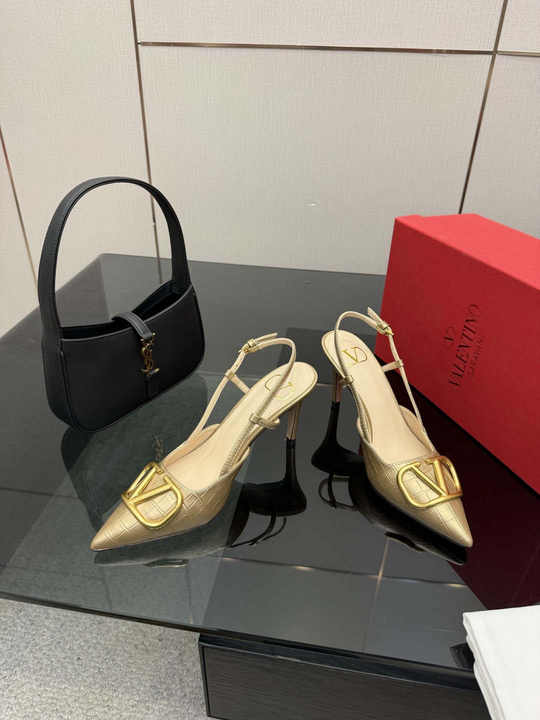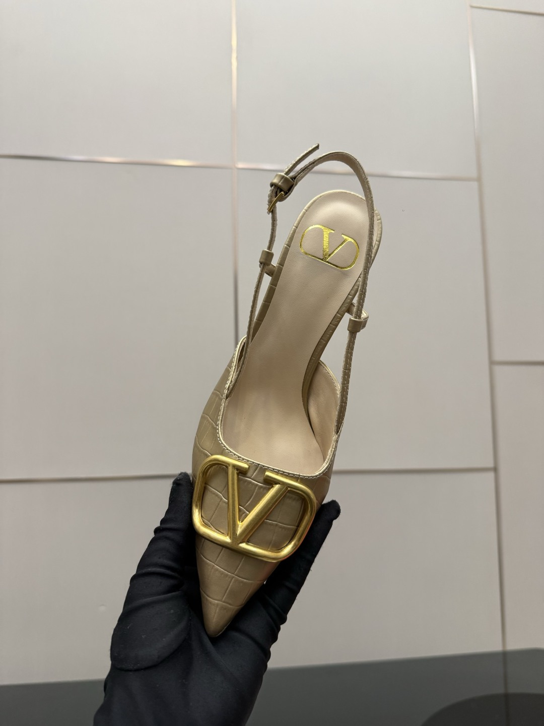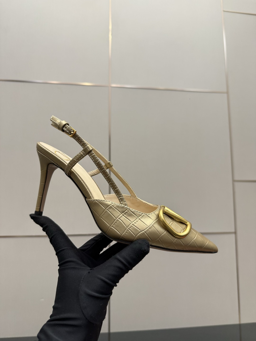 "슬링백 스트랩과 미니 리본 디테일로 우아함과 단정함을 동시에 담은 디자인"