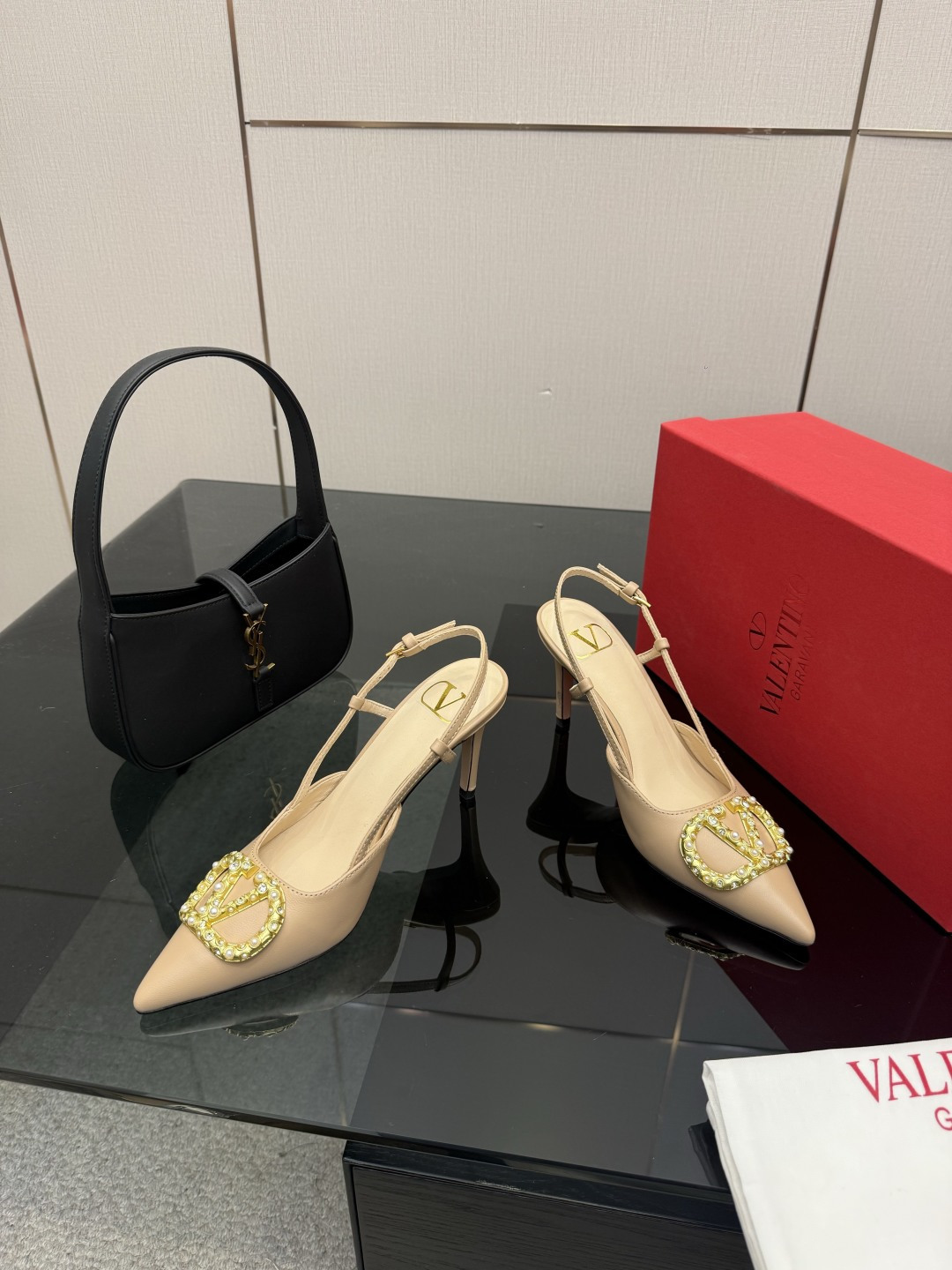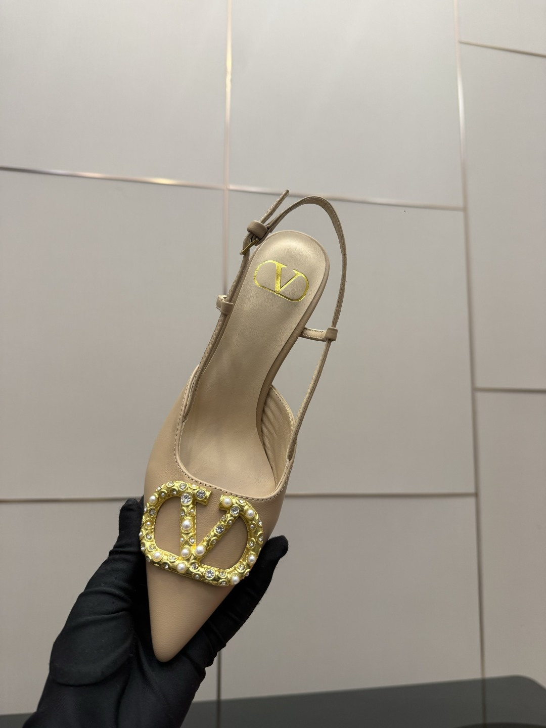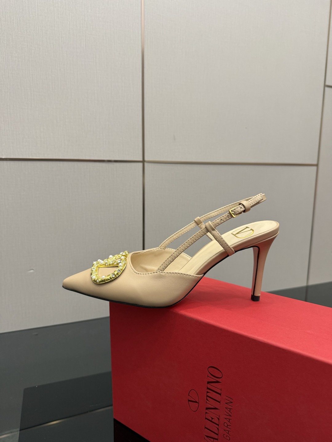 "슬링백 스트랩과 미니 리본 디테일로 우아함과 단정함을 동시에 담은 디자인"