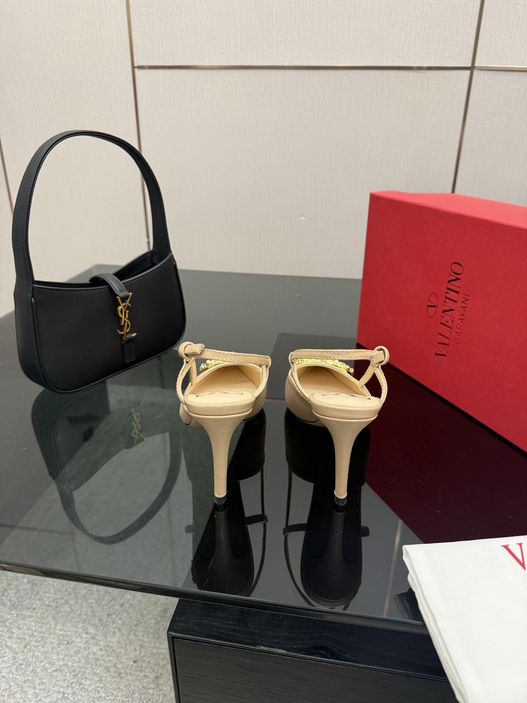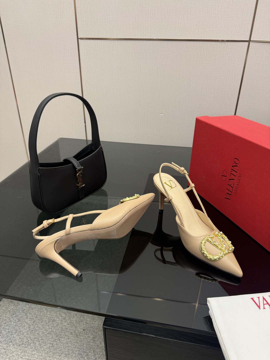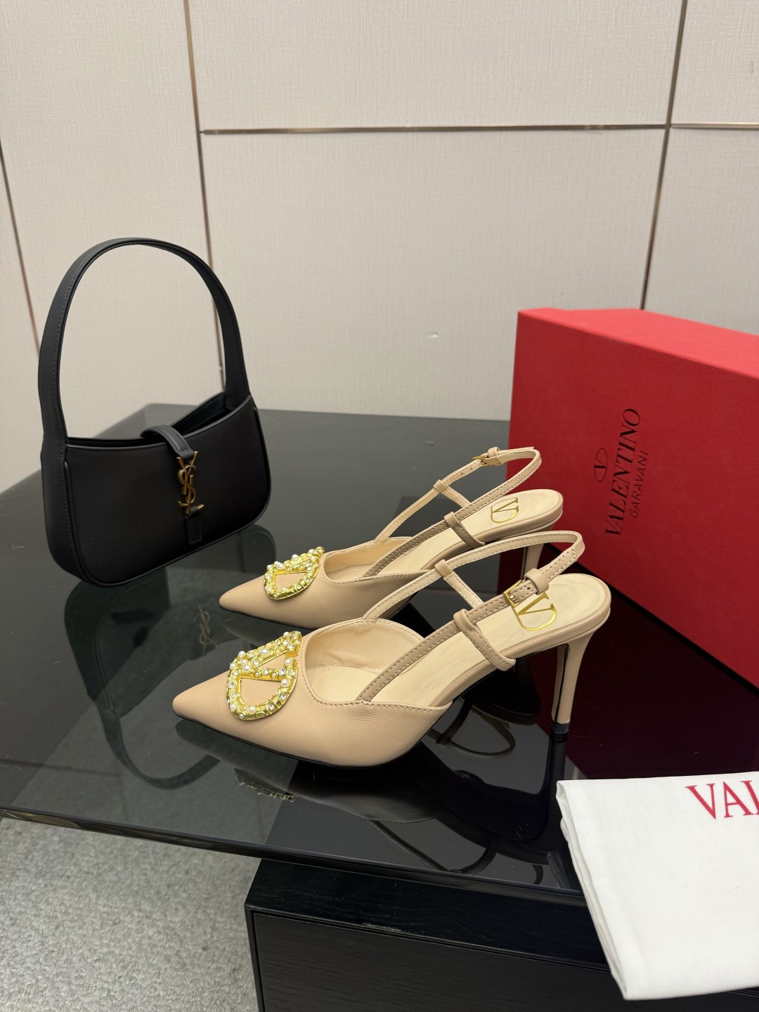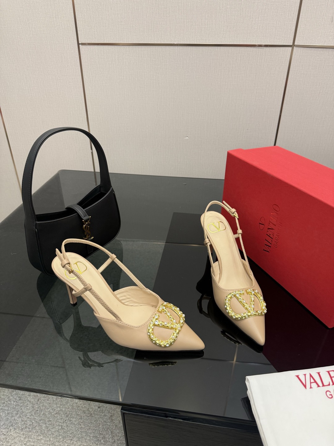 "슬링백 스트랩과 미니 리본 디테일로 우아함과 단정함을 동시에 담은 디자인"