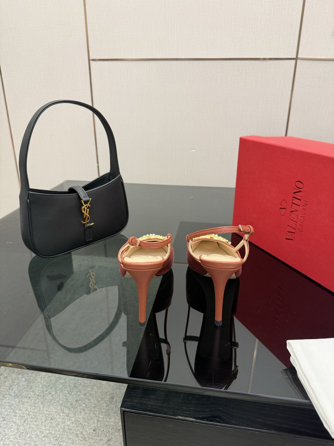 "슬링백 스트랩과 미니 리본 디테일로 우아함과 단정함을 동시에 담은 디자인"