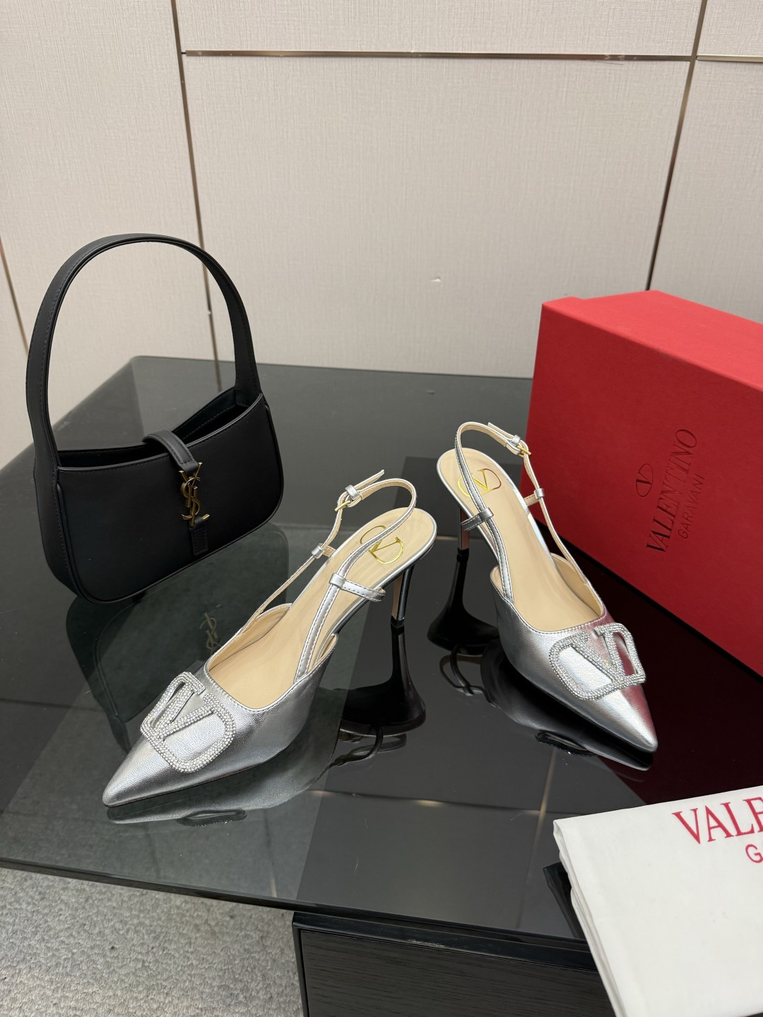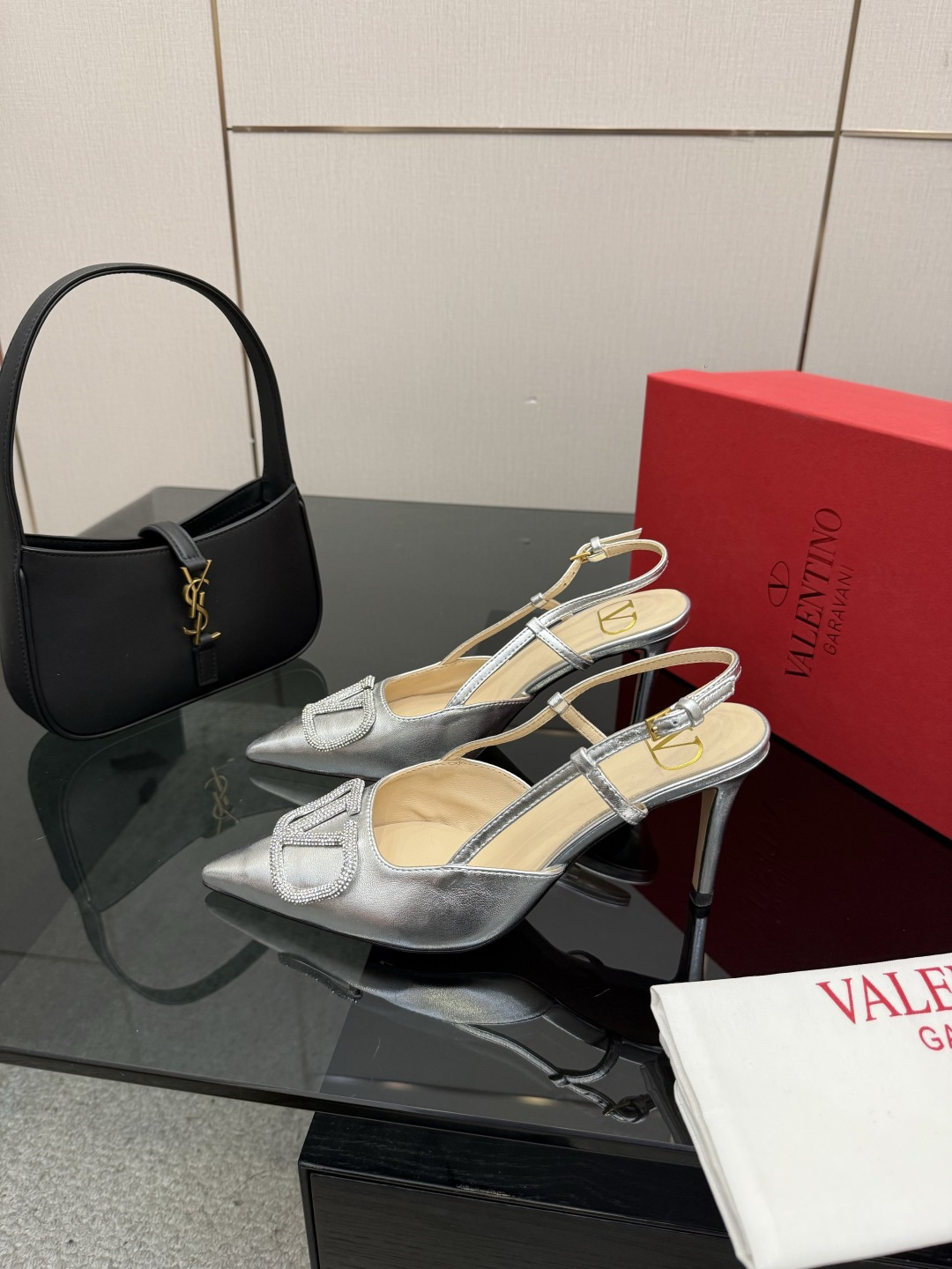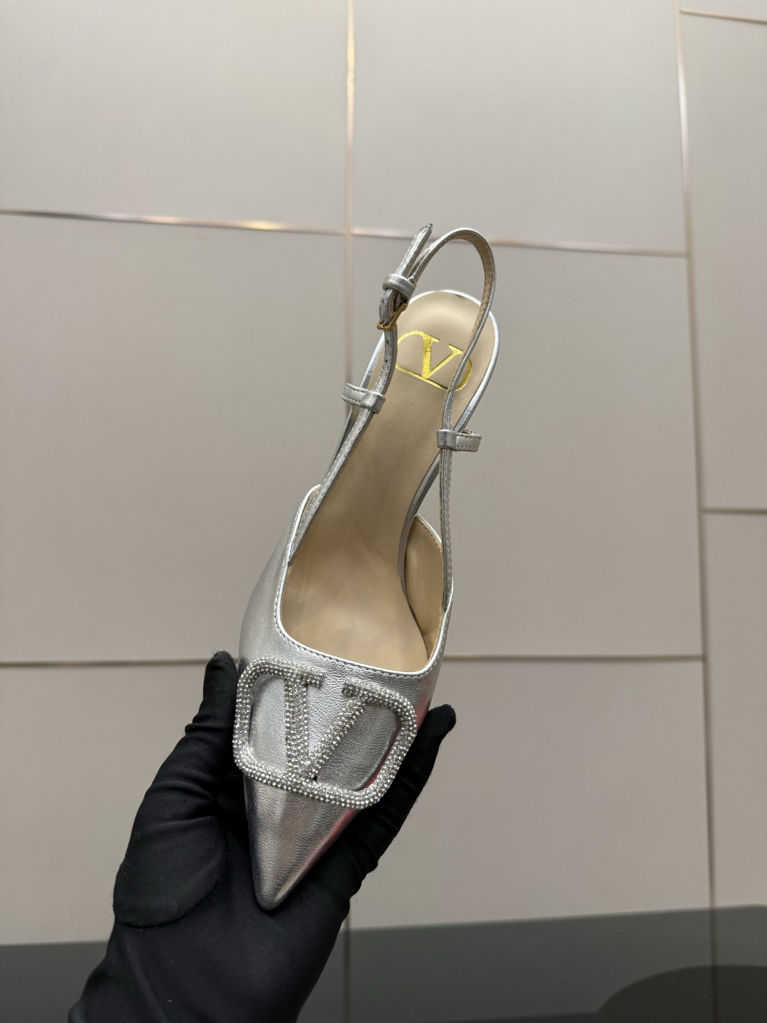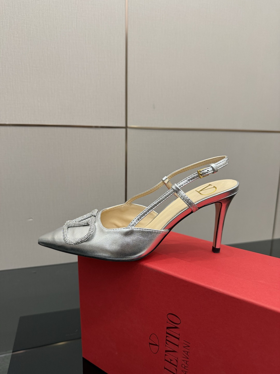 "슬링백 스트랩과 미니 리본 디테일로 우아함과 단정함을 동시에 담은 디자인"