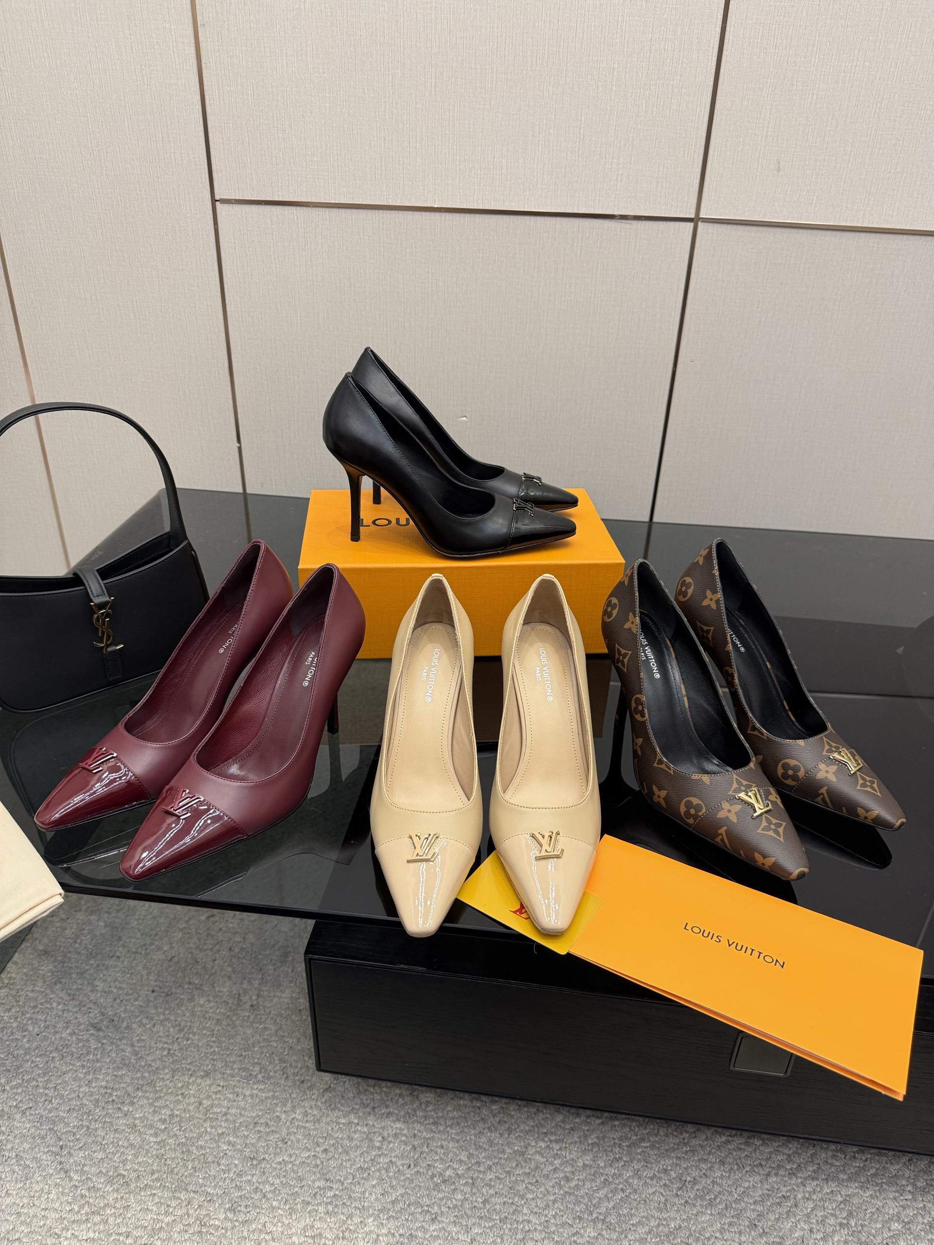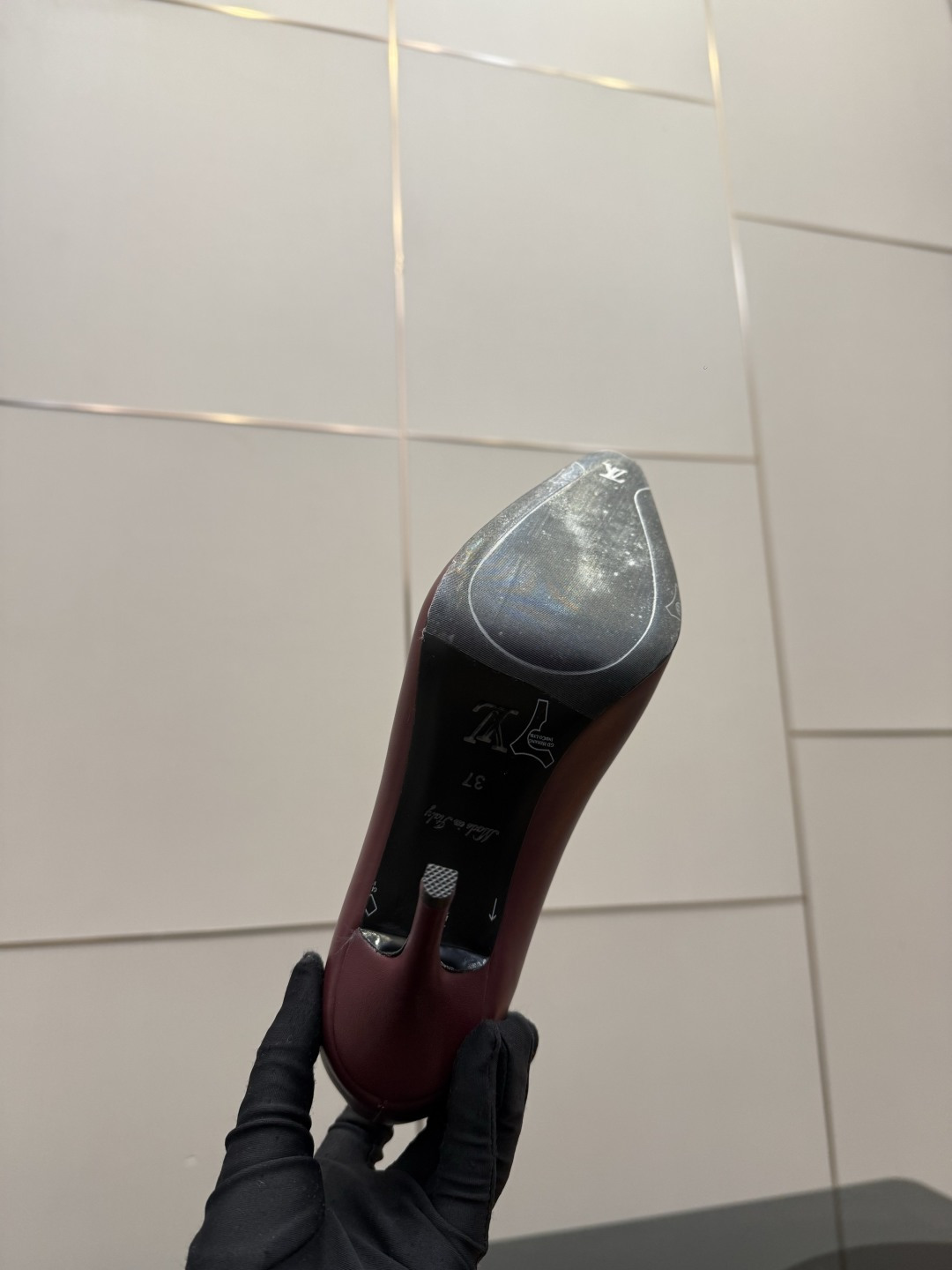 디테일: 로고 금속 장식과 엠보 가공 어퍼, 백오픈/펌프스 겸용 실루엣