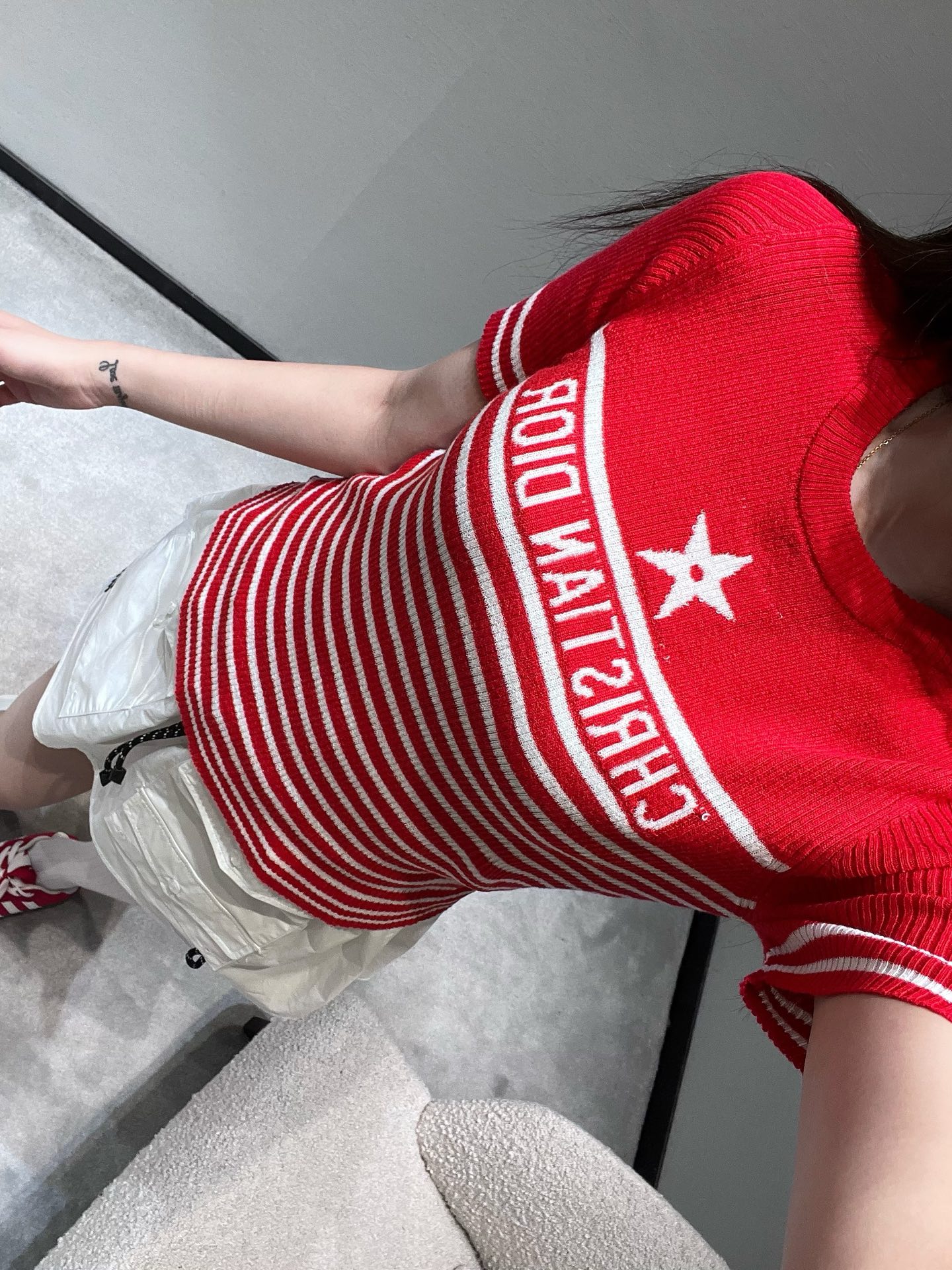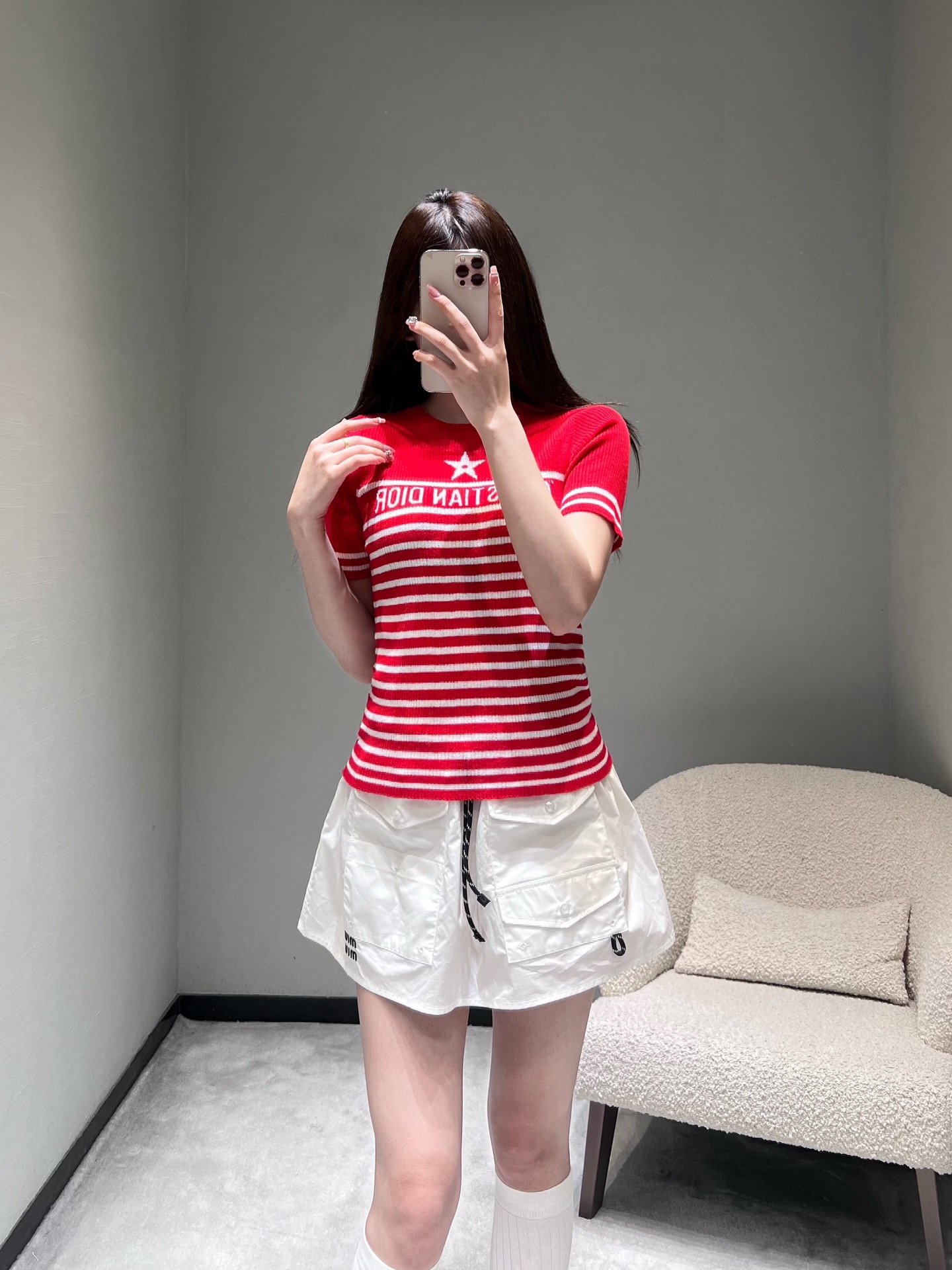 Dior CD 디올 스트라이프 럭키스타 니트 반팔 의류SALE