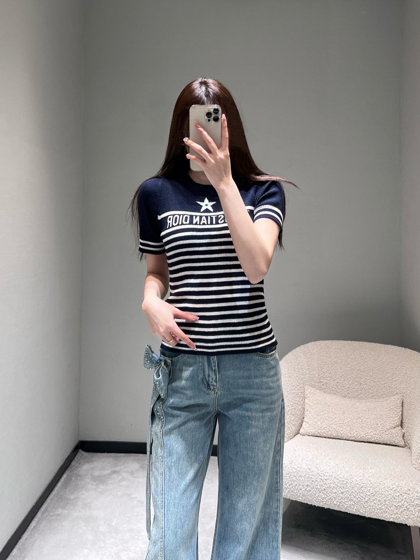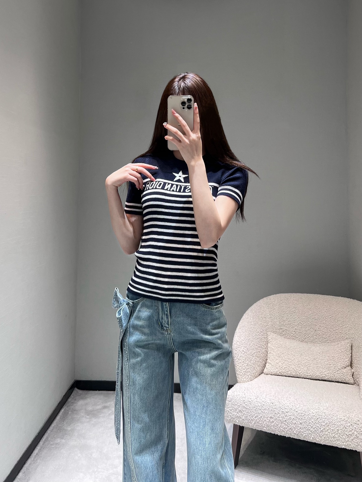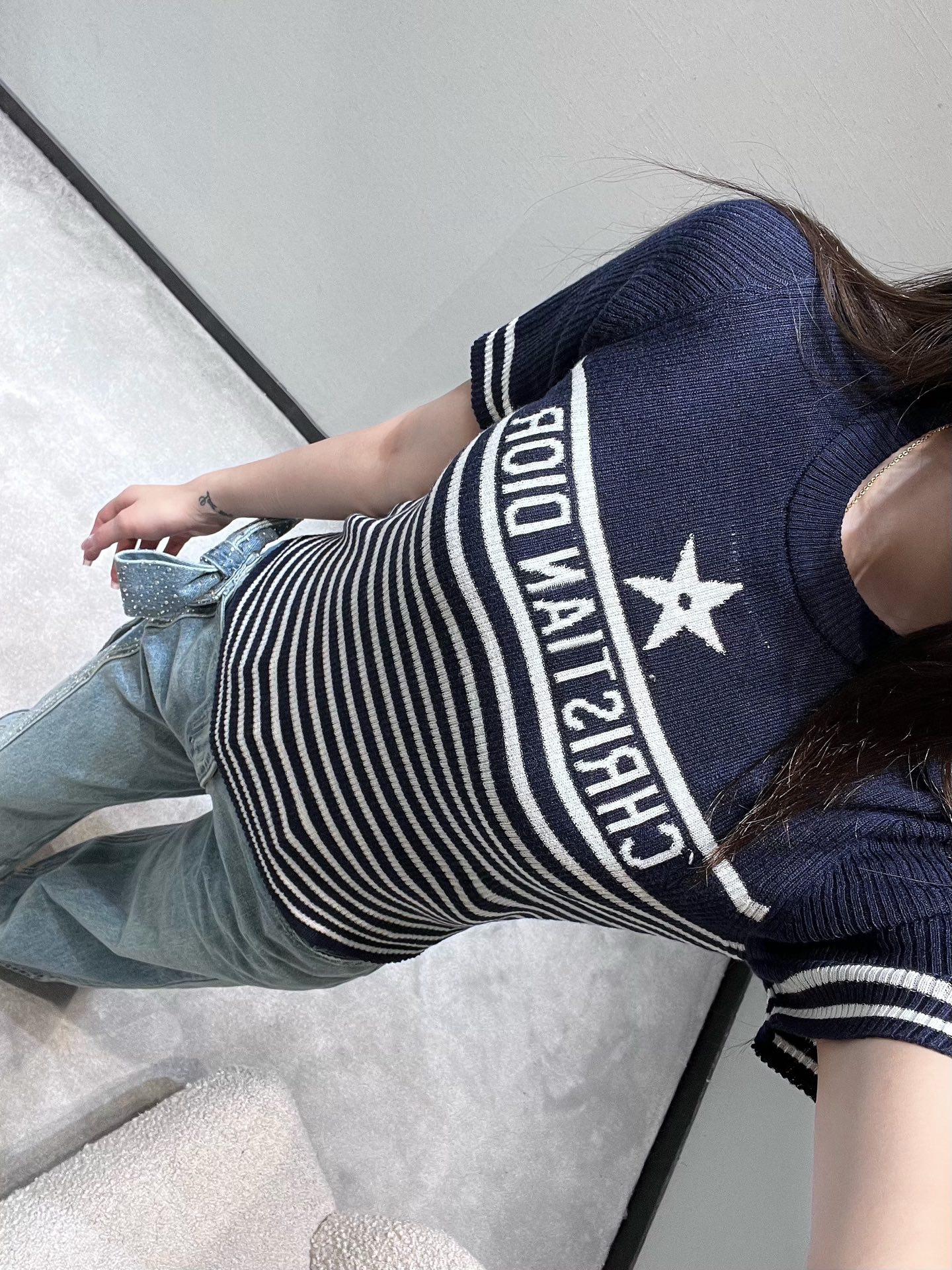 Dior CD 디올 스트라이프 럭키스타 니트 반팔 의류SALE