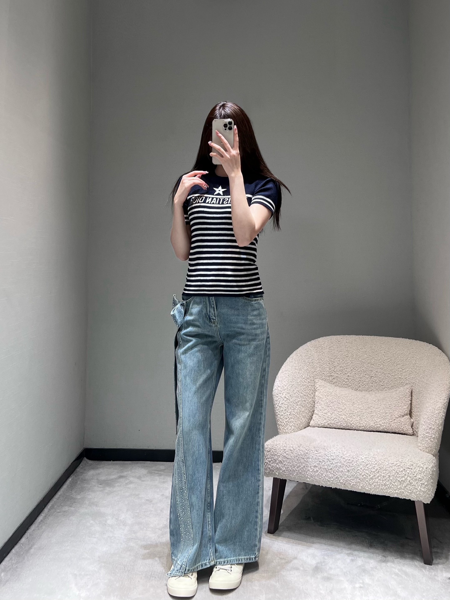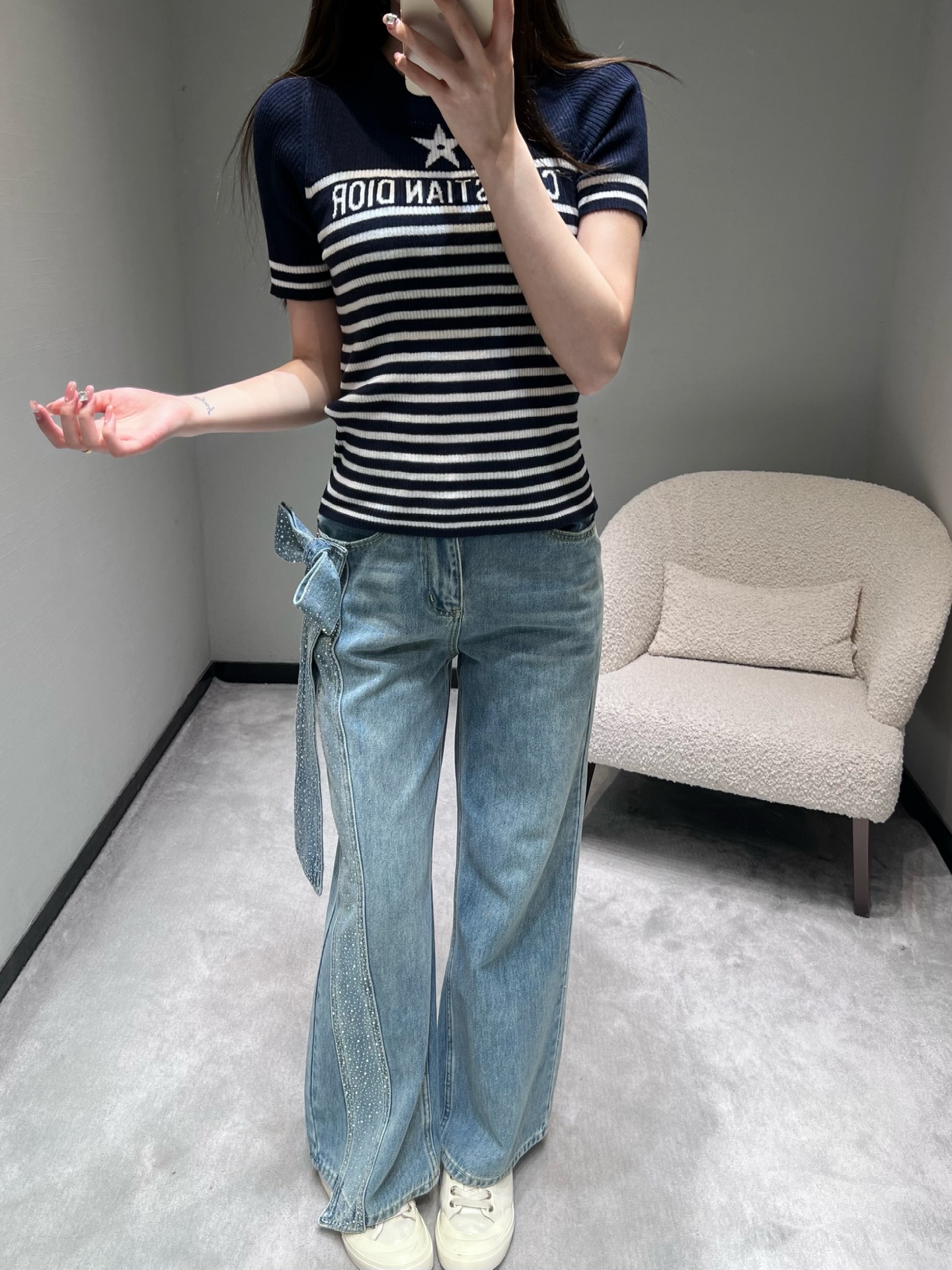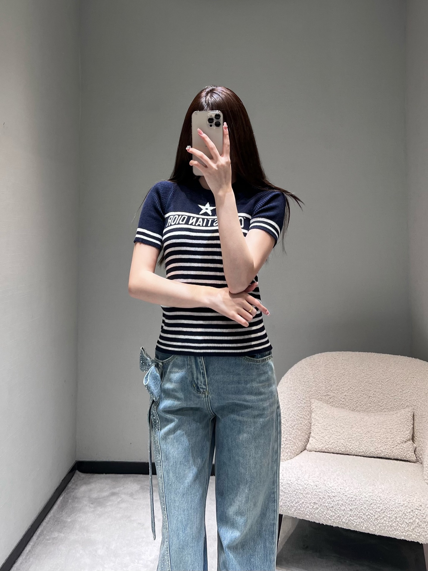 Dior CD 디올 스트라이프 럭키스타 니트 반팔 의류SALE