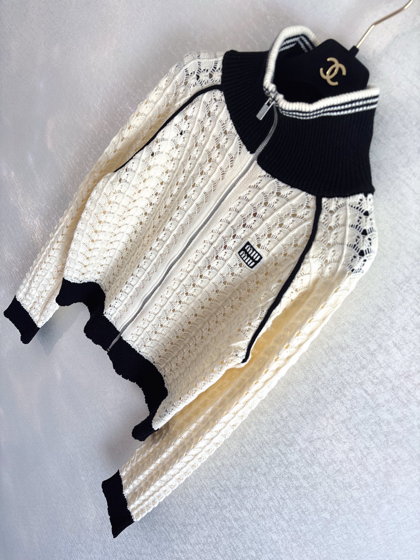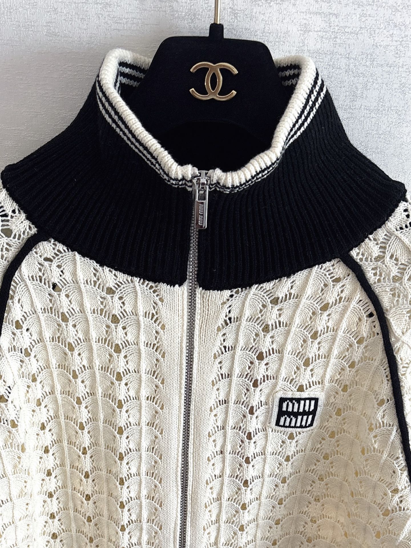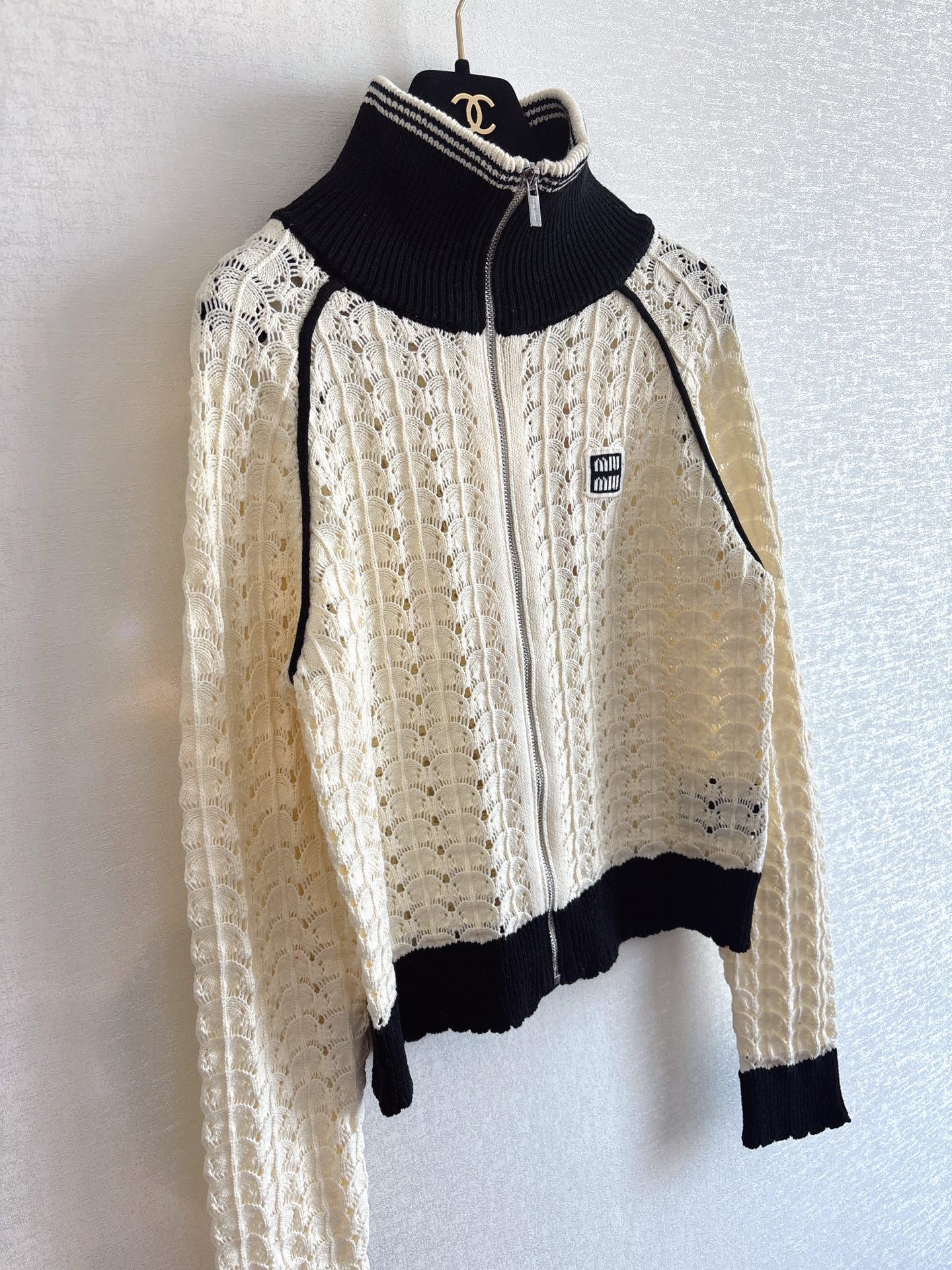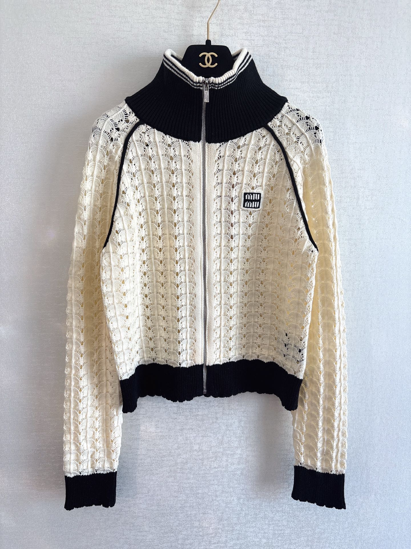 miumiu 미우미우 배색 하이넥 펀칭 니트 가디건 자켓 재킷 의류NEWSALE