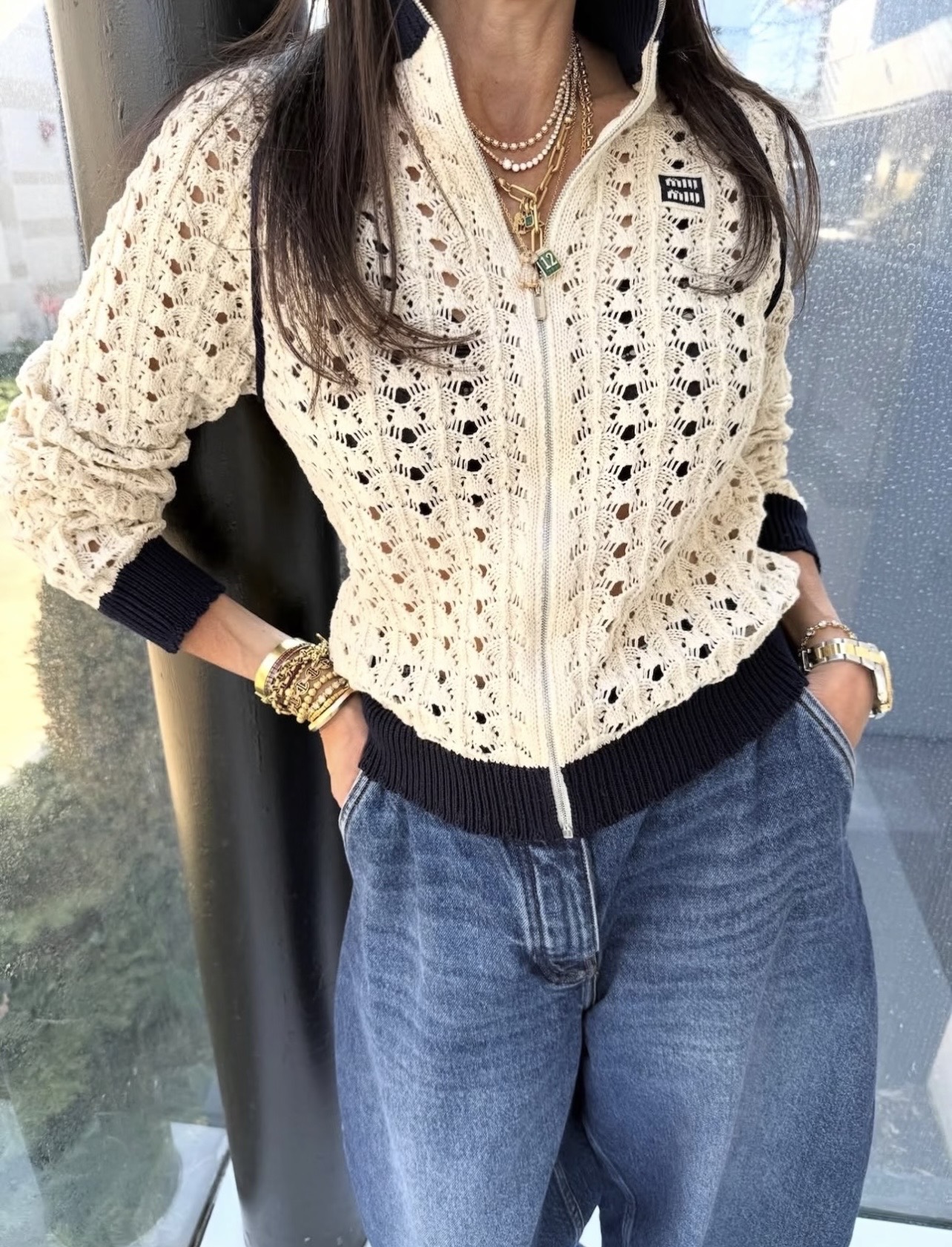 miumiu 미우미우 배색 하이넥 펀칭 니트 가디건 자켓 재킷 의류