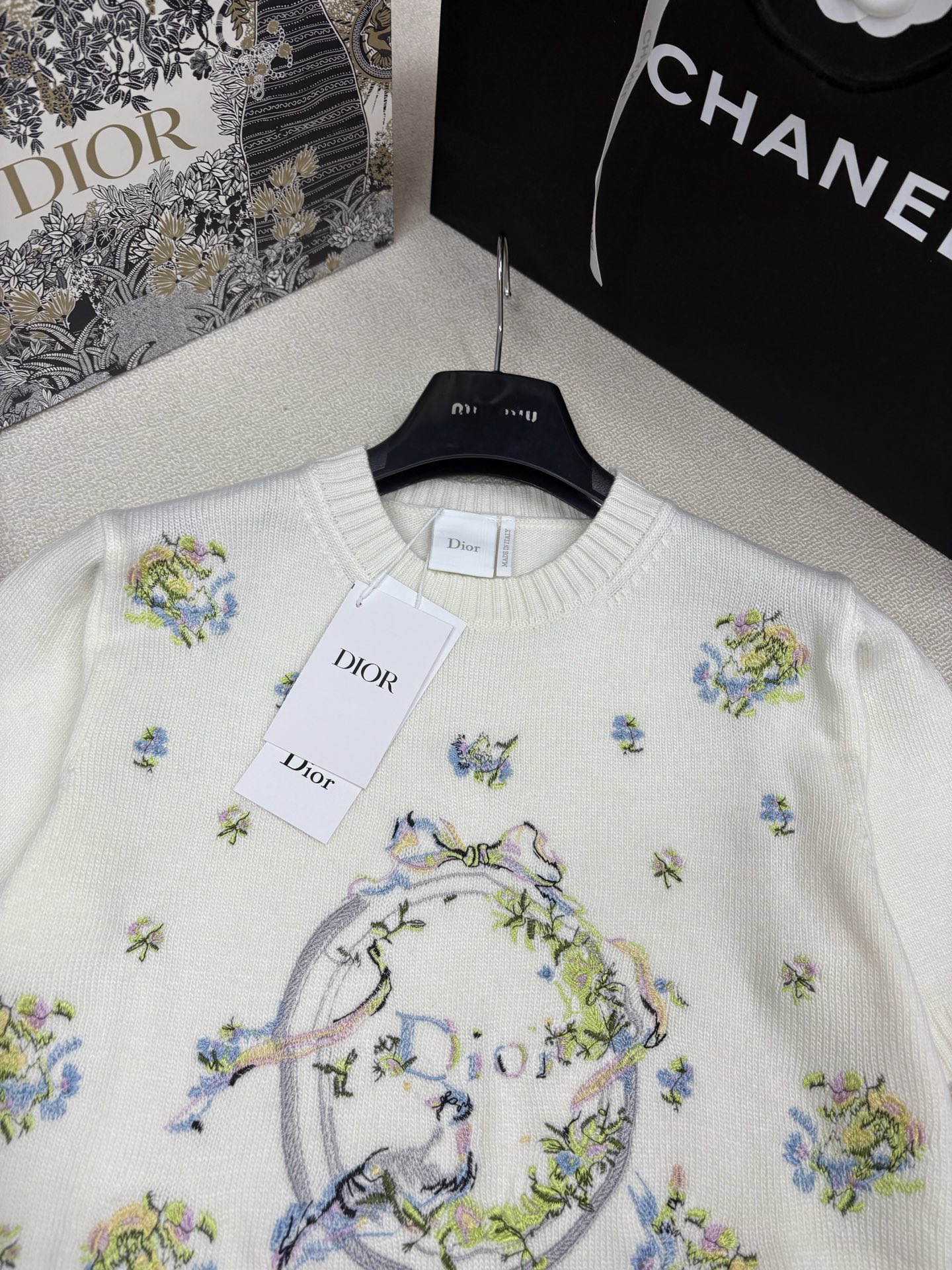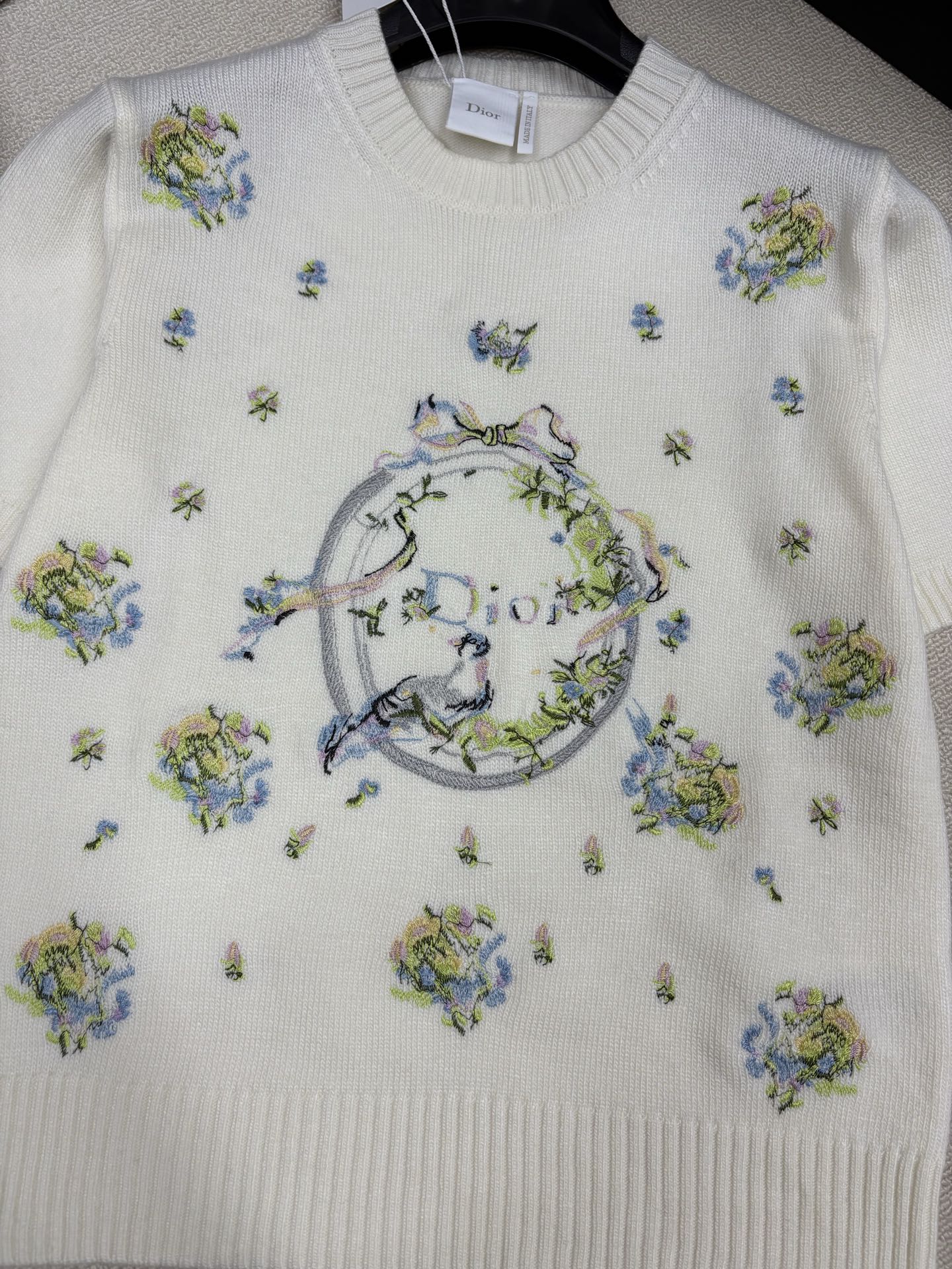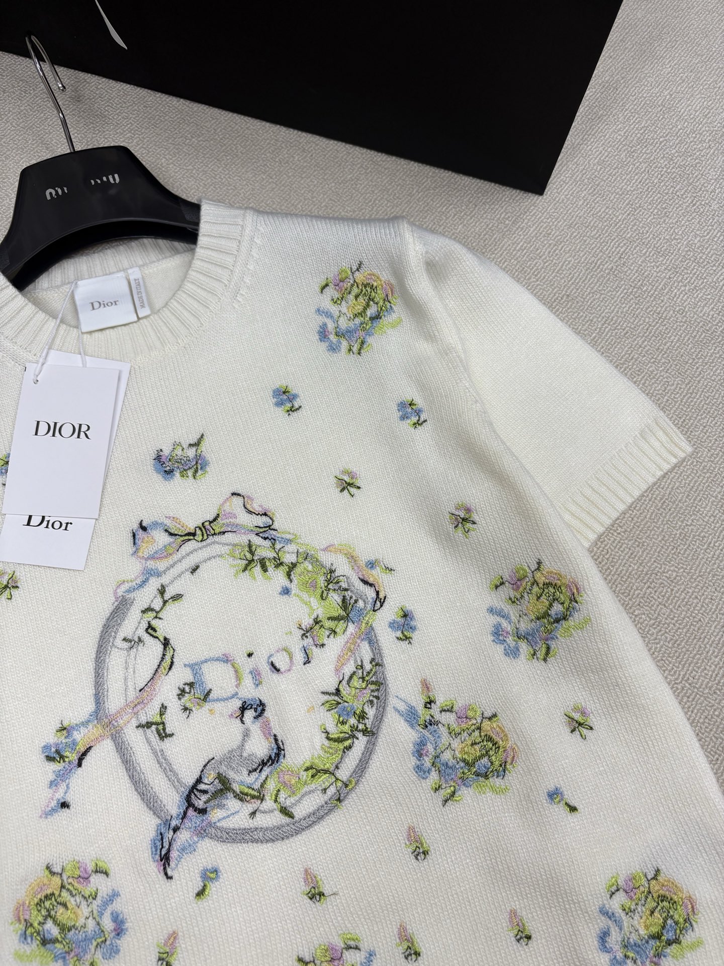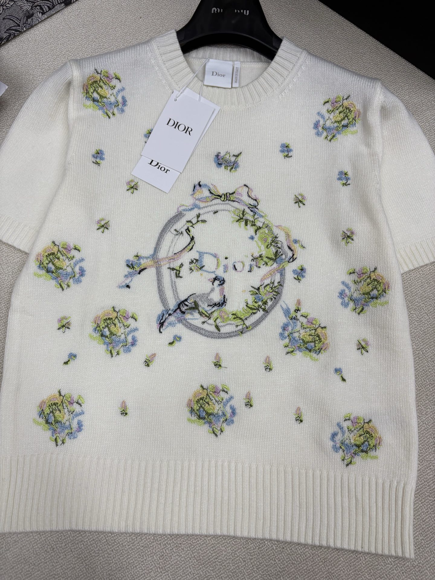 Dior CD 디올 플라워 & 리본 자수 니트 반팔 의류NEWSALE