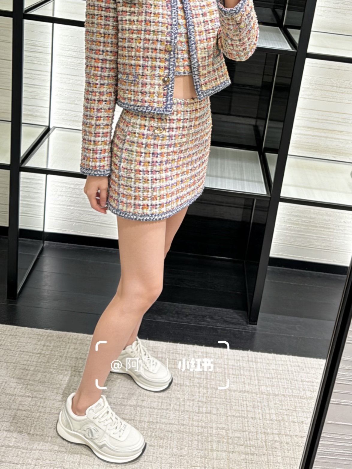 디테일: 그라데이션 더블C 로고 포인트와 사이드 컷아웃 디자인, 슬림해 보이는 라스트와 배색 디테일