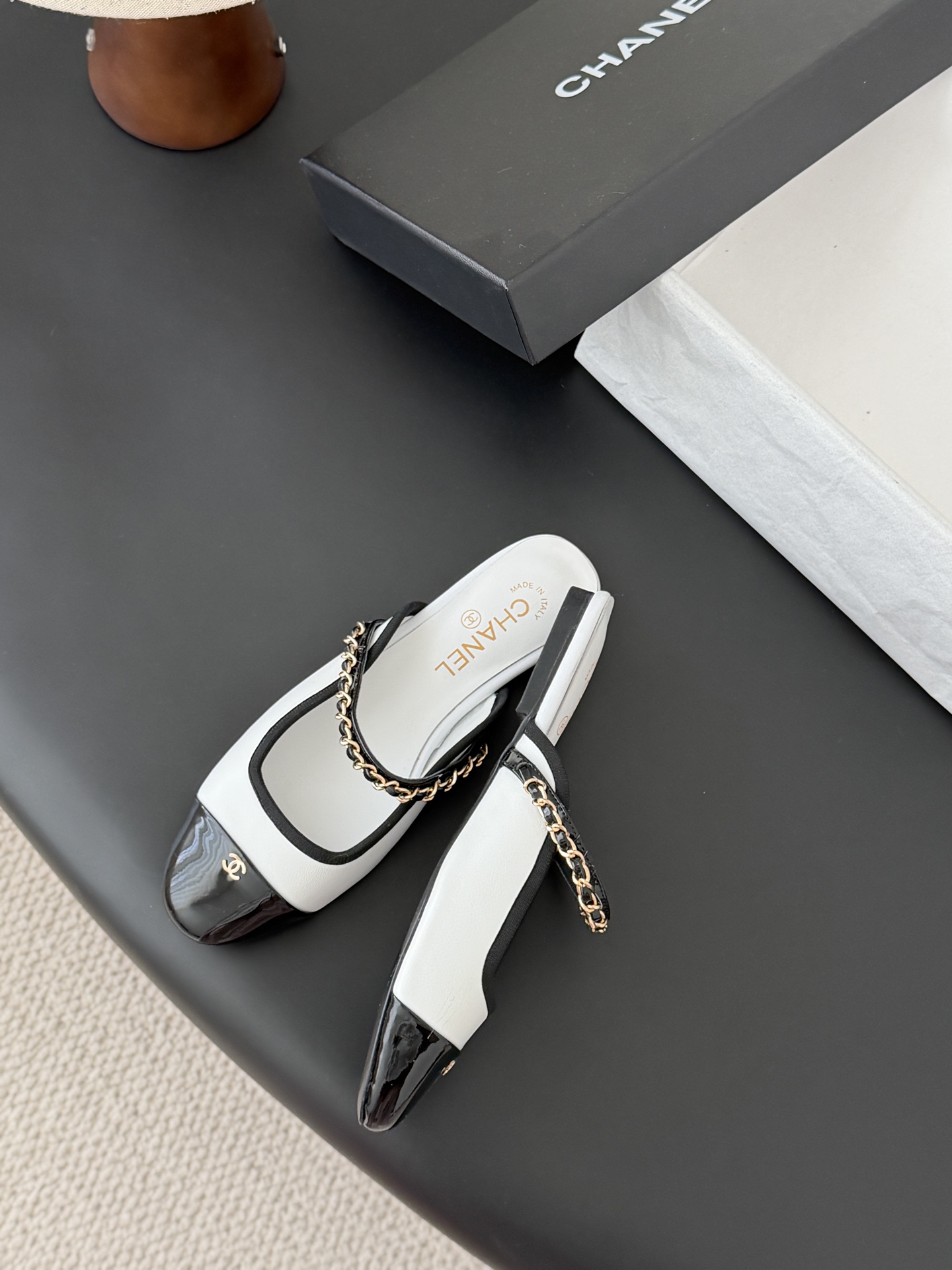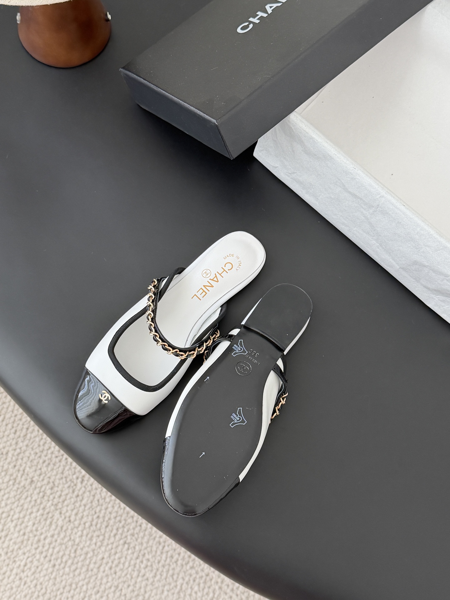 Chanel 25B 샤넬 체인 마리제인 슬링백 플랫 샌들 슈즈 신발