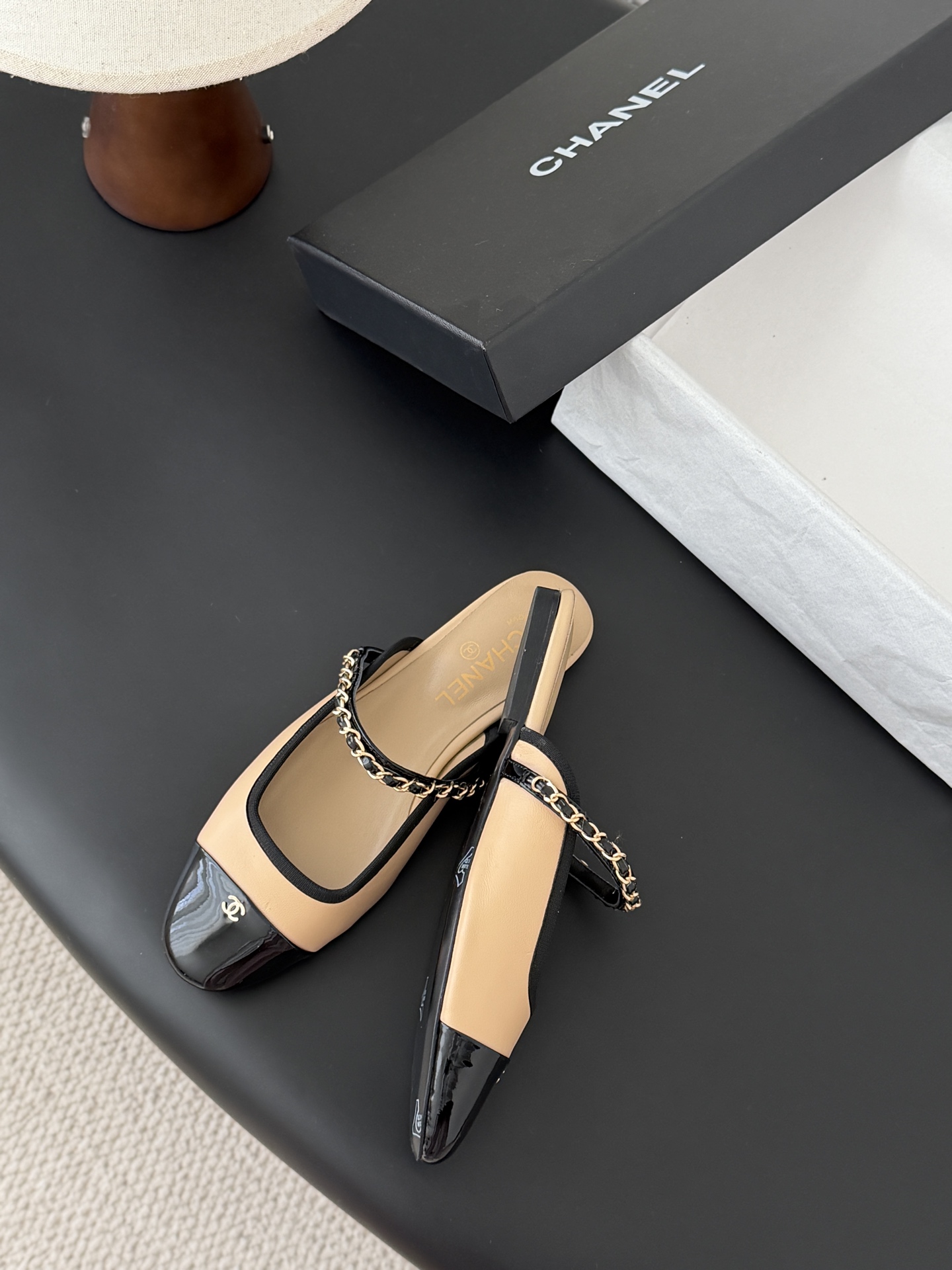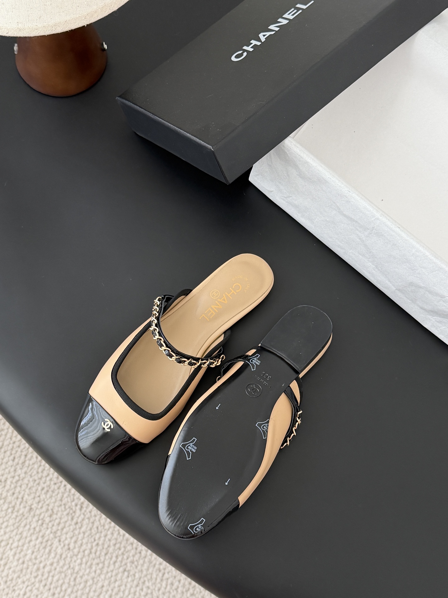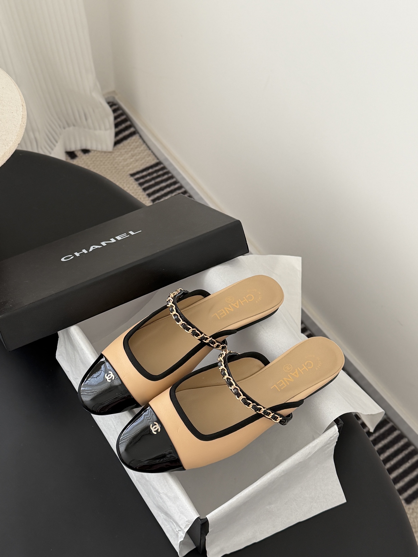 Chanel 25B 샤넬 체인 마리제인 슬링백 플랫 샌들 슈즈 신발